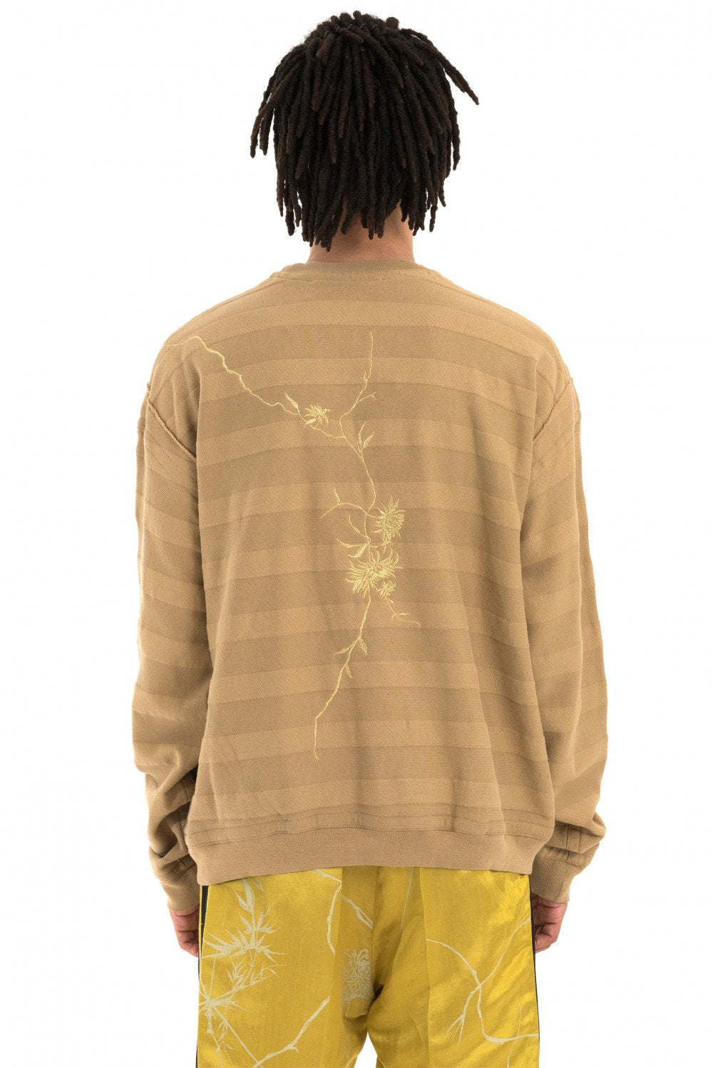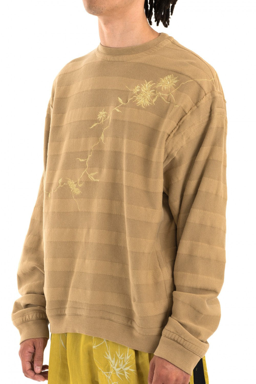 With this collection Haider Ackermann wanted his clothes to feel lived in, “that the person inhabits the clothes.” This effortless luxury can be found in pieces such as the Camel Floral Embroidered Sweatshirt.