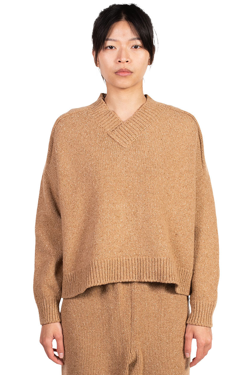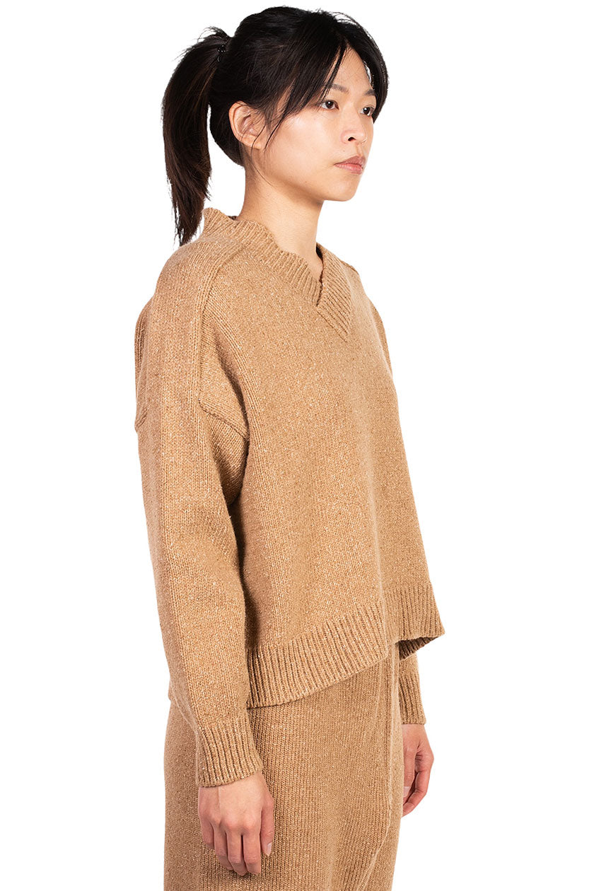 Monica Cordera’s collections are composed of limited edition garments with minimalist designs that seek purity and simplicity, timeless earthy tones in recycled linen and cotton as seen with the Camel Soft Wool Sweater.