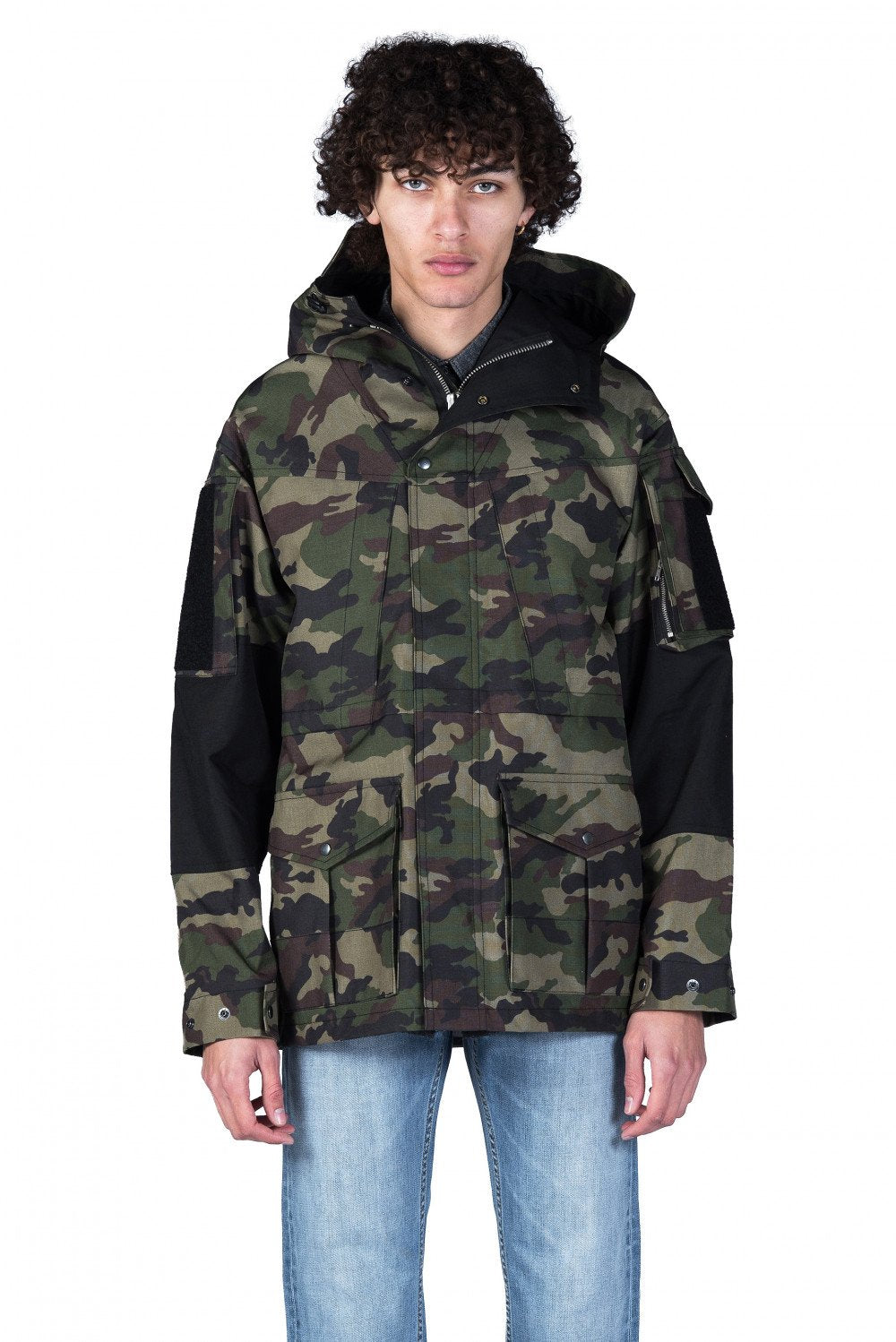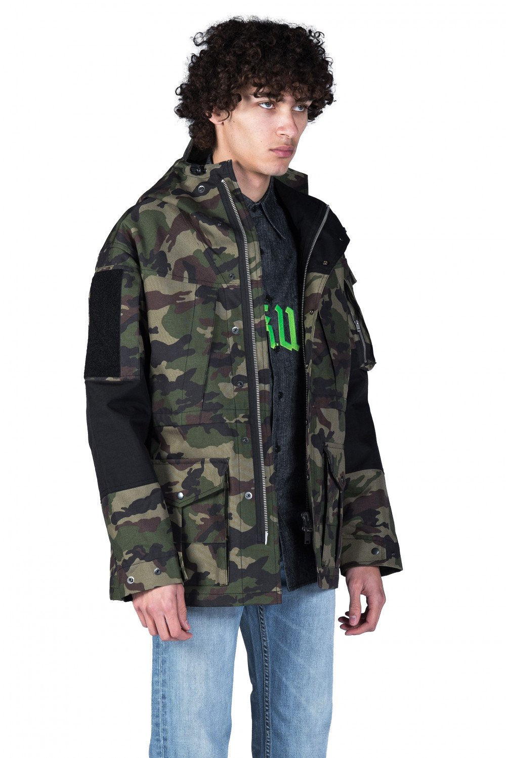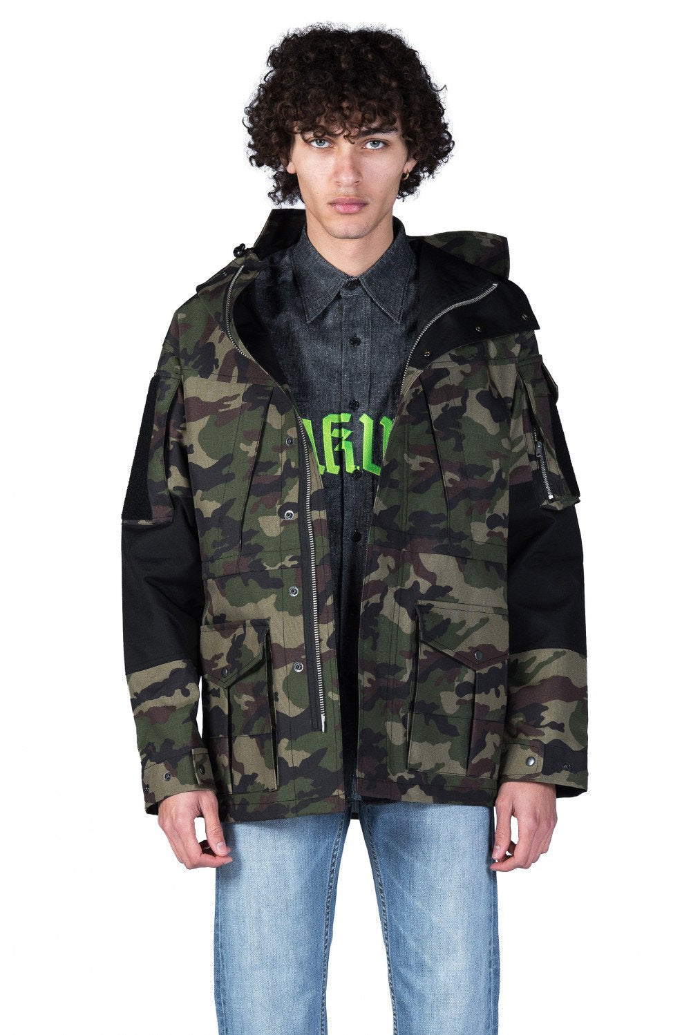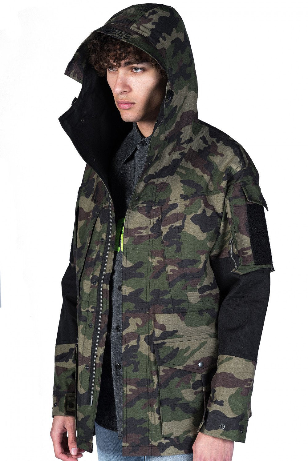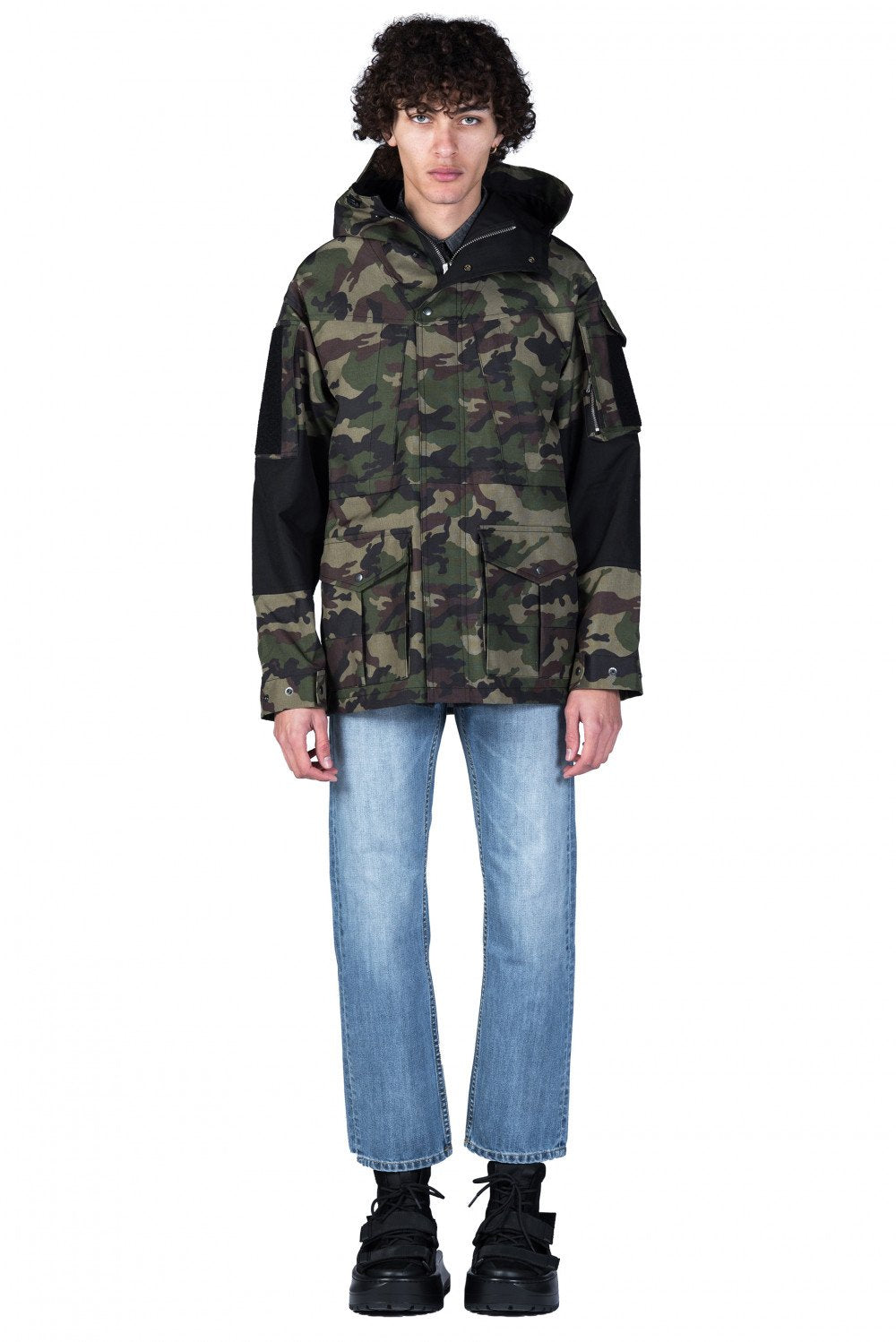 Innovative designs take centre stage in the Sankuanz collection at UJNG. Experimental shapes and offbeat graphics create a flamboyant, boundary-pushing look. Find a vibrant colour palette and bold use of textures. Architectural pieces with unexpected embellishments enhance the eye-catching nature of this edit, as seen in the Camo Hooded Coat.