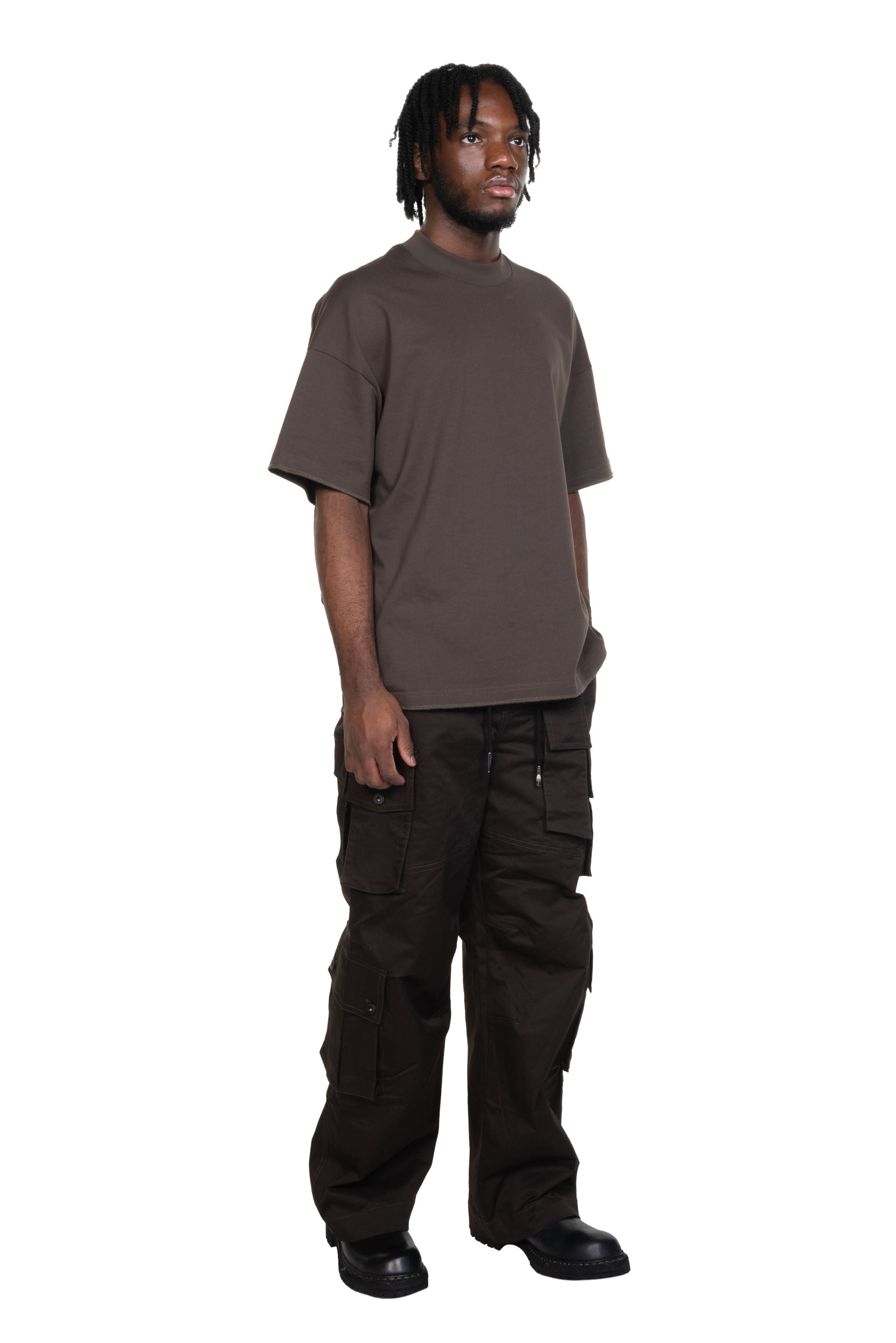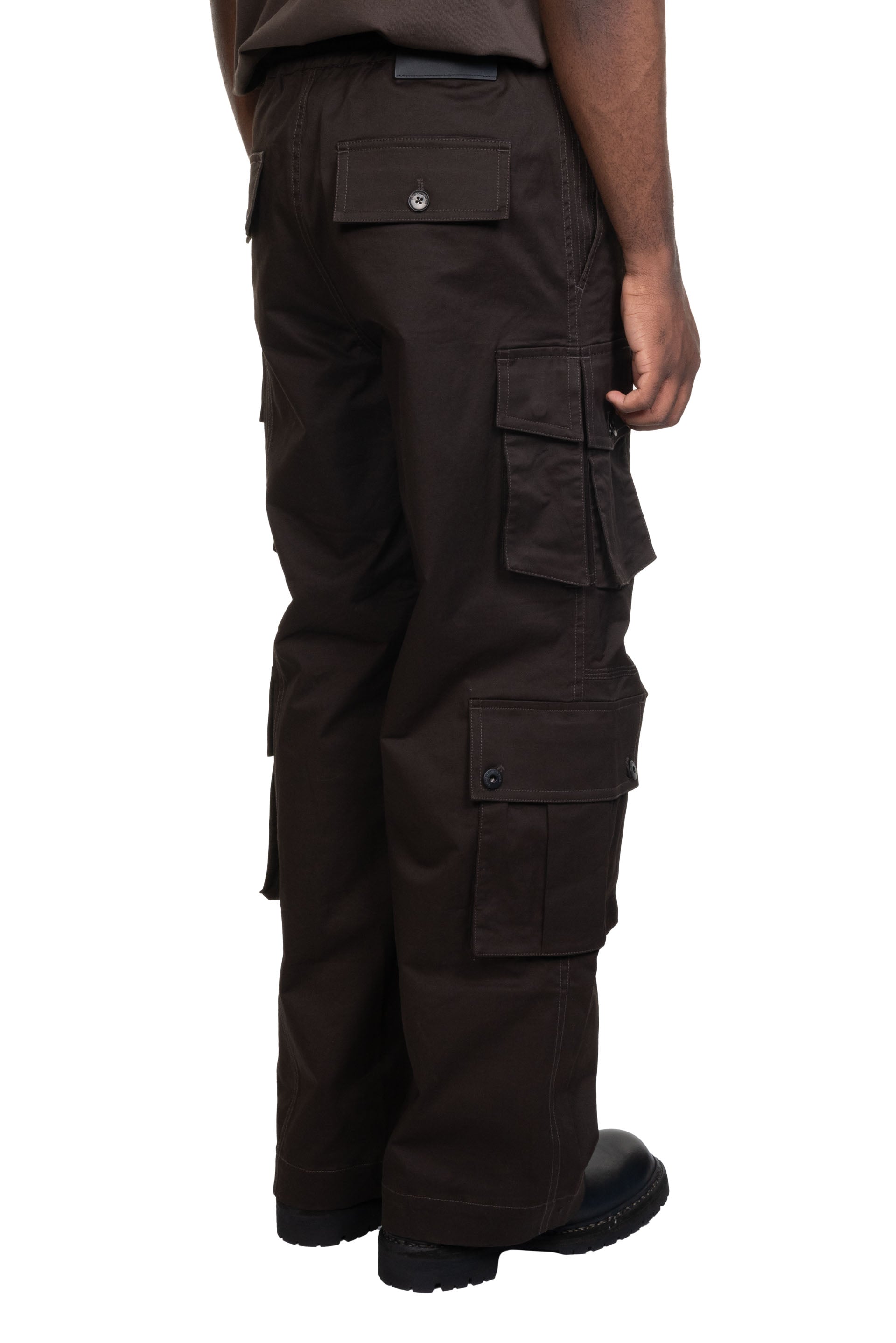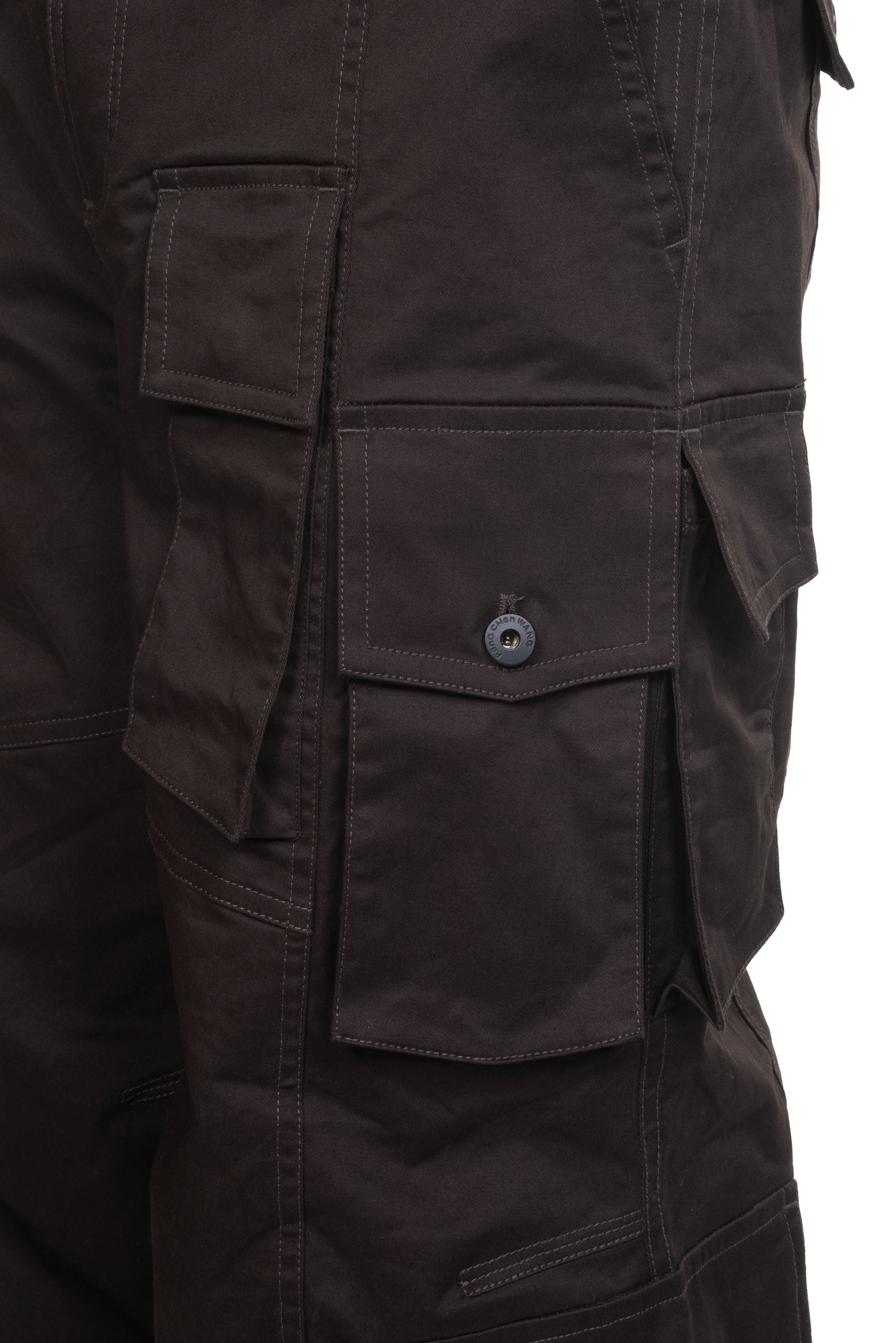 Button closure at waist. Drawstrings closure at waist. Two side pockets. 3D cargo pockets throughout.