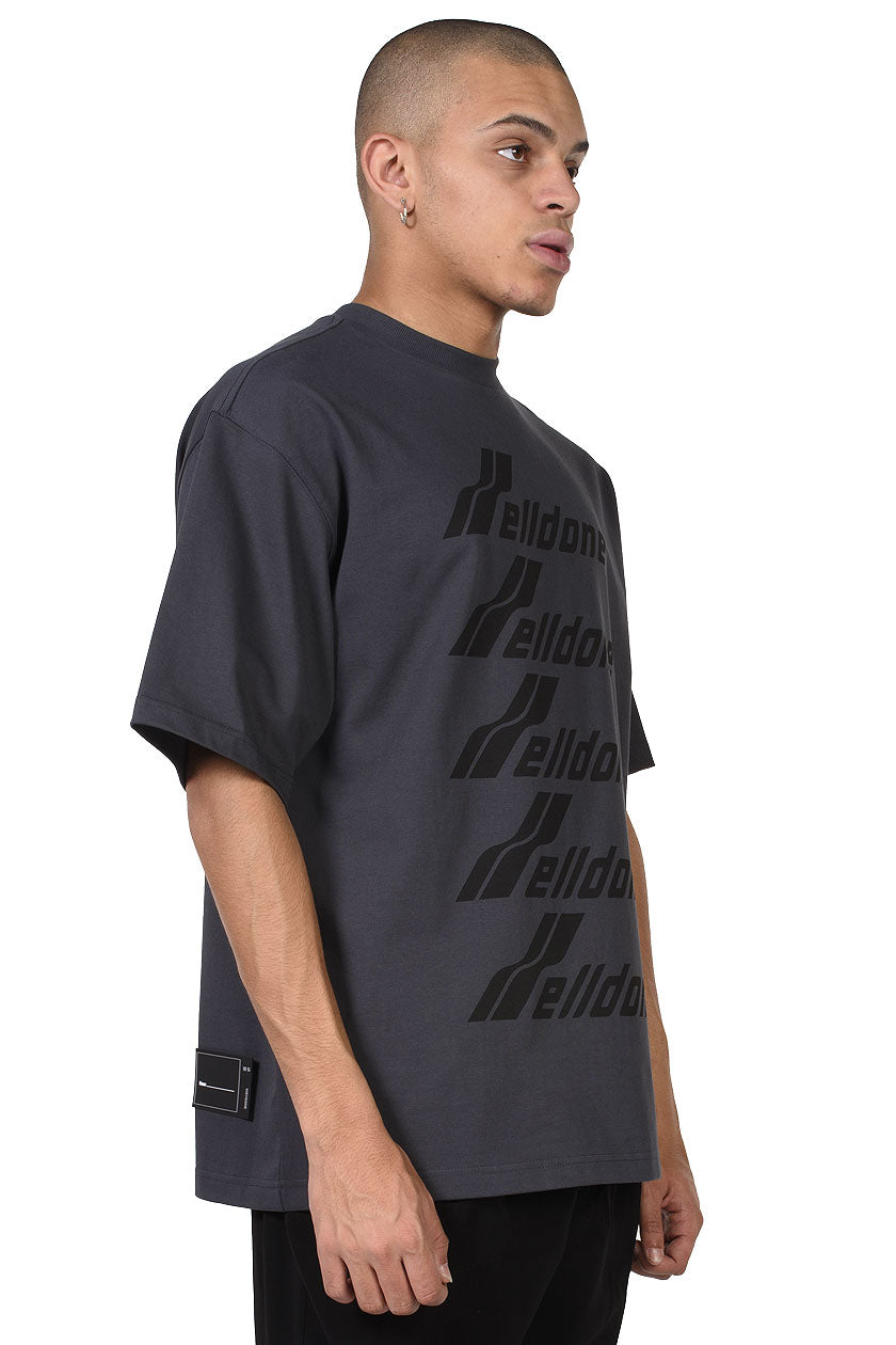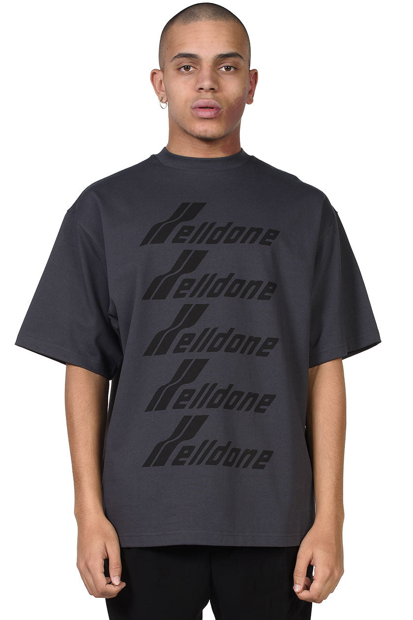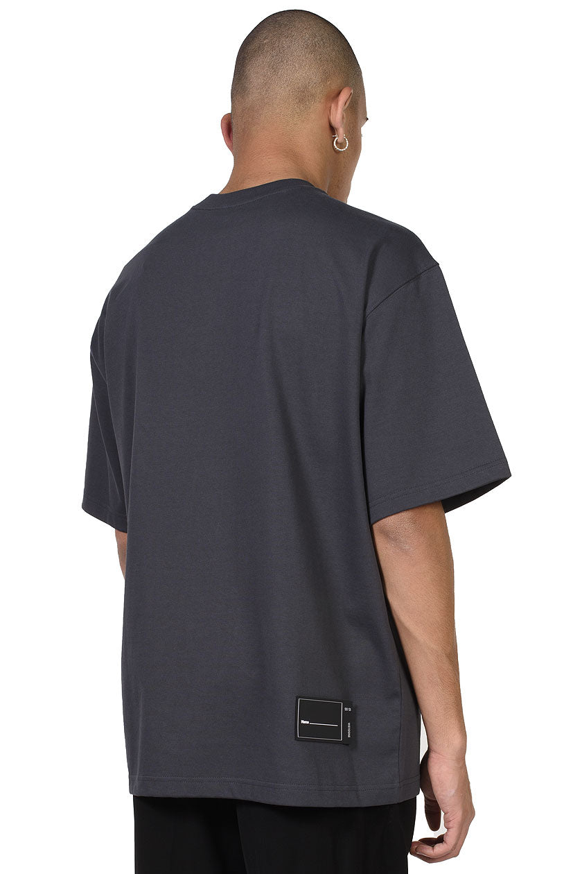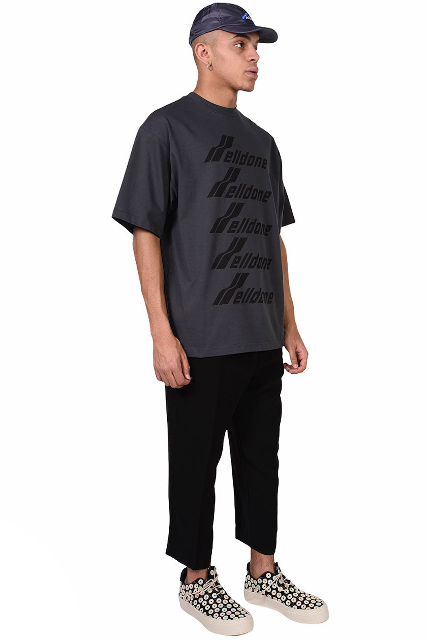 We11done merges late 1990s and early 2000s aesthetics creating a feeling of futurity. Functional, sportive, and sleek, We11done’s versatile designs refine classic elements into contemporary lifestyle pieces as seen with the Grey Front Logo T-Shirt. Short sleeve cotton jersey T-shirt in grey. Rib knit crewneck collar. Logo printed in black at front. Rubberised logo patch in black at back hem.
