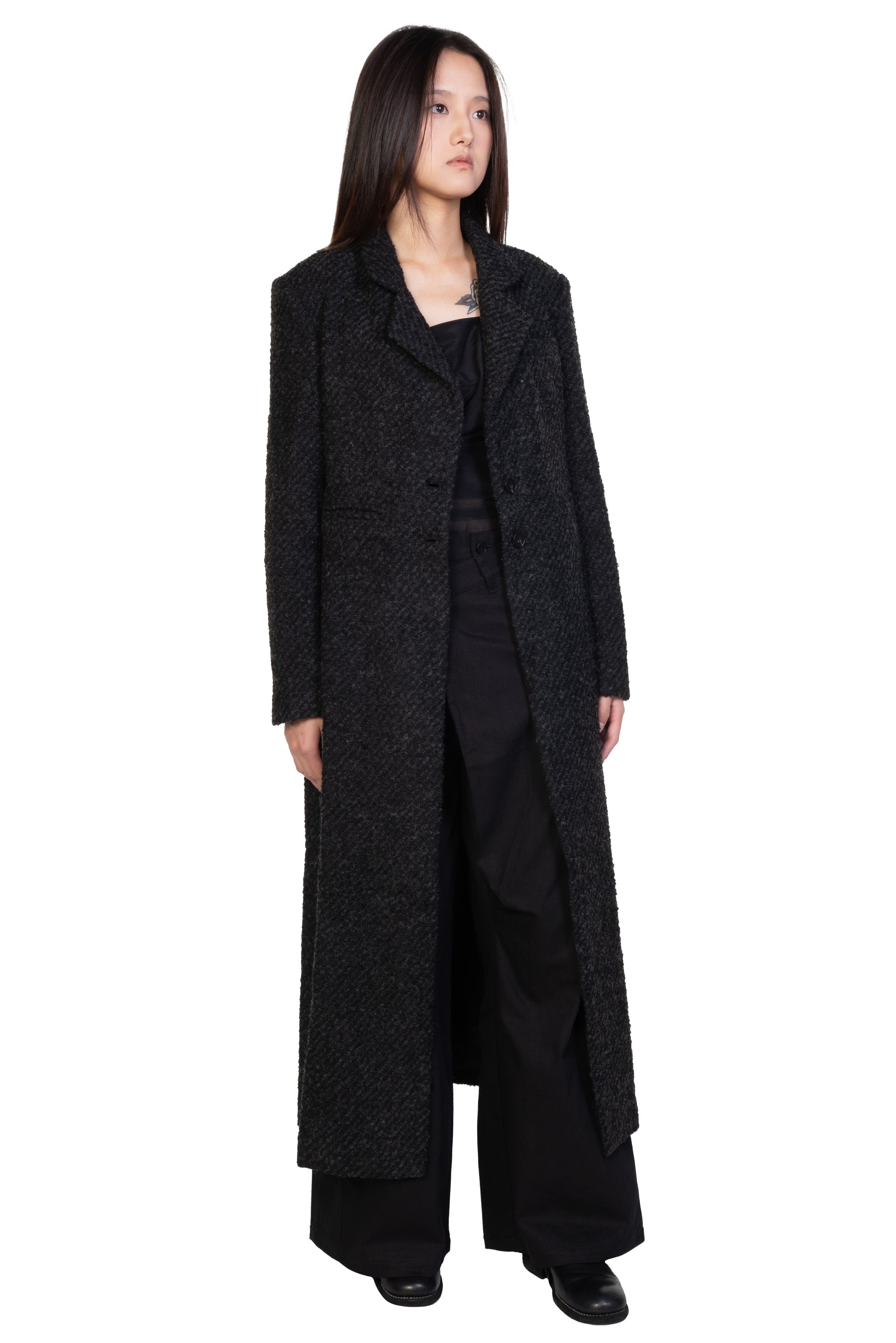 ii delivers a sense of originality, simplicity, spontaneity and a hint of childlike innocence pushing boundaries among ages to present qualitative collections with timeless touches designed for independent individuals as seen with the Charcoal Suit Coat.