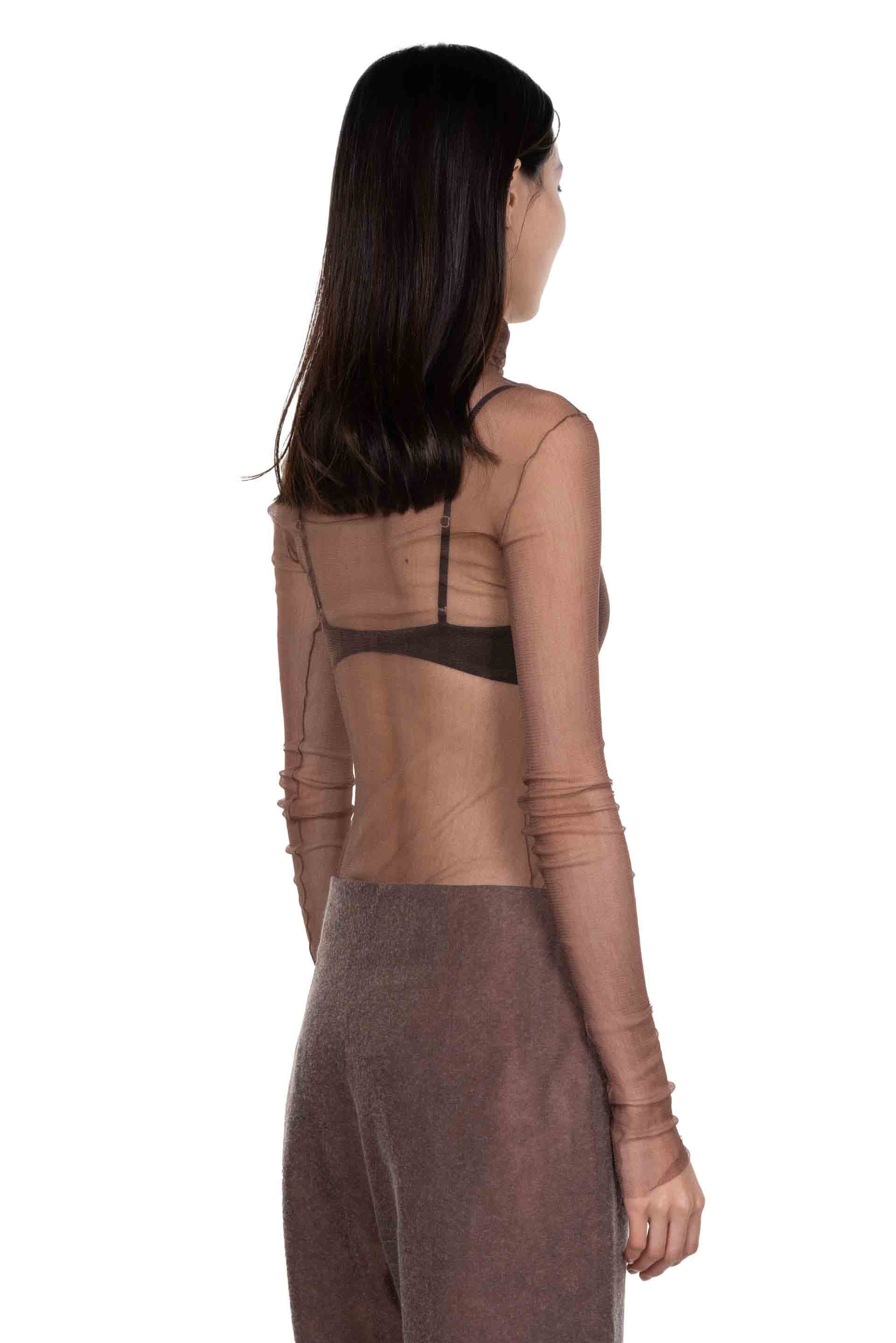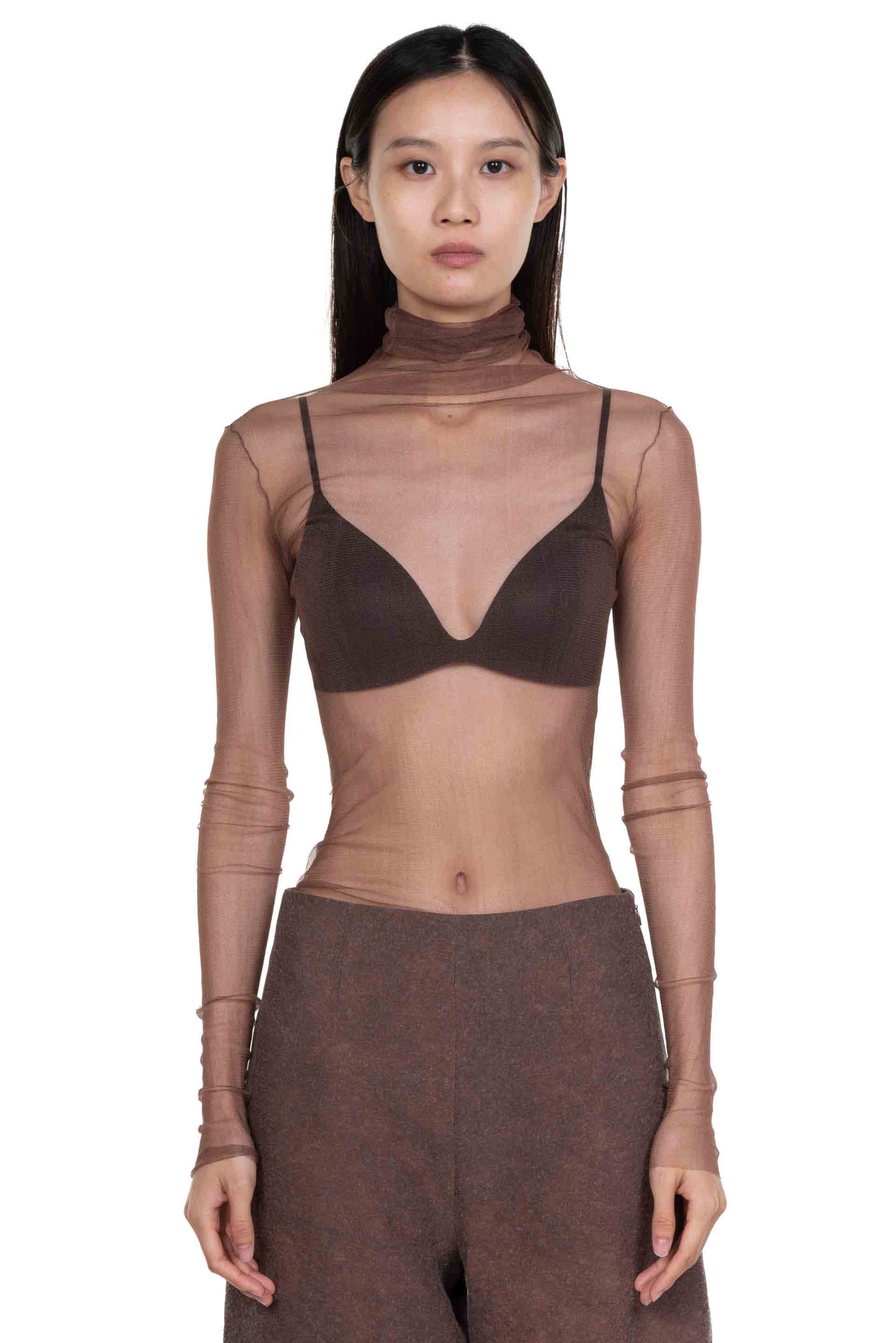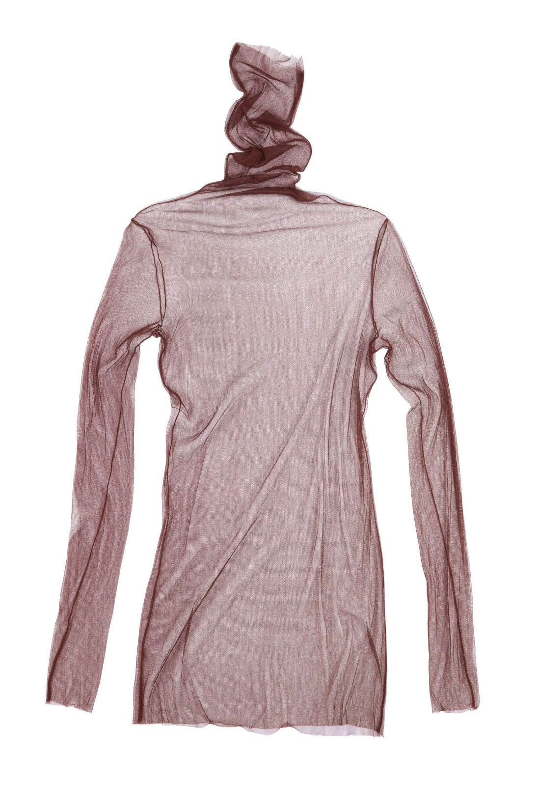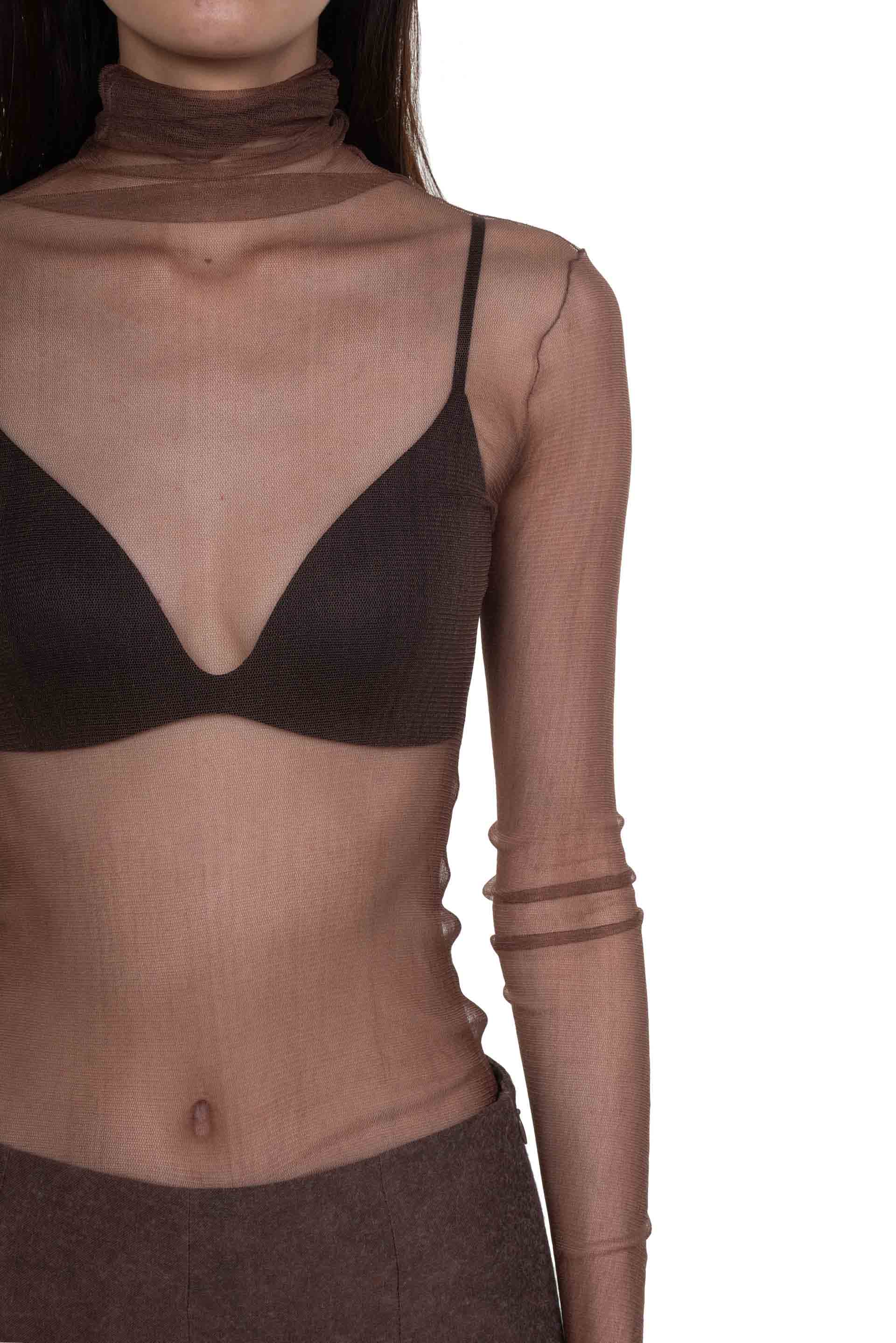 Sheer natural silk tulle top, with a high neck and long sleeves. Perfect to wear with sleeveless dresses or to let it peek under any garment.