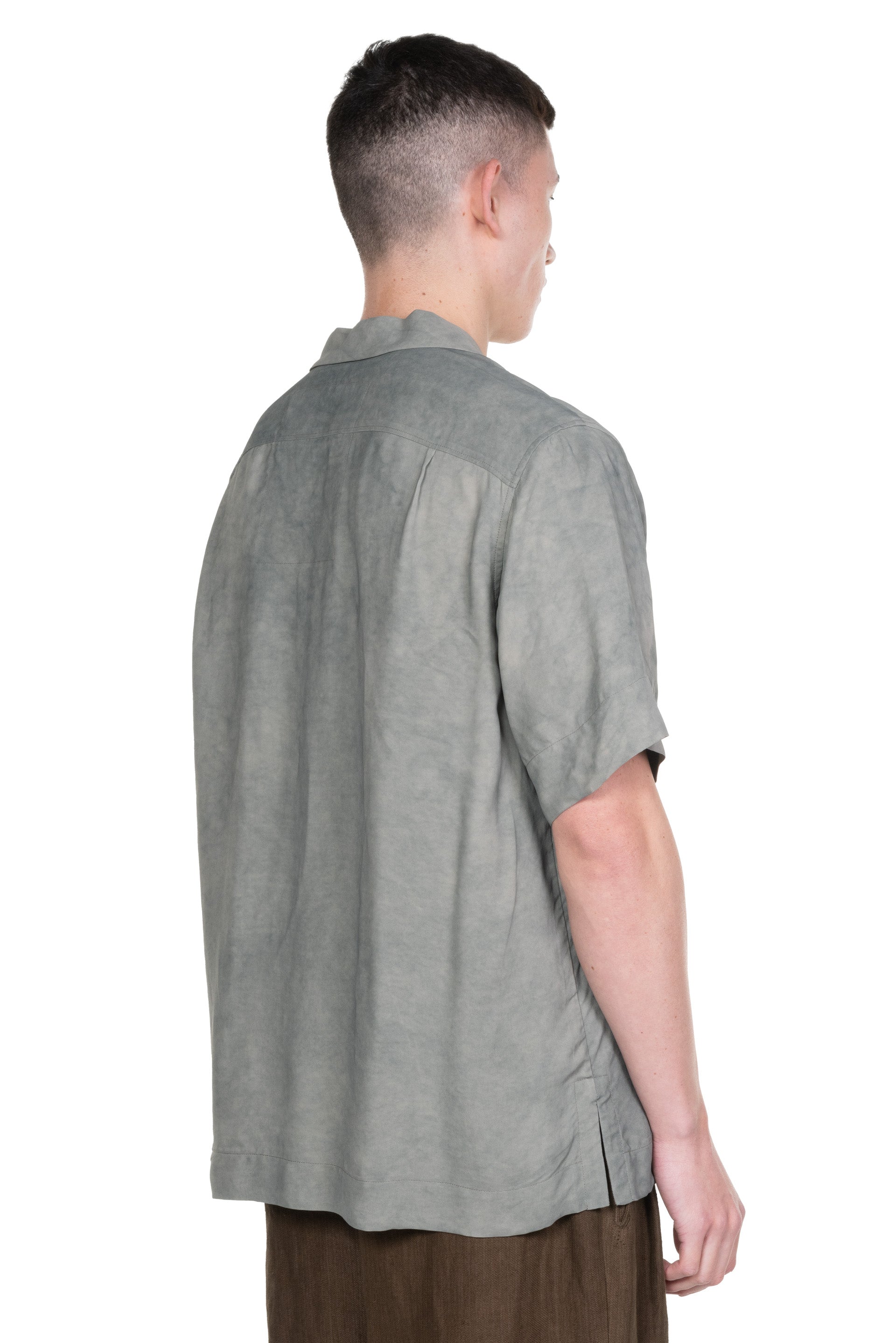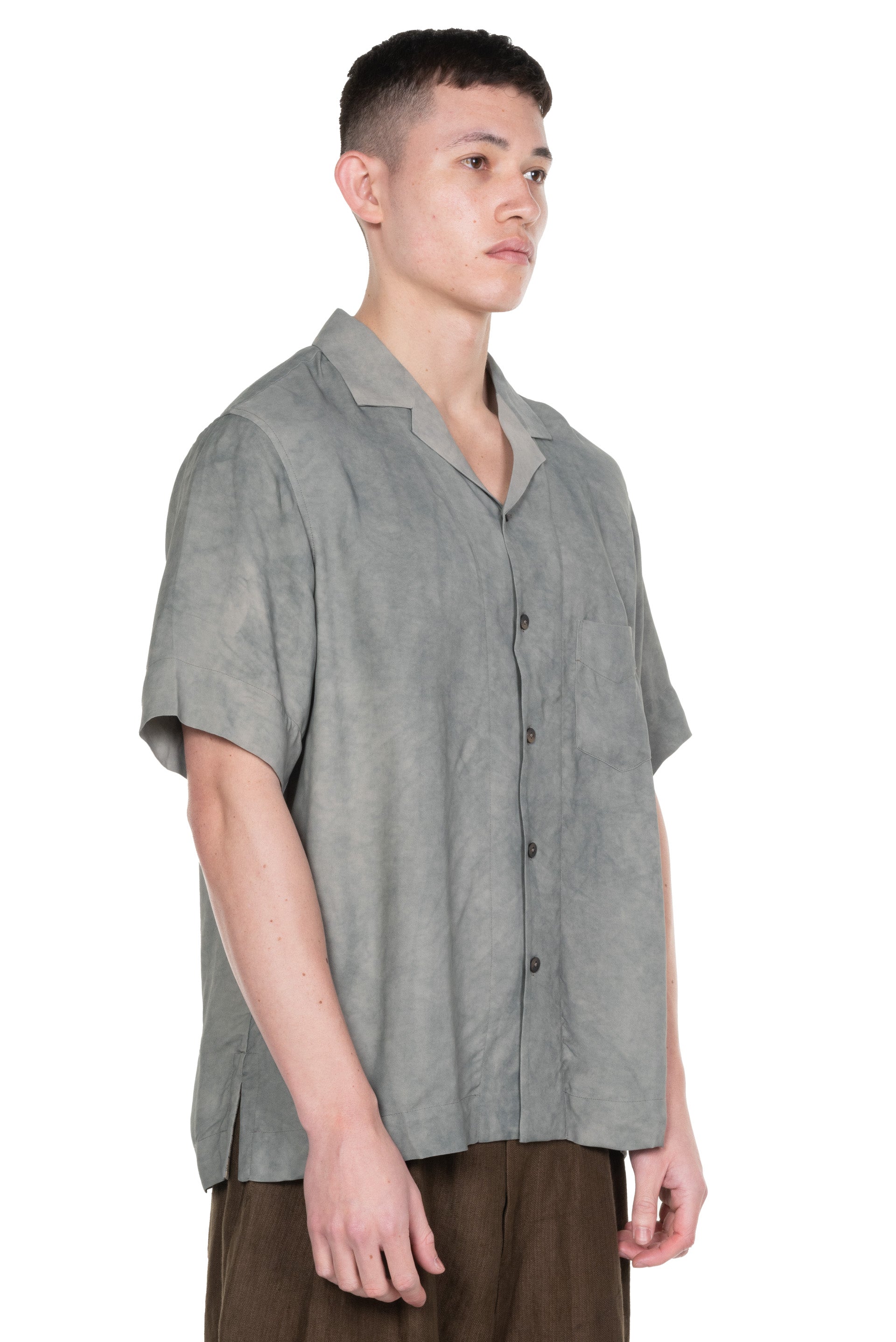 Ziggy chen men's Pale Blue printed short sleeve shirt. Notched collar. Button closure. Chest pocket. Dropped shoulders. Relaxed fit.