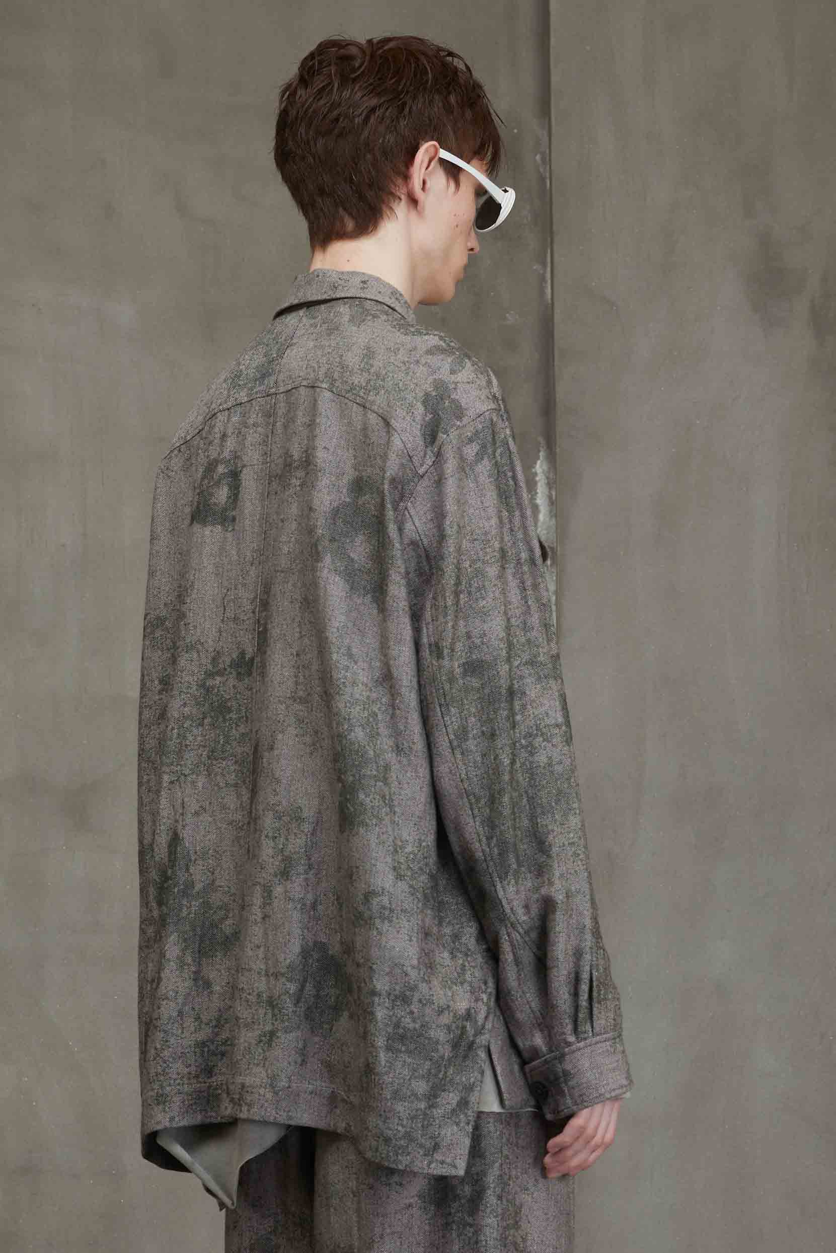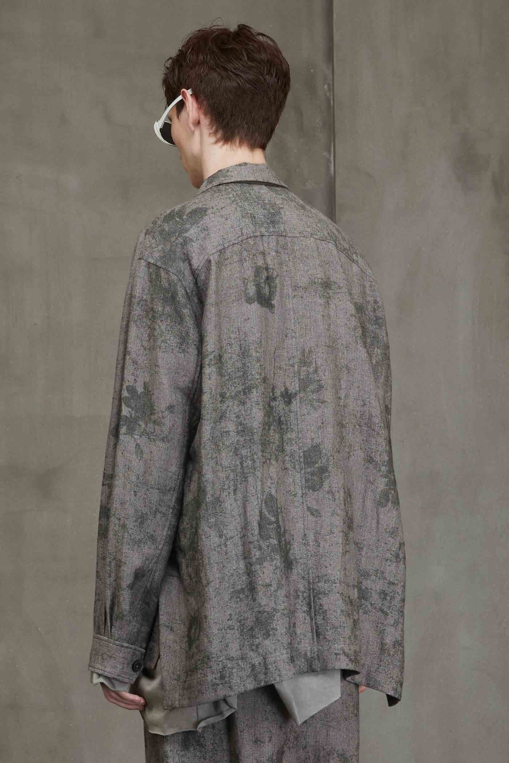 Long sleeves. Button closure at front. Button closure at cuffs. Two side pockets. Two Chest pockets. Classic collar. Slit at side. Seasonal print throughout. Fully lined. Inside pockets.