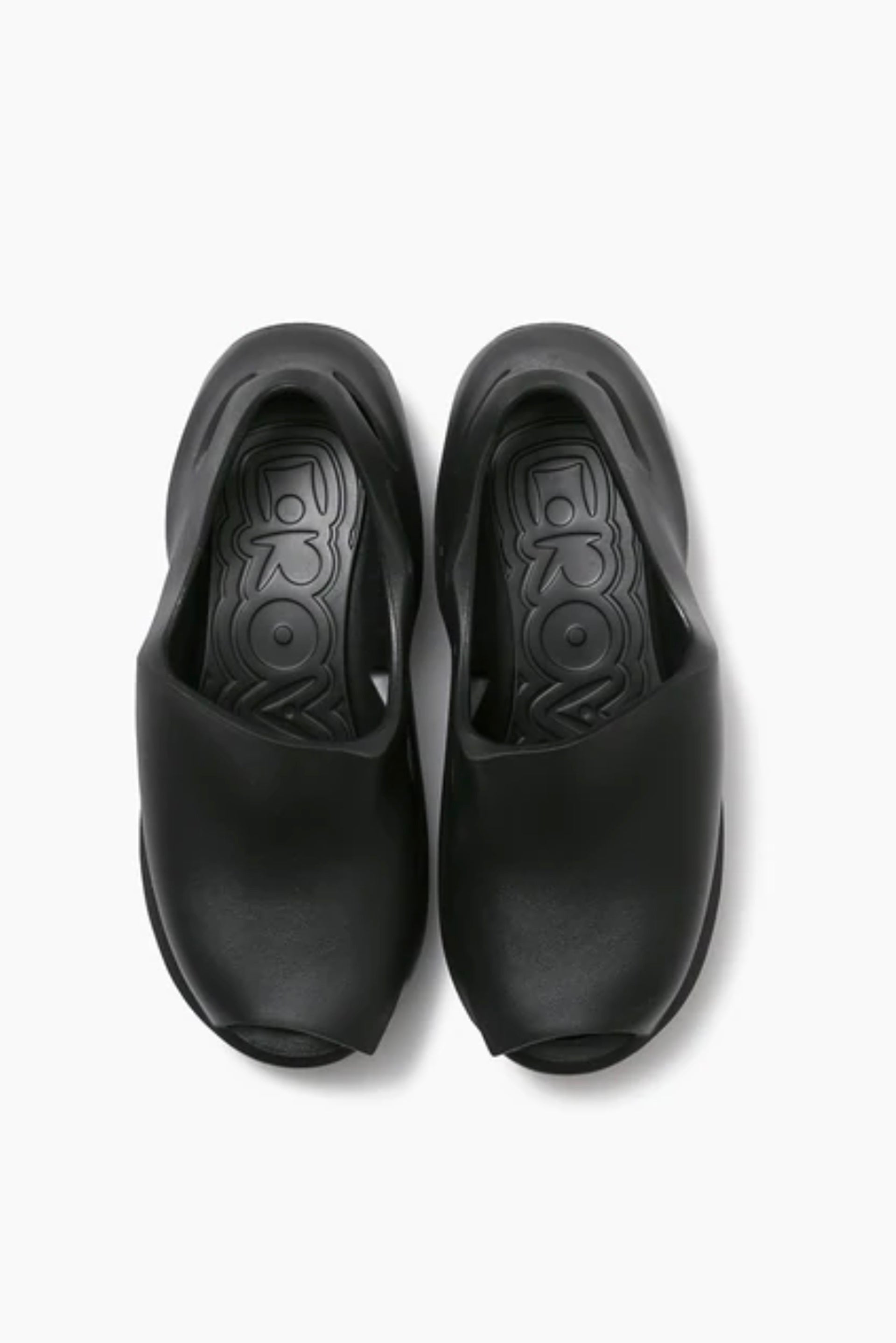 Grounds translates the pulse of Japanese youth into bold shoe design as seen with the Clay Black. Sandals made from a design idea created with clay and turned directly into a product. Grounds dared to leave the superfluous parts, which were created in the handmade stage and should have been eliminated in the design process, and made them into products.