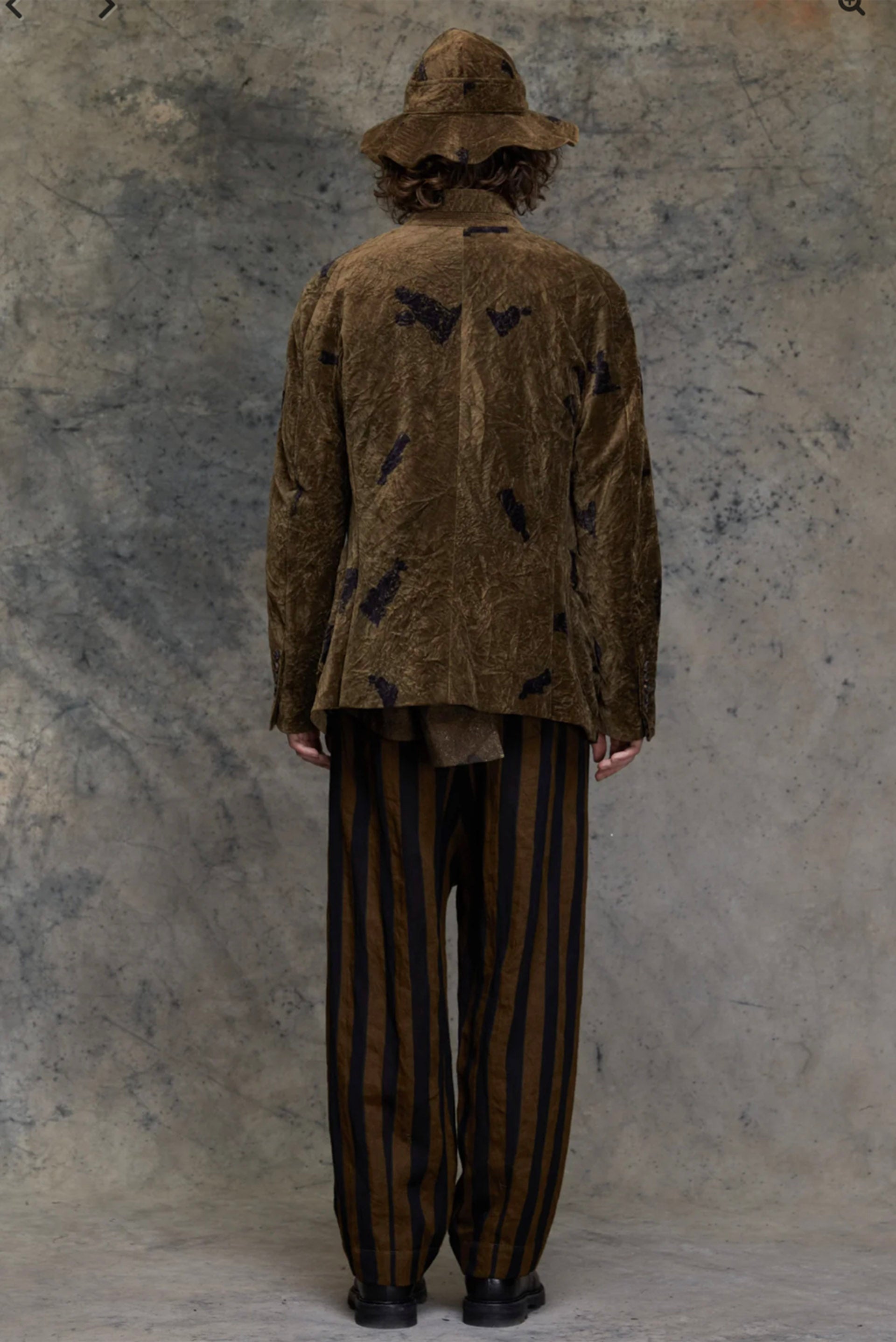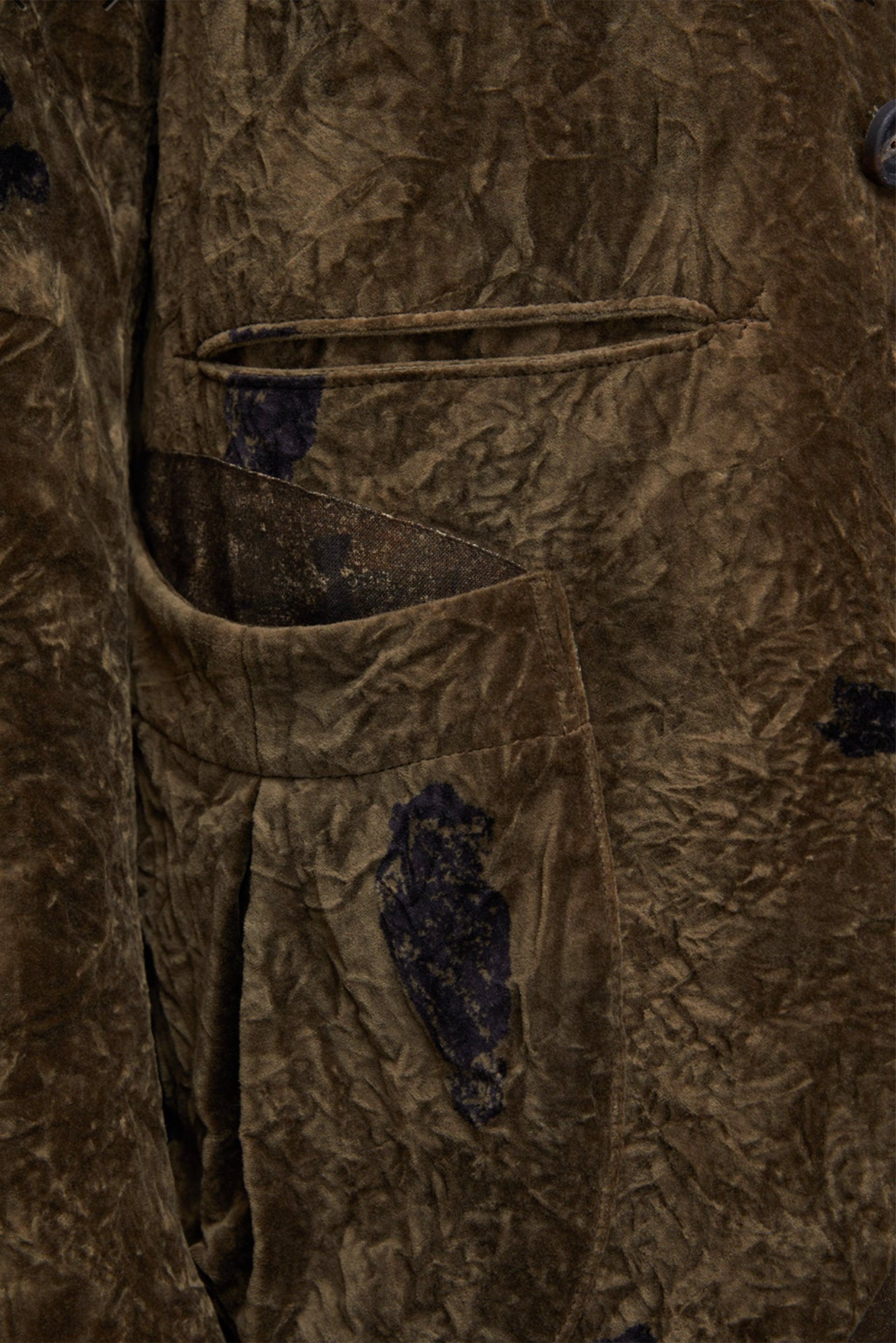 Crushed velvet printed blazer. Below-the-waist length. Slim fit. Seasonal printing "cloud crowd". Five button closure. Stand collar. Four pockets on front. Two back slits. Fully-lined.