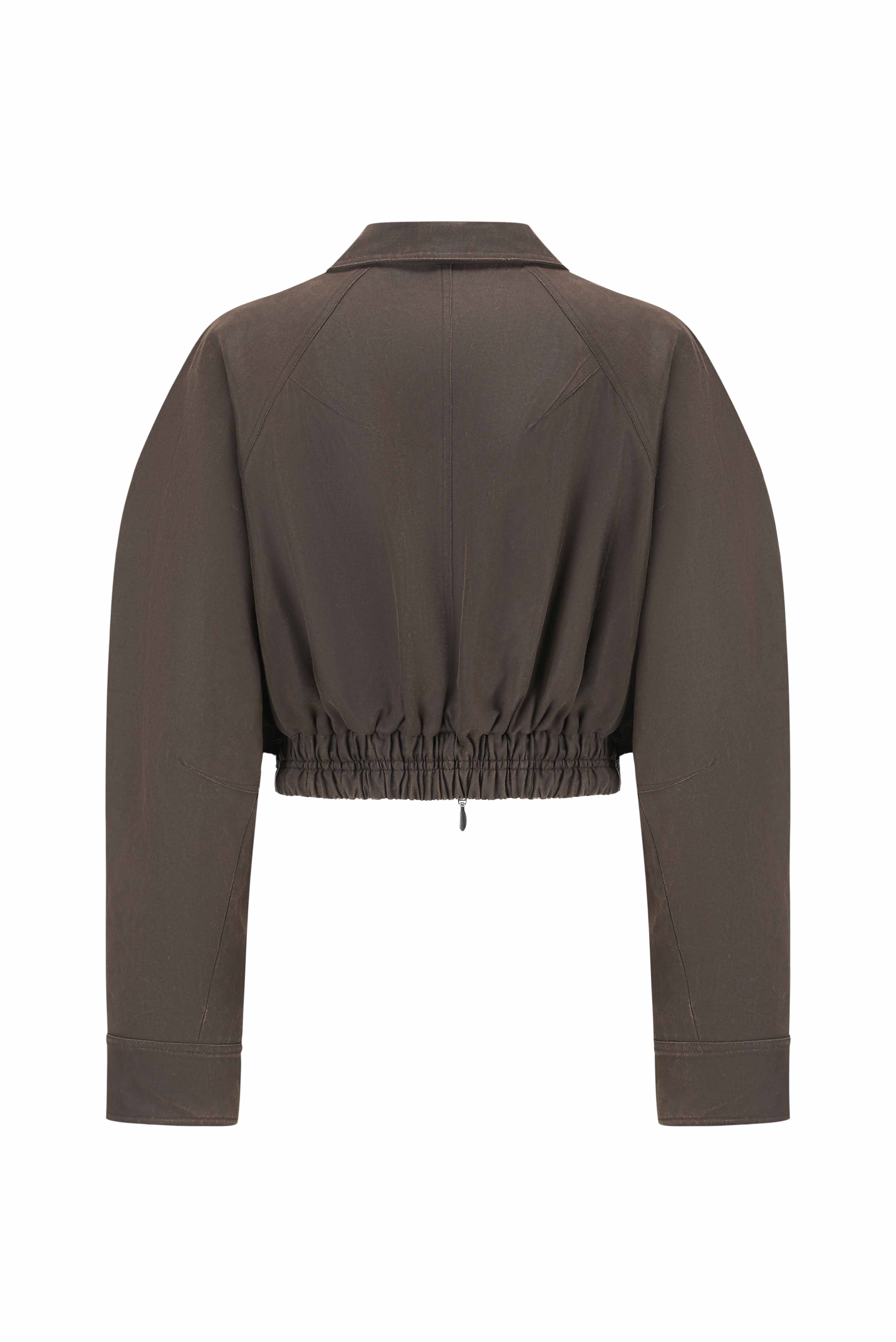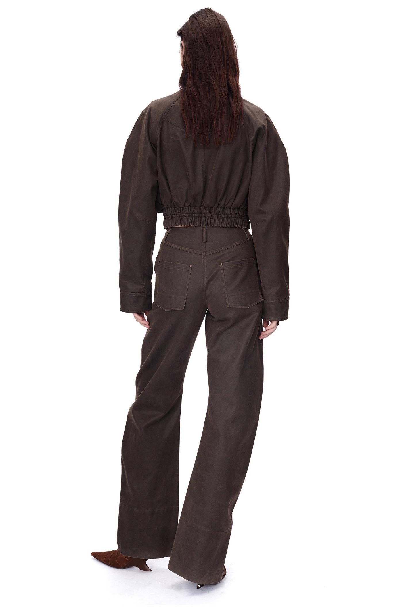 OUDE WAAG strikes a balance between Asian aesthetics and Western cutting. It is at the heart of designer’s philosophy: celebrating the power of women, yet simultaneously critiquing the ongoing objectification and idealisation of the body as you can see in the Oude Waag AW25 collection with the Coated Oversized Cropped Jacket Coffee.
