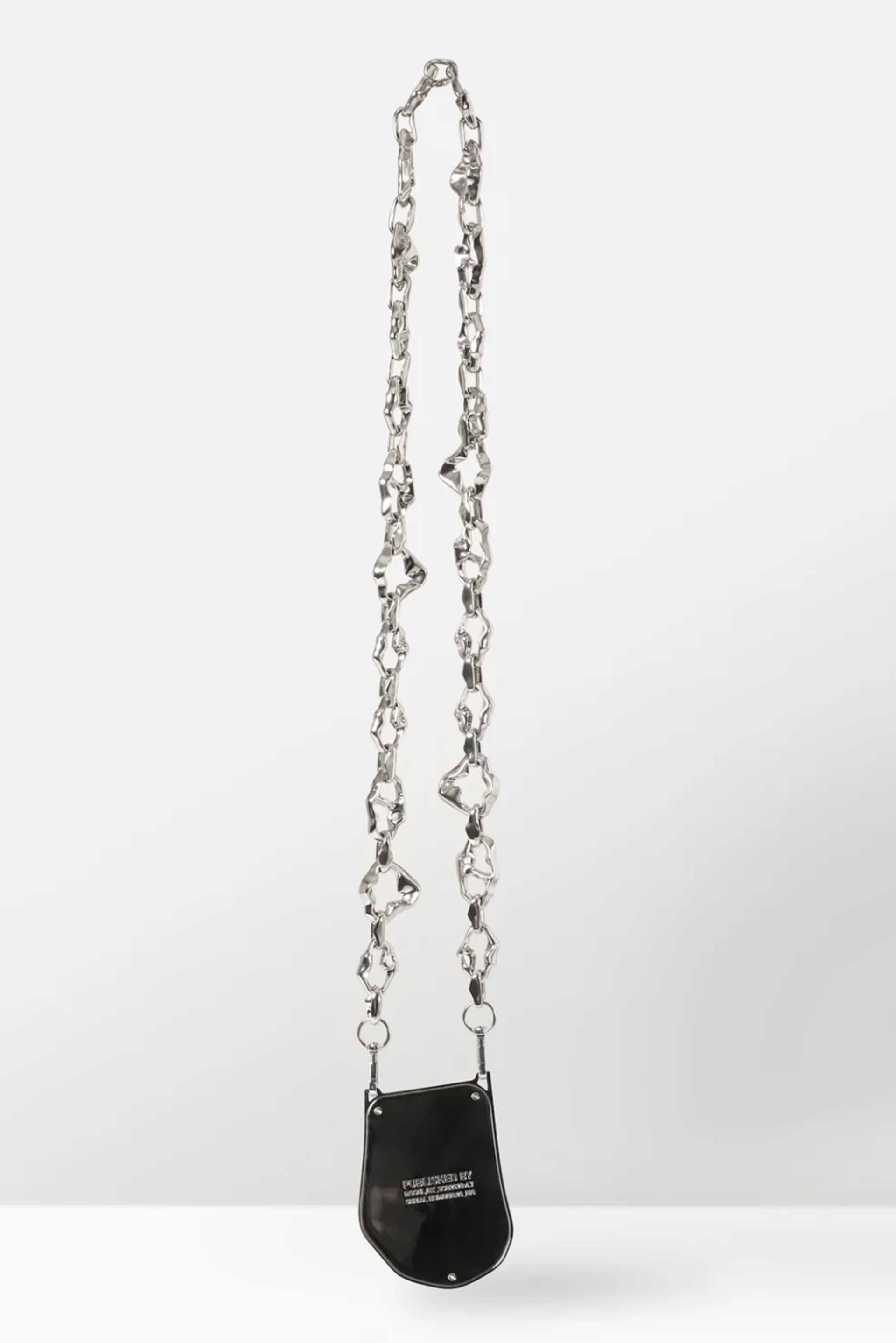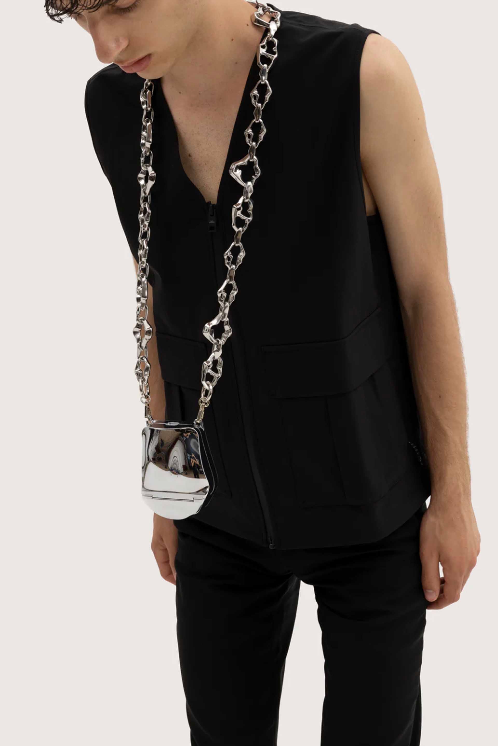Since 2019, published by is an Austrian studio, merging state of the art 3d modelling and production technologies with precision craftsmanship to create sculptural accessories inspired by architecture and modern art as seen with the Coin Purse with Wavy Chain Chrome. Discover Published by bags from the signature styles that mirror the look of stones, to more fluid pieces that give the illusion of moving metal. Made by using state of the art CAD-manufacturing programmes borrowed from the automotive industry, introducing a new wave of luxury.