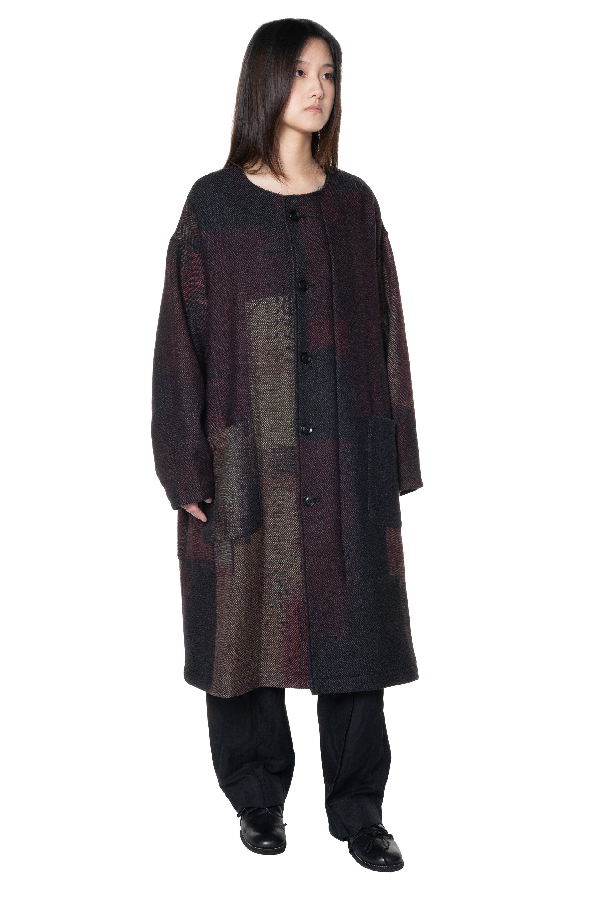 Each Y's collection focusses on contemporary avant-garde fashion and functional everyday wear. Asymmetric constructions, innovative techniques, and unexpected fabrics all give character to Y’s ready-to-wear and accessories collection making each piece timeless as seen with the Collarless Coat Herringbone Abstract Block.