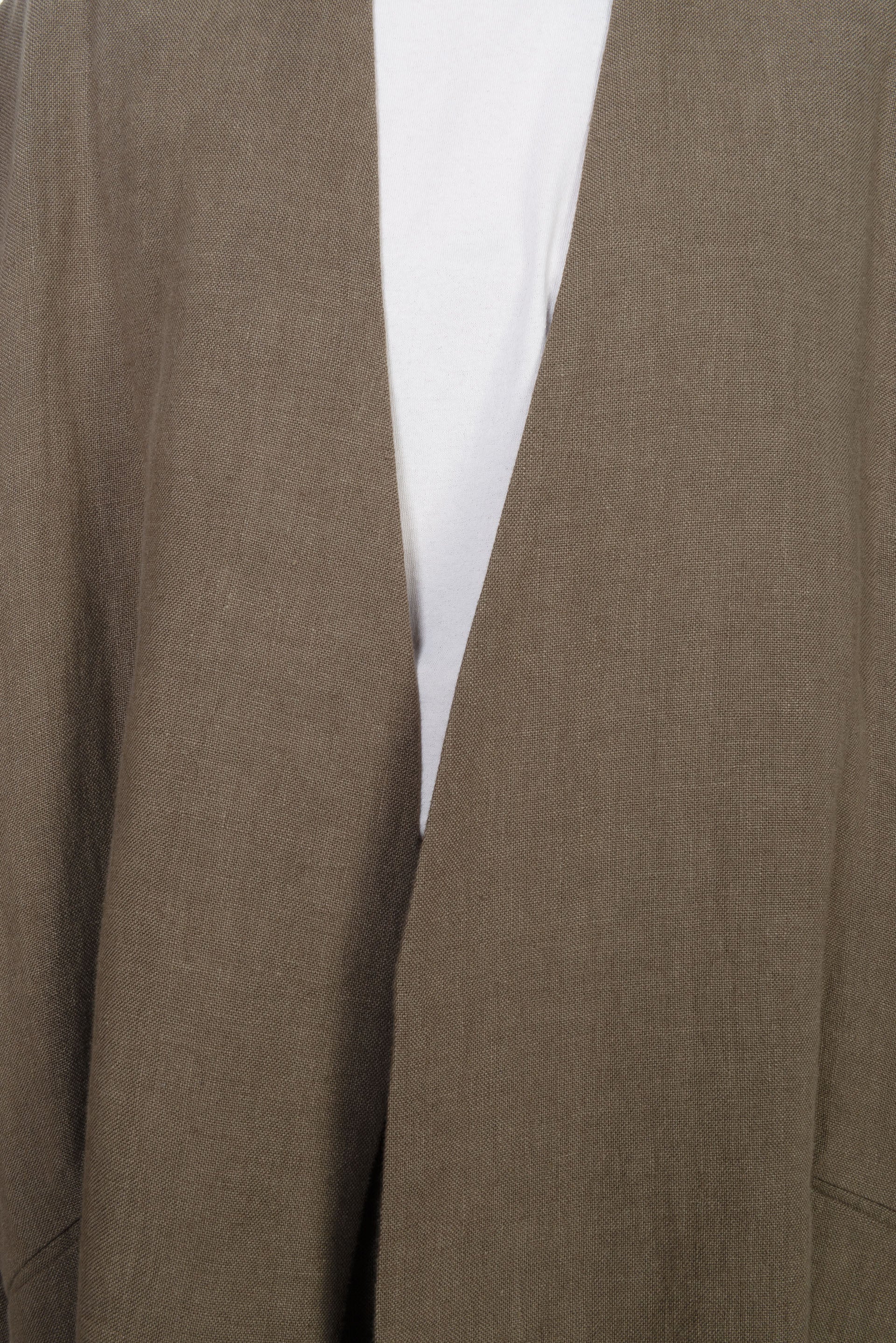 Collarless Linen Long Coat Olive