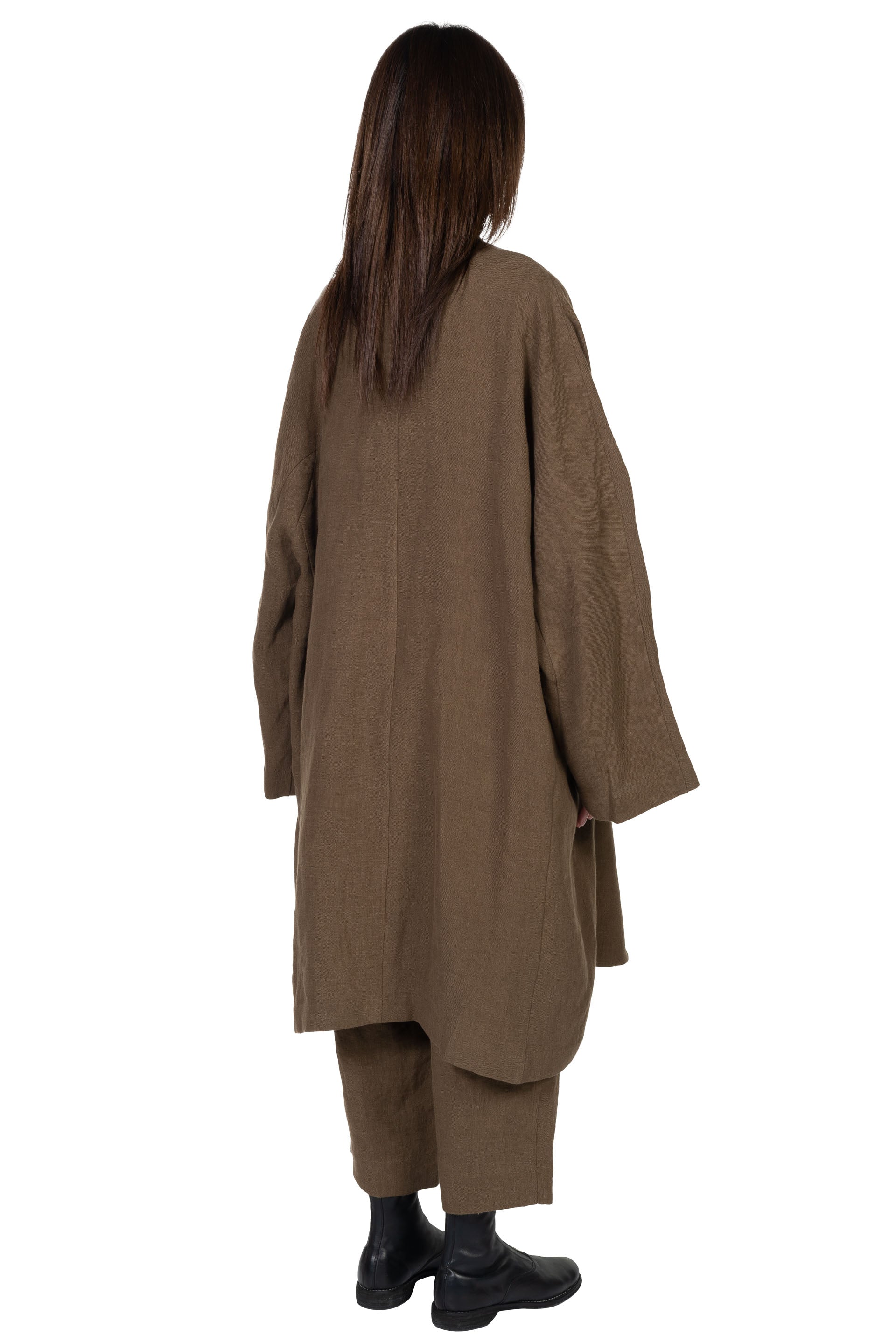 Kar Studio is an independent interior design studio, furniture and clothing brand exploring the cause and effect of aesthetics, integrating tradition and modernity. Kar is presenting modern design with Oriental philosophy. Inspired by art, literature, memories and emotions Kar focuses on design sensibility aiming to convey emotion that will resonate with people as seen with the Collarless Linen Long Coat Olive.