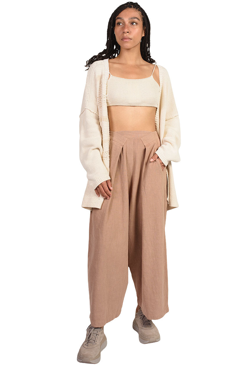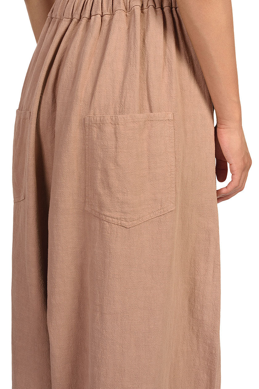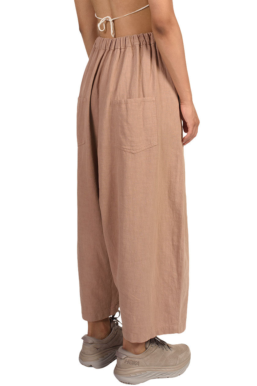These pants are ethically manufactured in La Coruña (Spain), crafted from high quality fabric and dyed locally with the latest technology and sustainable methods. Timeless and easy wearing trousers with a slightly curved and cropped leg. Details include side pockets and elasticated waistband. Length including waistband is 89cm.