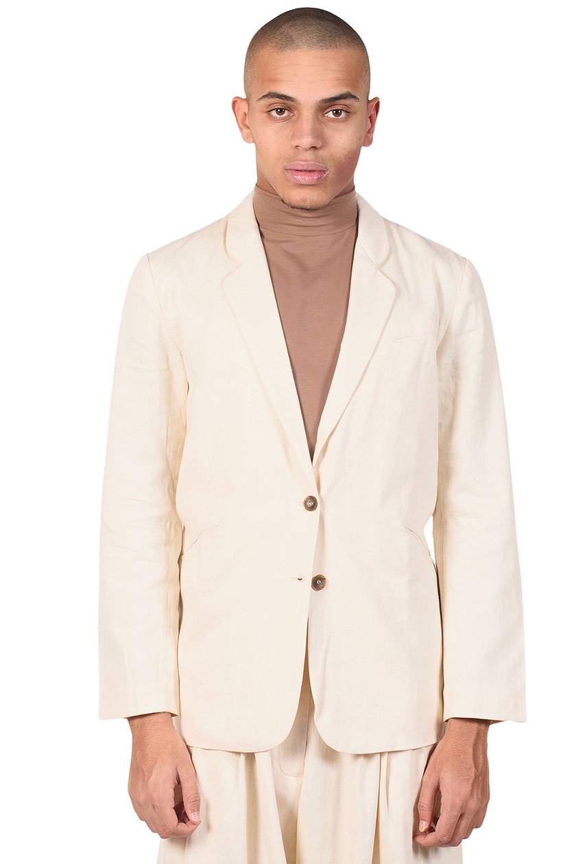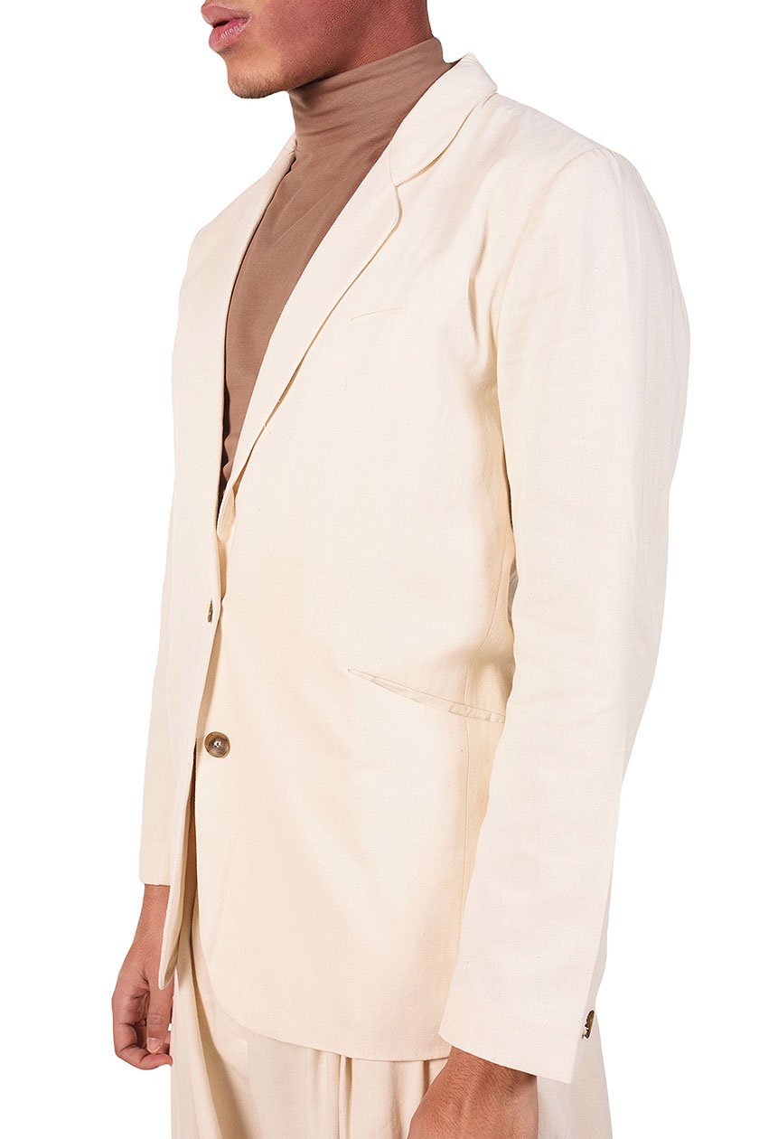 Two buttons blazer. Cotton blazer. Two pockets at front. One pocket at chest.