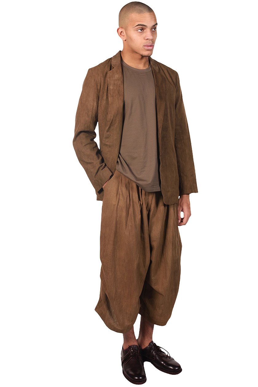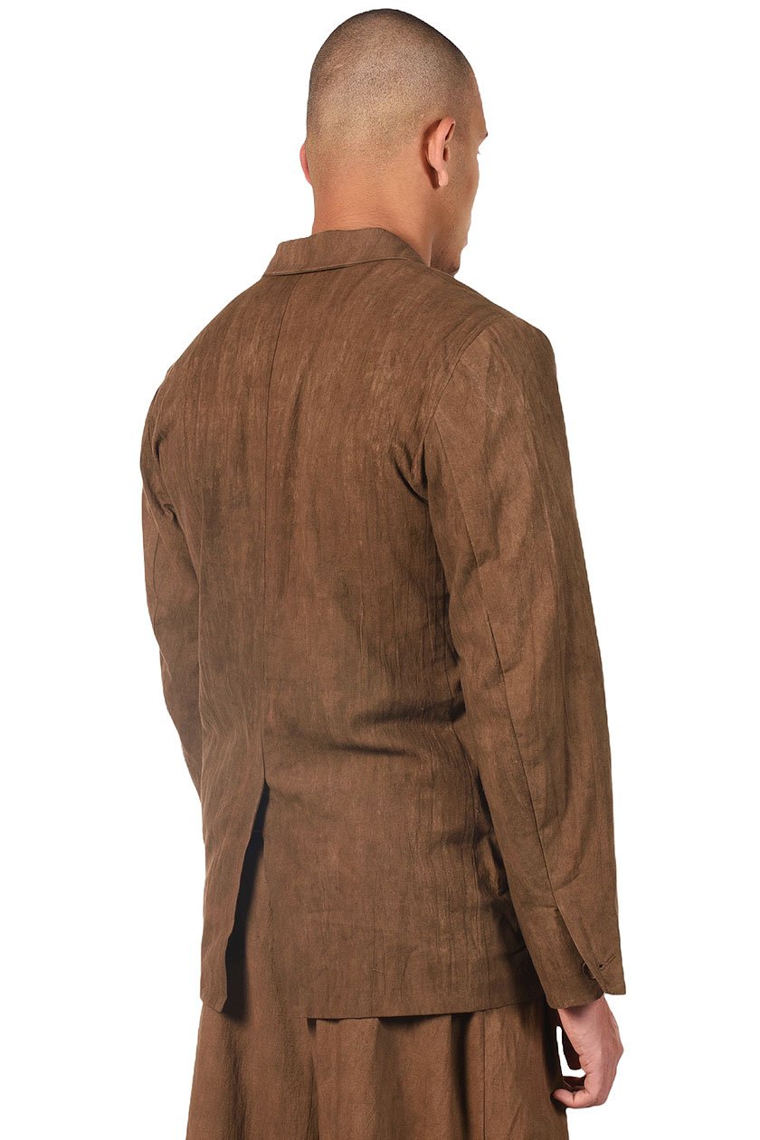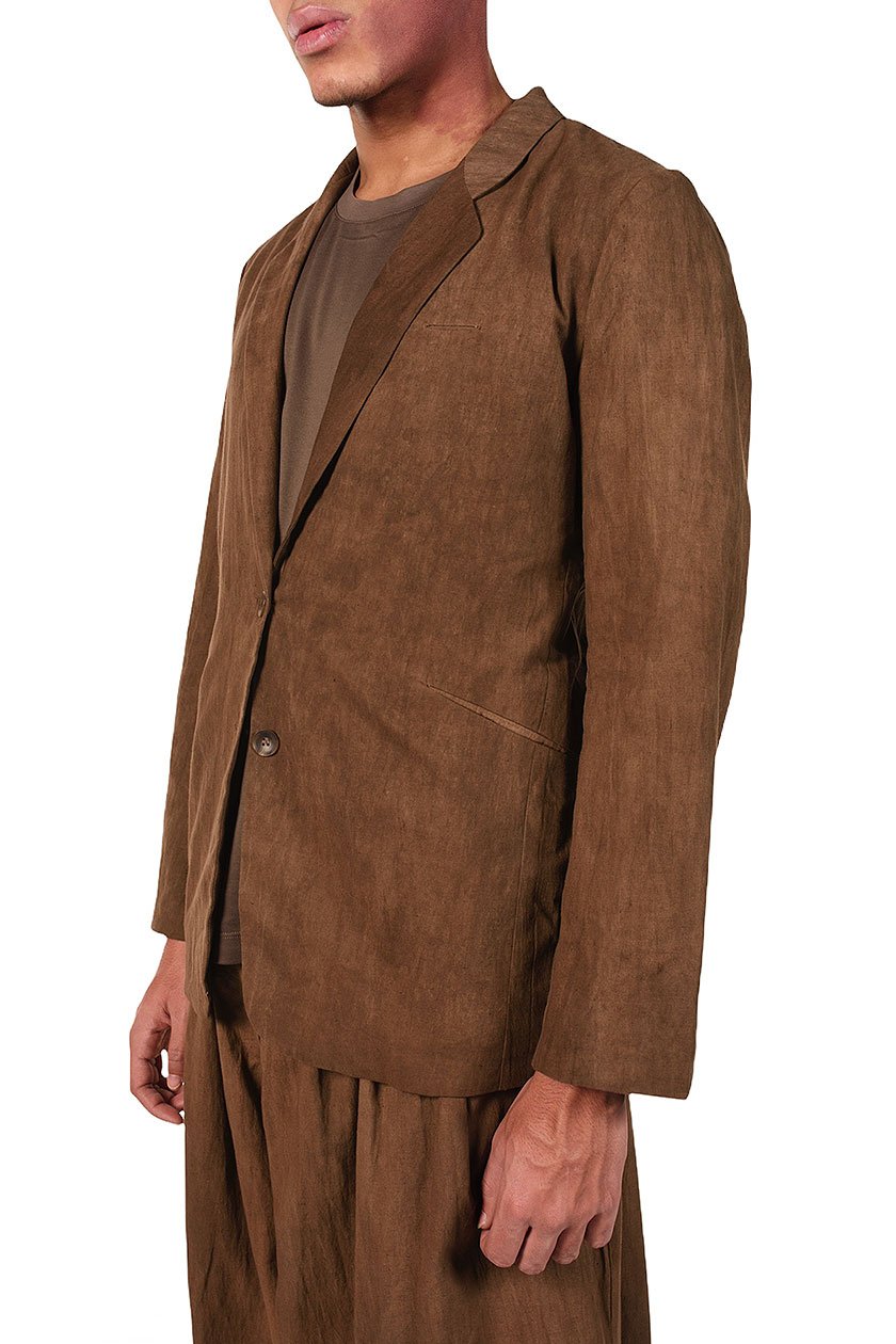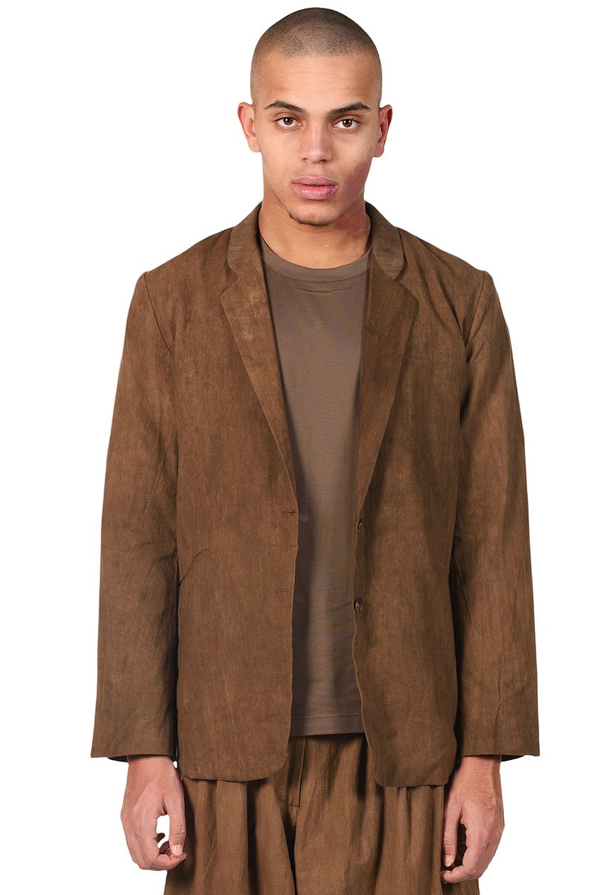 Two buttons blazer. Cotton blazer dyed with Persimmon. Two pockets at front. One pocket at chest.