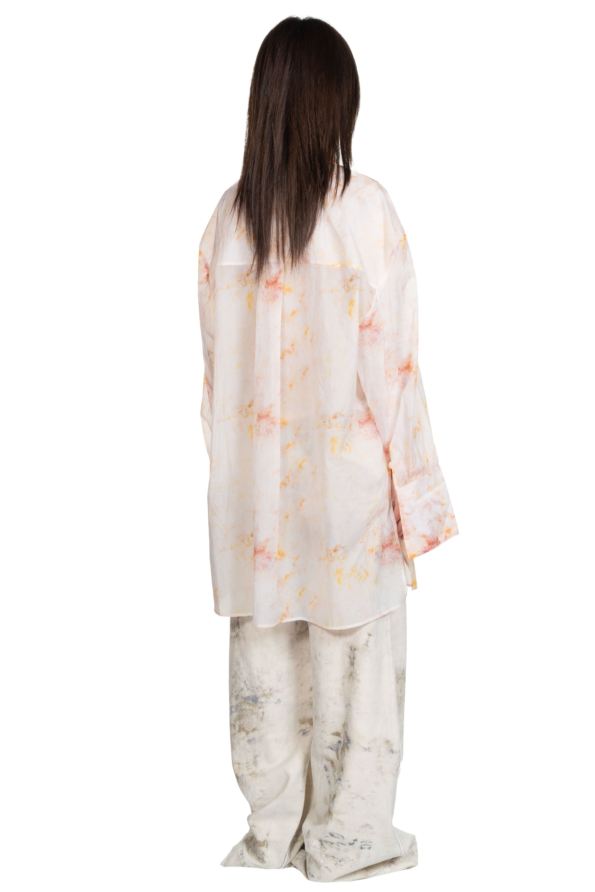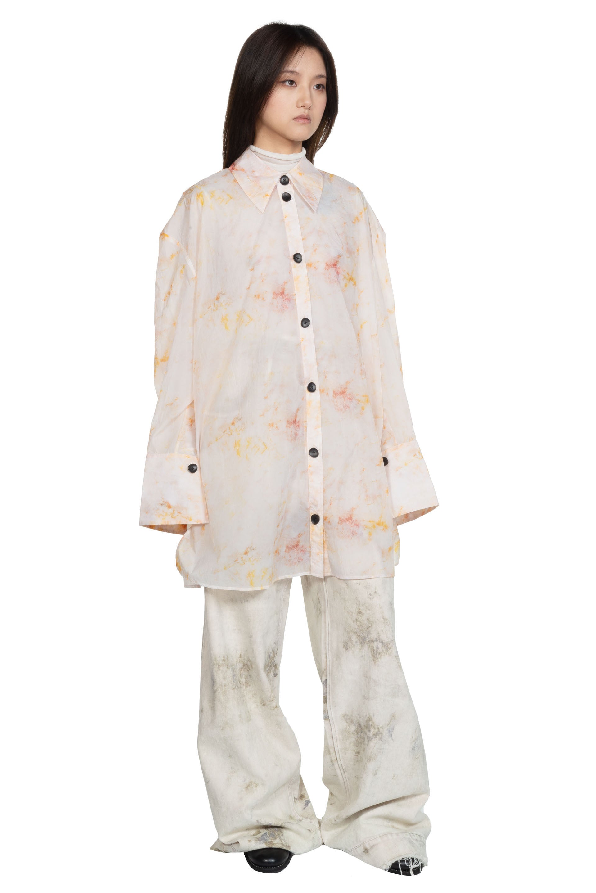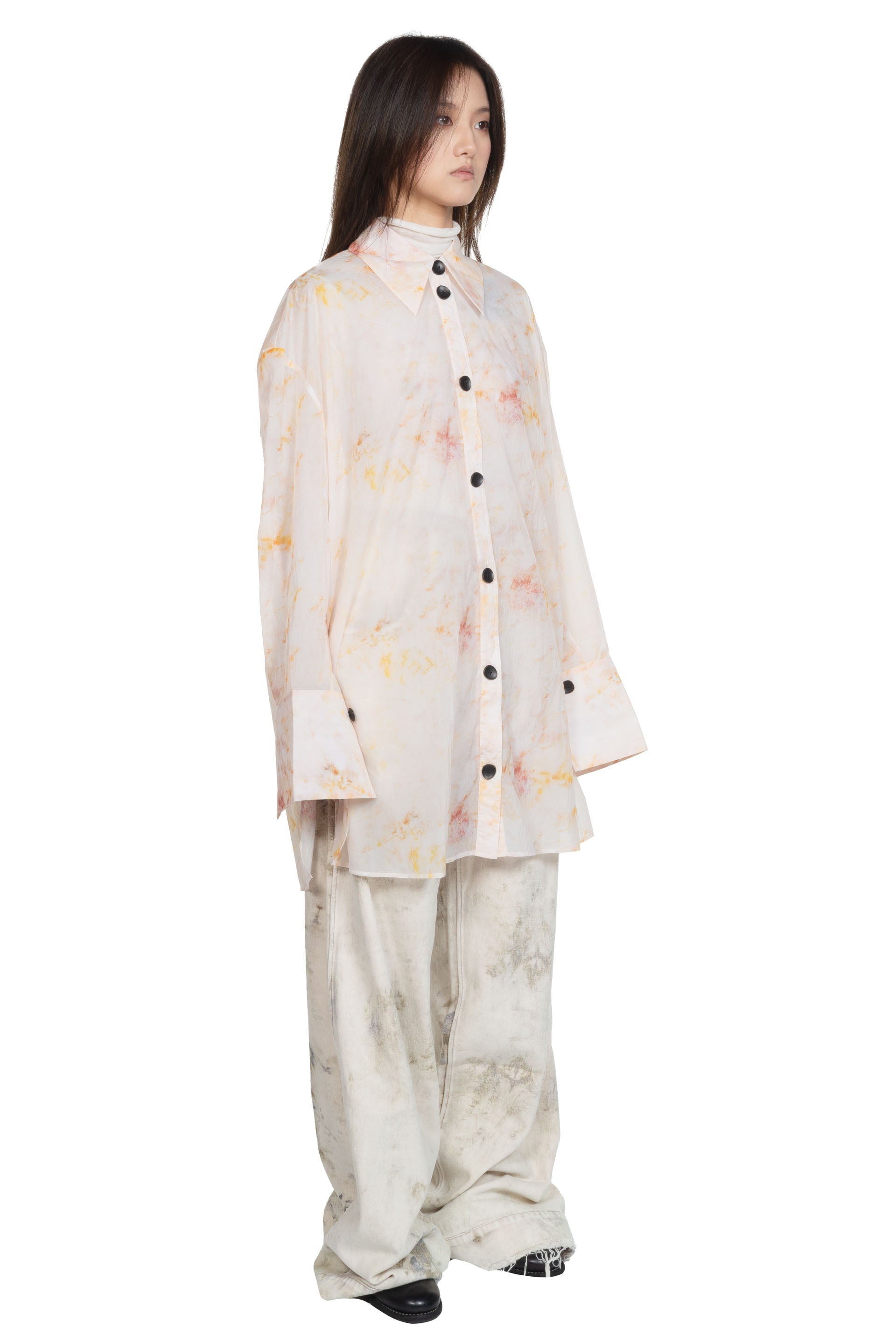 Peng Tai creates modern silhouette with traditional chinese philosophy. Inspired by how Chinese herbal medicine regulates the body from the inside out, Peng Tai aims to research and develop a way to boil Chinese herbal medicine with fabrics, to create clothes that feel like a second skin as seen with the Cotton Chemise Oversize Vanilla Cream.