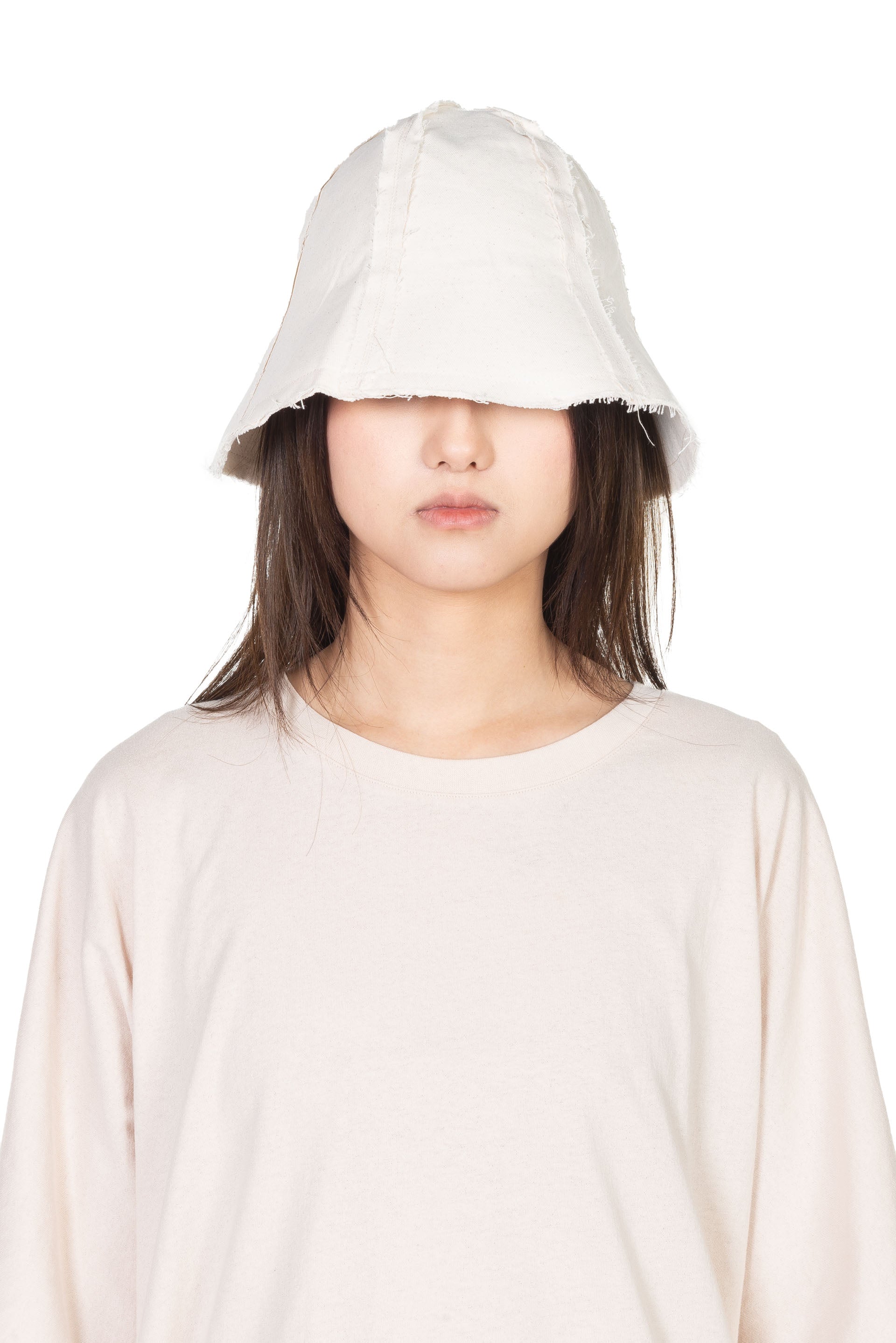 Kar Cotton Hat White. Panelled. Raw edges. One size