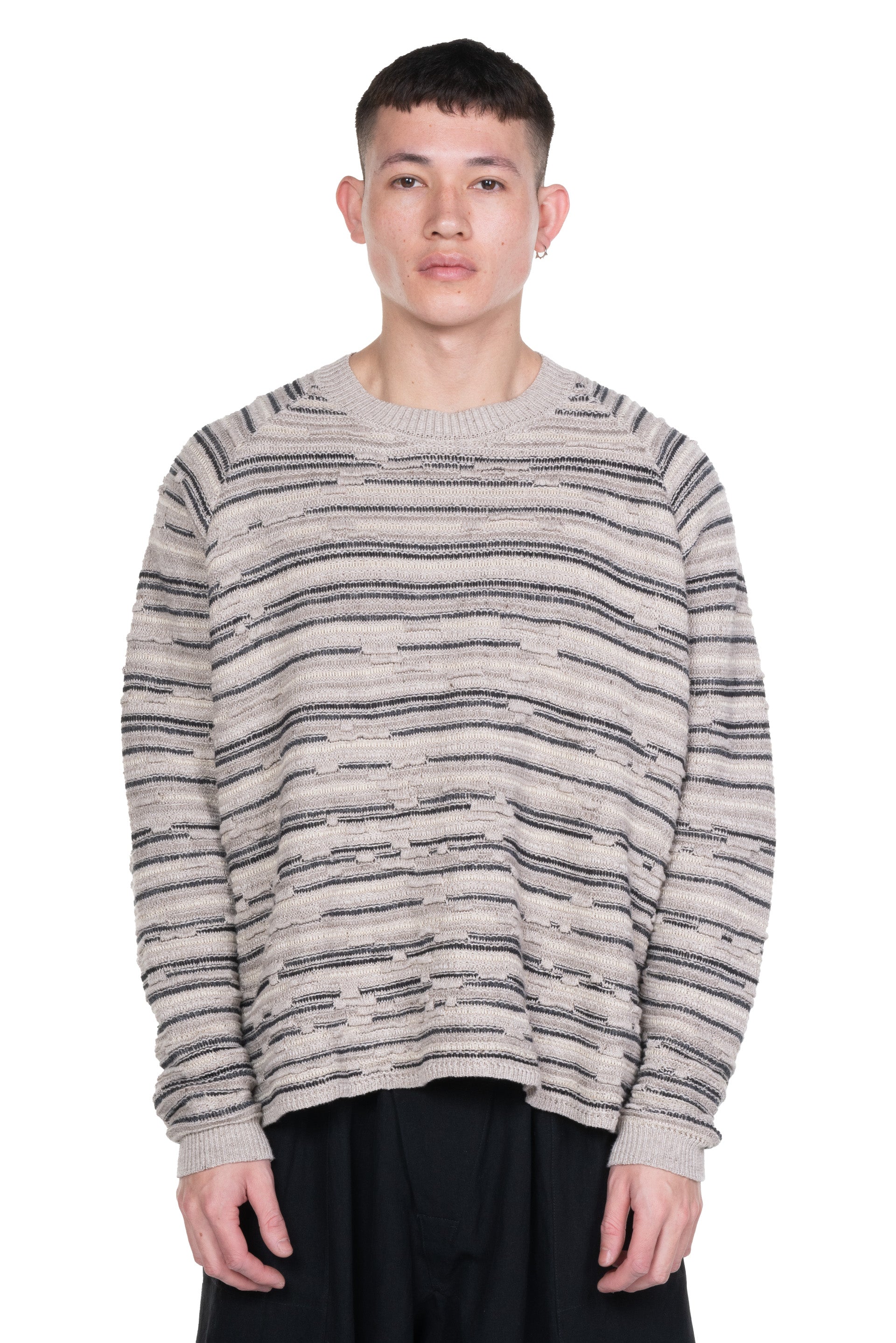 Jan-Jan Van Essche design approach is sincere and discrete, executed in carefully sourced refined quality fabrics, rich in natural tones, delicate textures, and easeful silhouettes. SS24 Prana collection #14 is inspired by the worlds collective culture as seen with the Crewneck Sweater Linen Cotton Beige