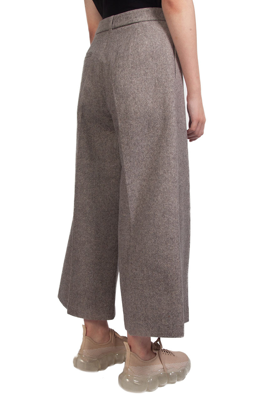 Wool-blend structured cropped wide-leg trousers. Structured silhouette. Bonded wool blend fabric. Wide legs and cropped length. Belt loops. Zip and button fastening.