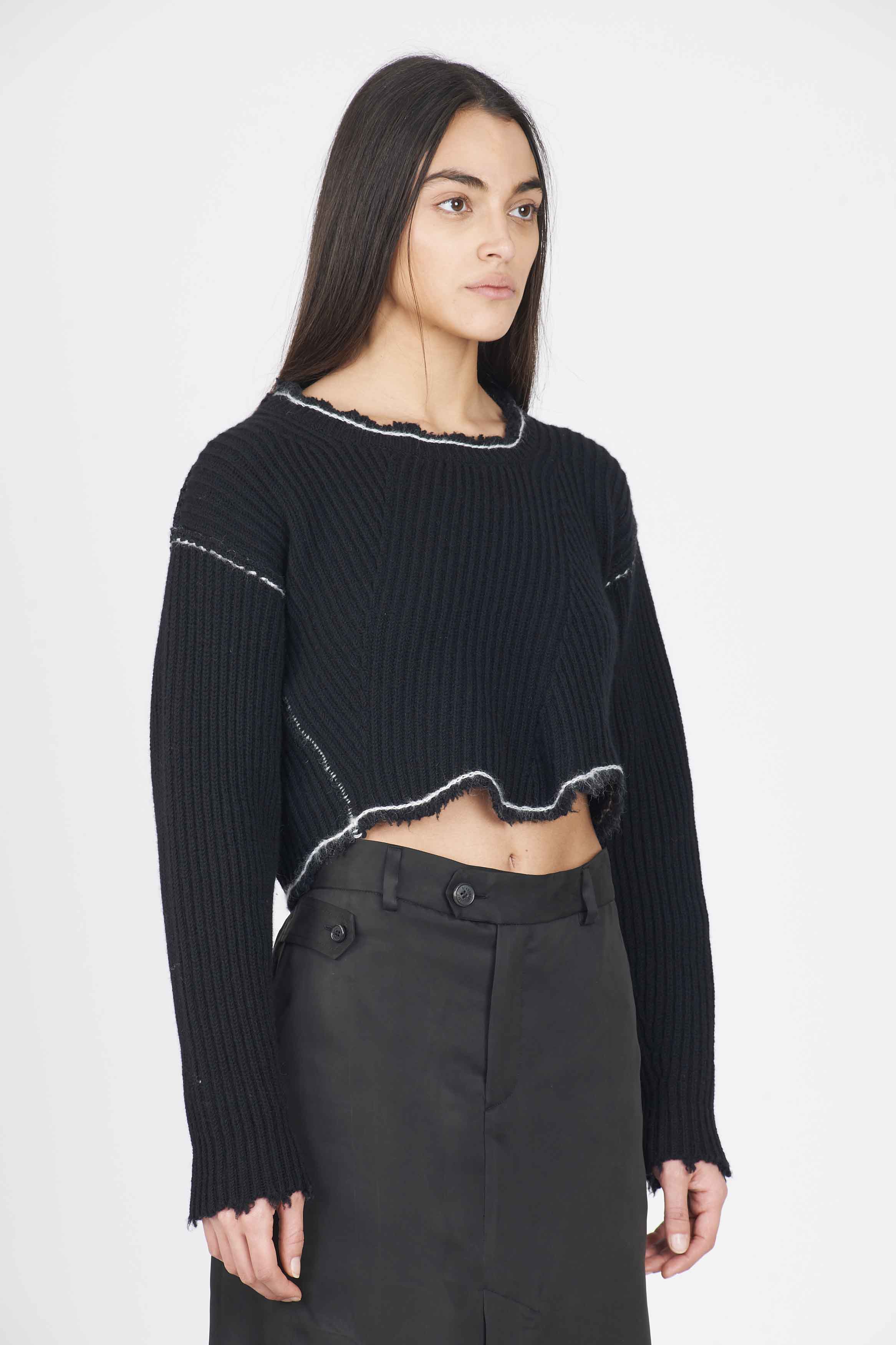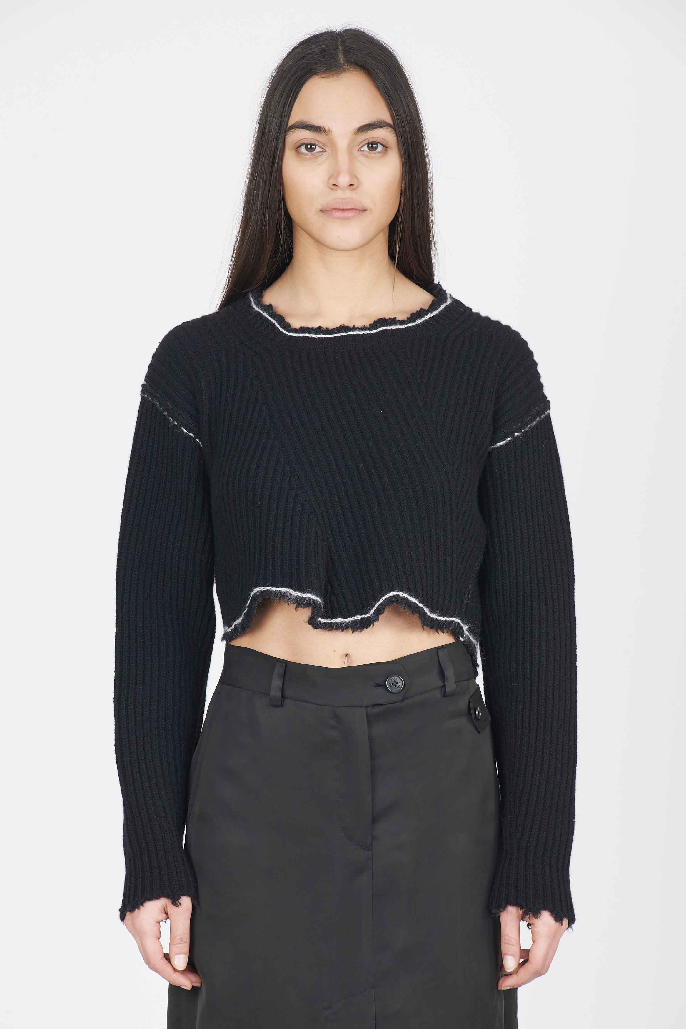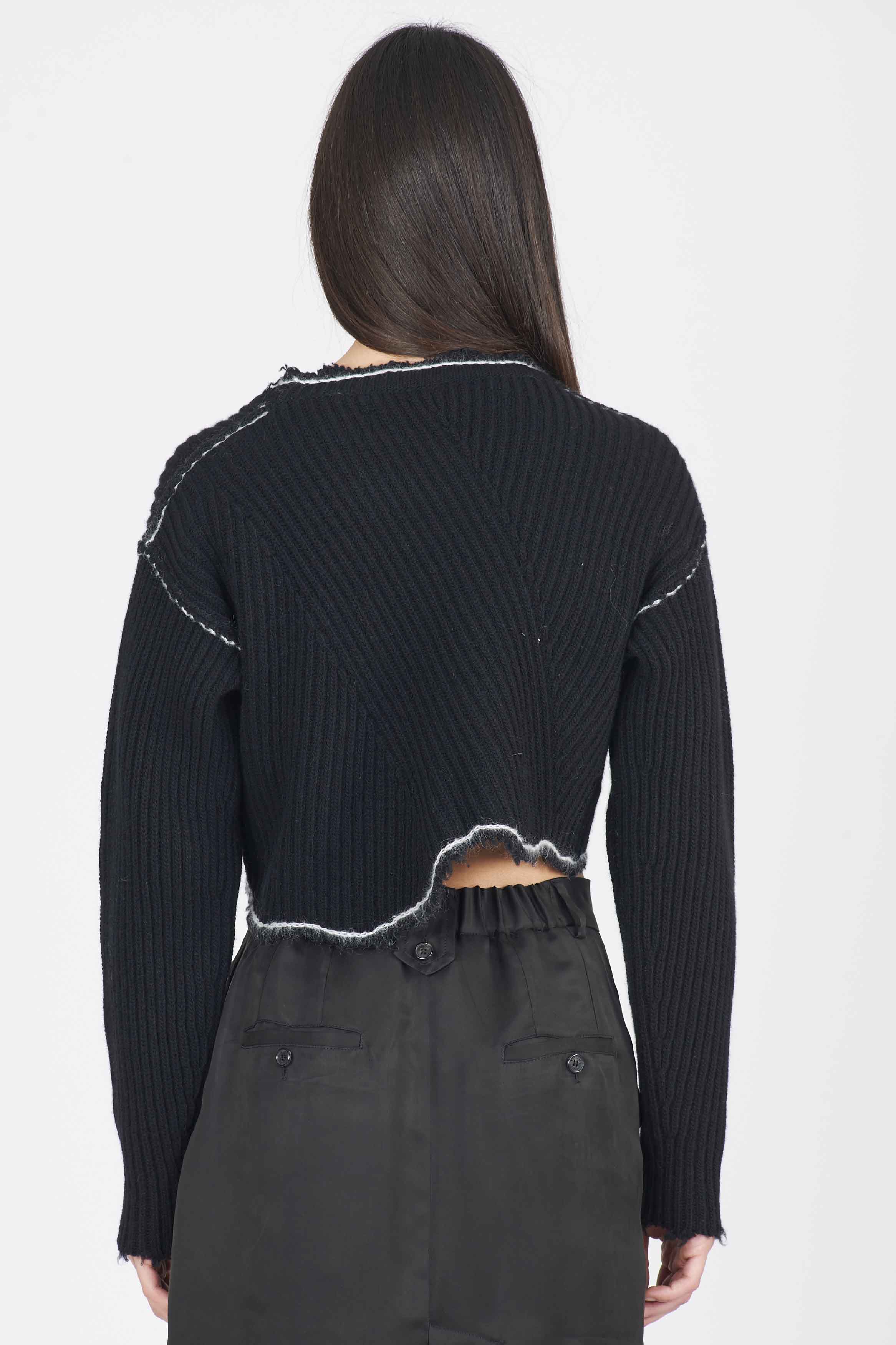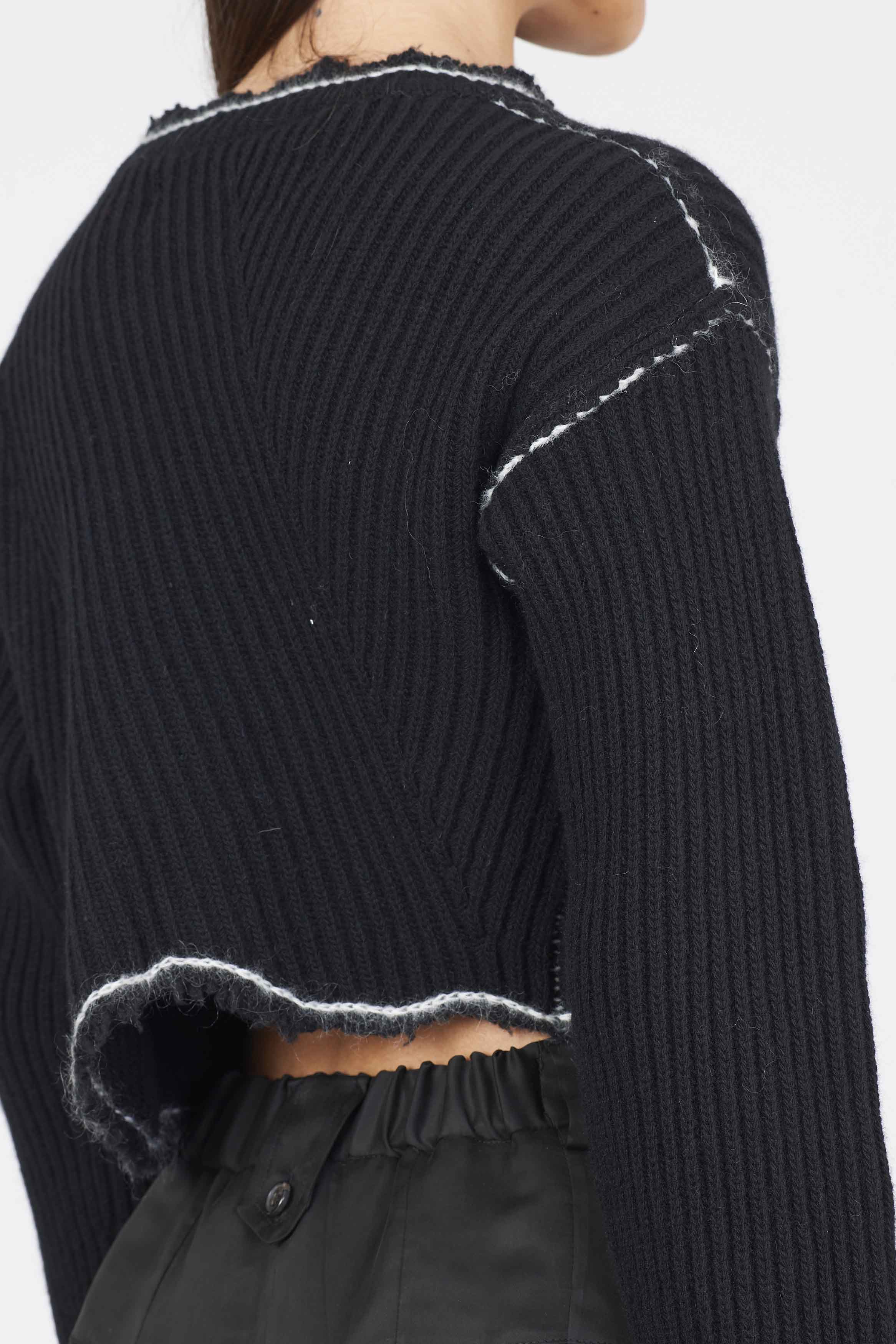 Short ribbed eco cashmere knit with coloured stitch details. Regular fit.Colour: Black. Composition: 50% Cashmere 50% Virgin Wool.