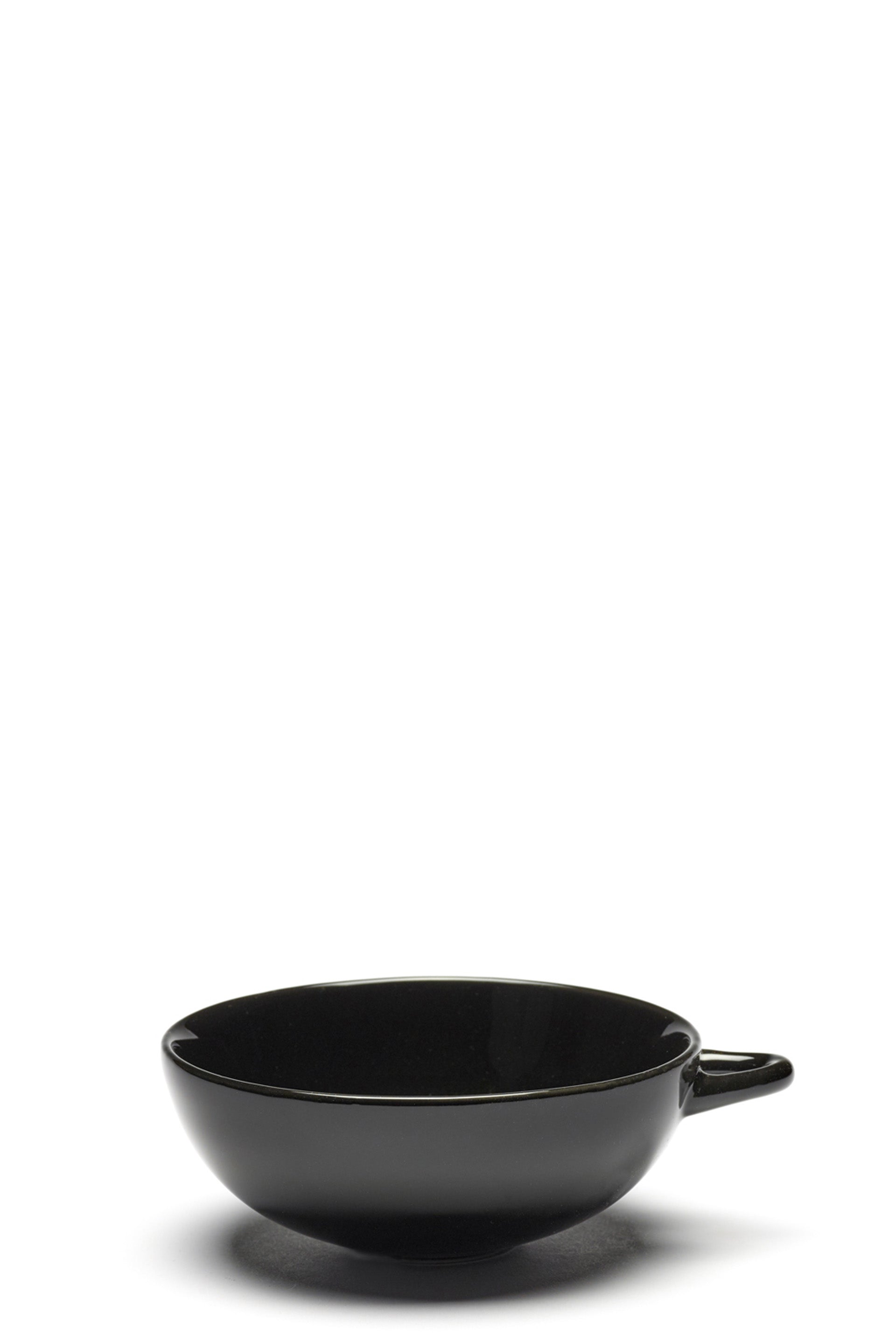 Set of 2 Ann Demeulemeester x Serax bowl-shaped Cups with a horizontally placed ear in black. Capacity 20cl. Designed by Ann Demeulemeester.