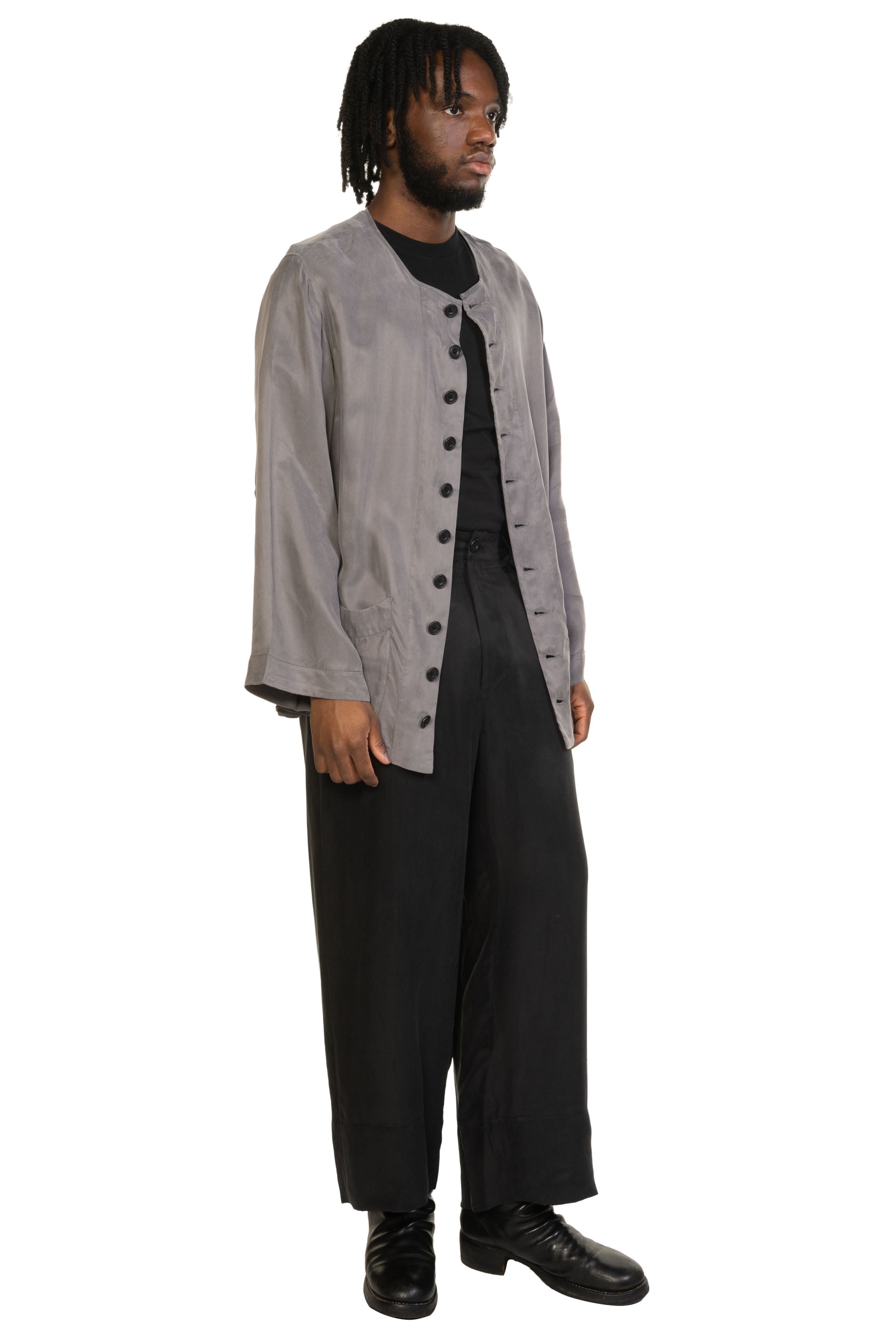 PENG approaches clothing as a quiet expression of the human experience, shaped by nature, time, and the body. Designed by Zhi-Chen Tai (formerly Peng Tai), each piece reflects a considered balance between conceptual design and everyday wearability. Natural elements such as leaves, soil, and organic textures inform the materials and silhouettes, resulting in garments that feel thoughtful, tactile, and timeless. Defined by refined craftsmanship and contemporary form, PENG offers modern menswear with a calm, organic sensibility, clothing designed to be worn, lived in, and appreciated over time as seen with the Cupro Trousers Black