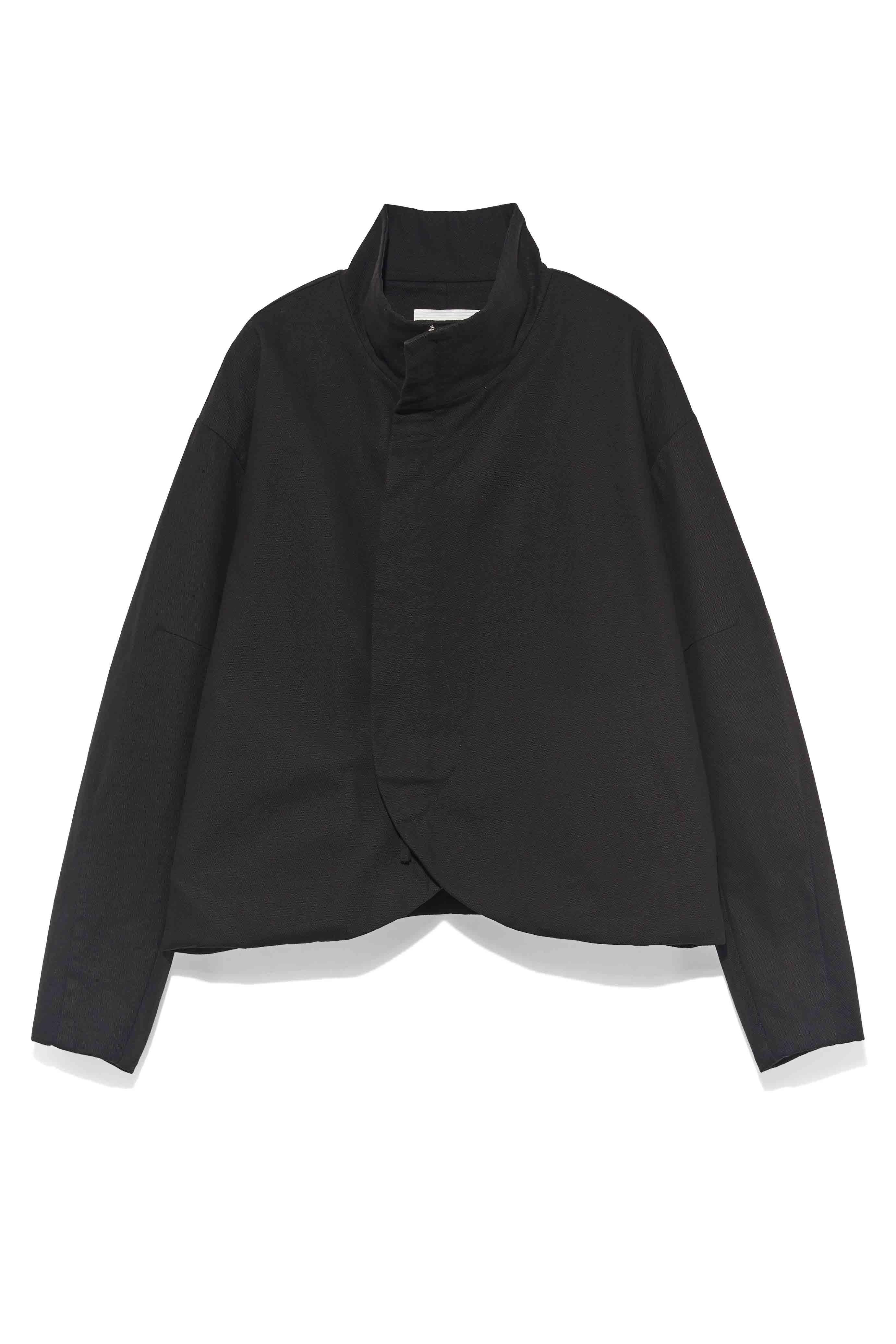 ATTEMPT reconstructs different styles and elements to create a new aesthetic system. By taking a more experimental approach to creation and production, which involves an understanding of the past and the current form of society, Attempt is creating an aesthetic form that is anchored in the present but different from it. It must ultimately be a product that cannot be defined as seen with the Curved Double Layered Collar Jacket Black.