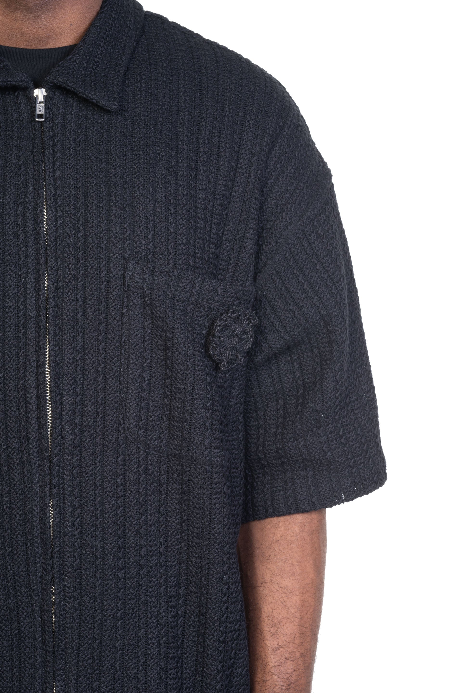 Song for the Mute short sleeves shirt. Front zip closure. Double zip. Regular collar. Pocket at chest. Soft hairy fabric. Lightweight and comfortable. Boxy fit.