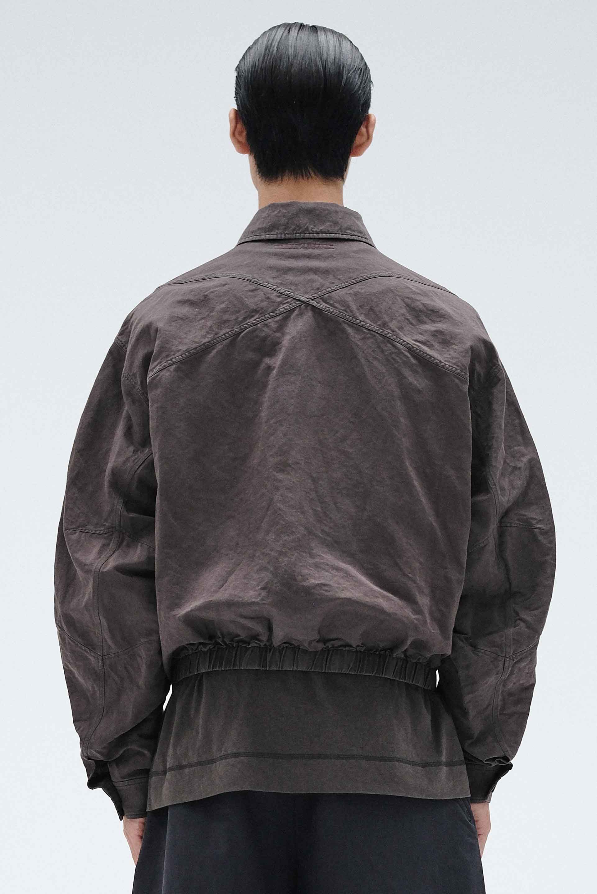 ATTEMPT reconstructs different styles and elements to create a new aesthetic system. By taking a more experimental approach to creation and production, which involves an understanding of the past and the current form of society, Attempt is creating an aesthetic form that is anchored in the present but different from it. It must ultimately be a product that cannot be defined as seen with the Darted Zip Blouson Brown.