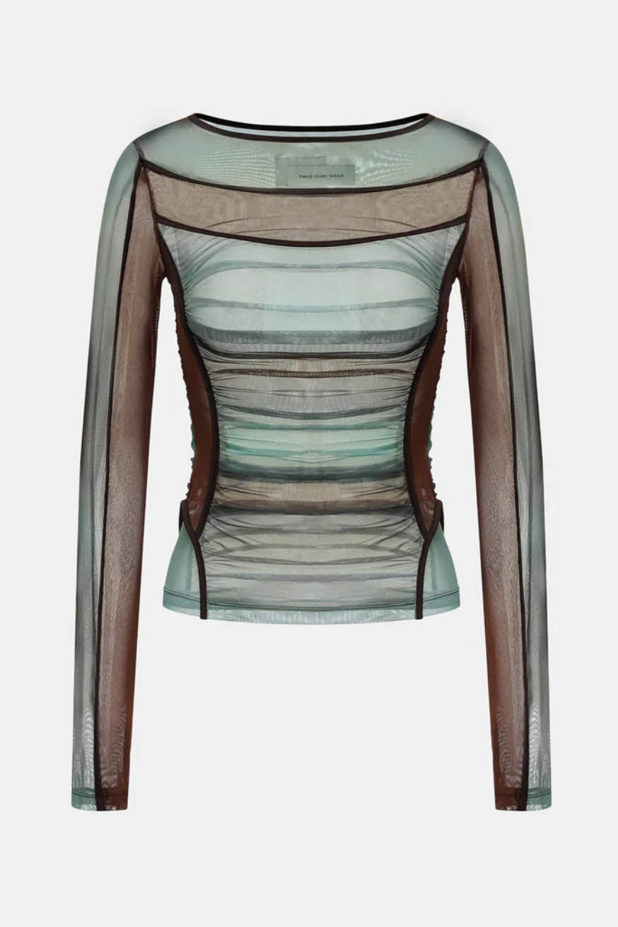 Feng Chen Wang Deconstructed top in Grenadine. Long sleeves. Round neck. Deconstructed with mixed fabric. Slim fit.