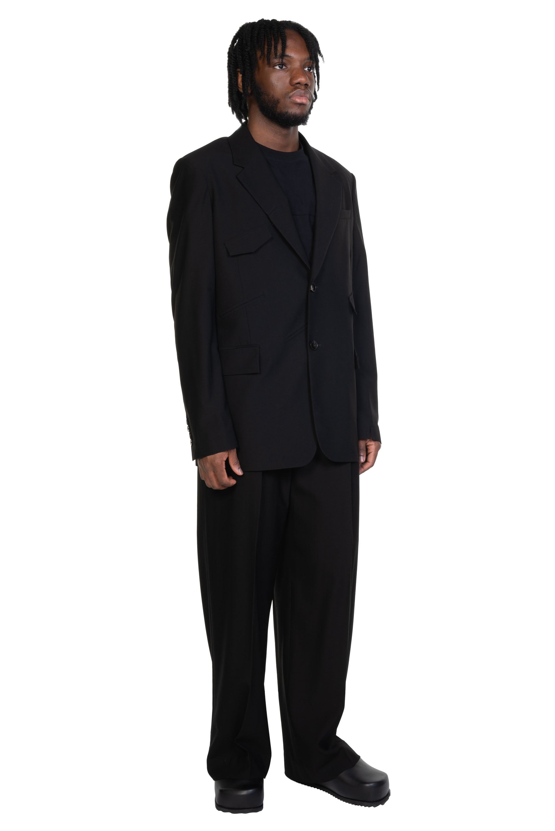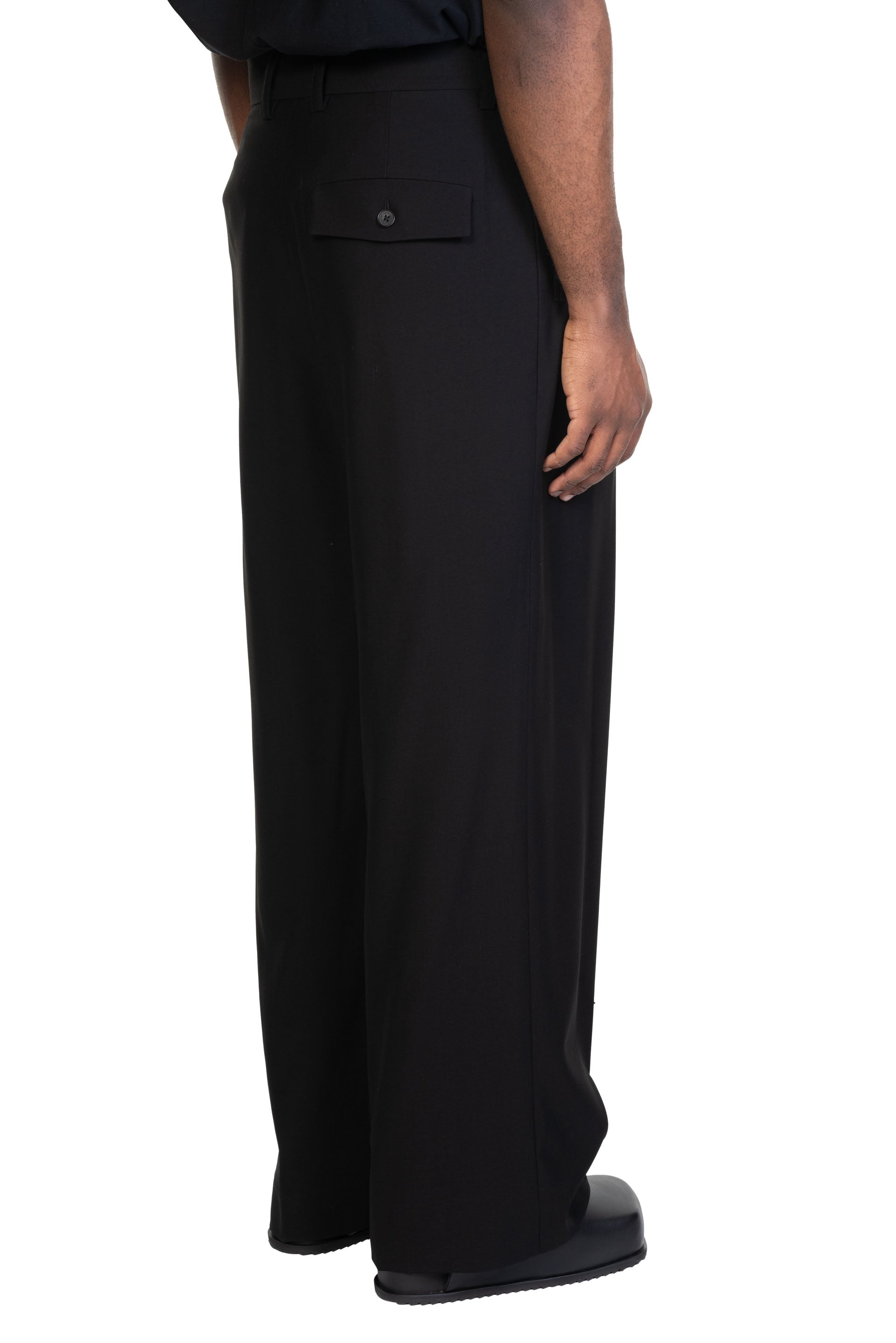 Feng Chen Wang Deconstructed black trousers. Button closure at waist. Two side pockets. Pleated at front.
