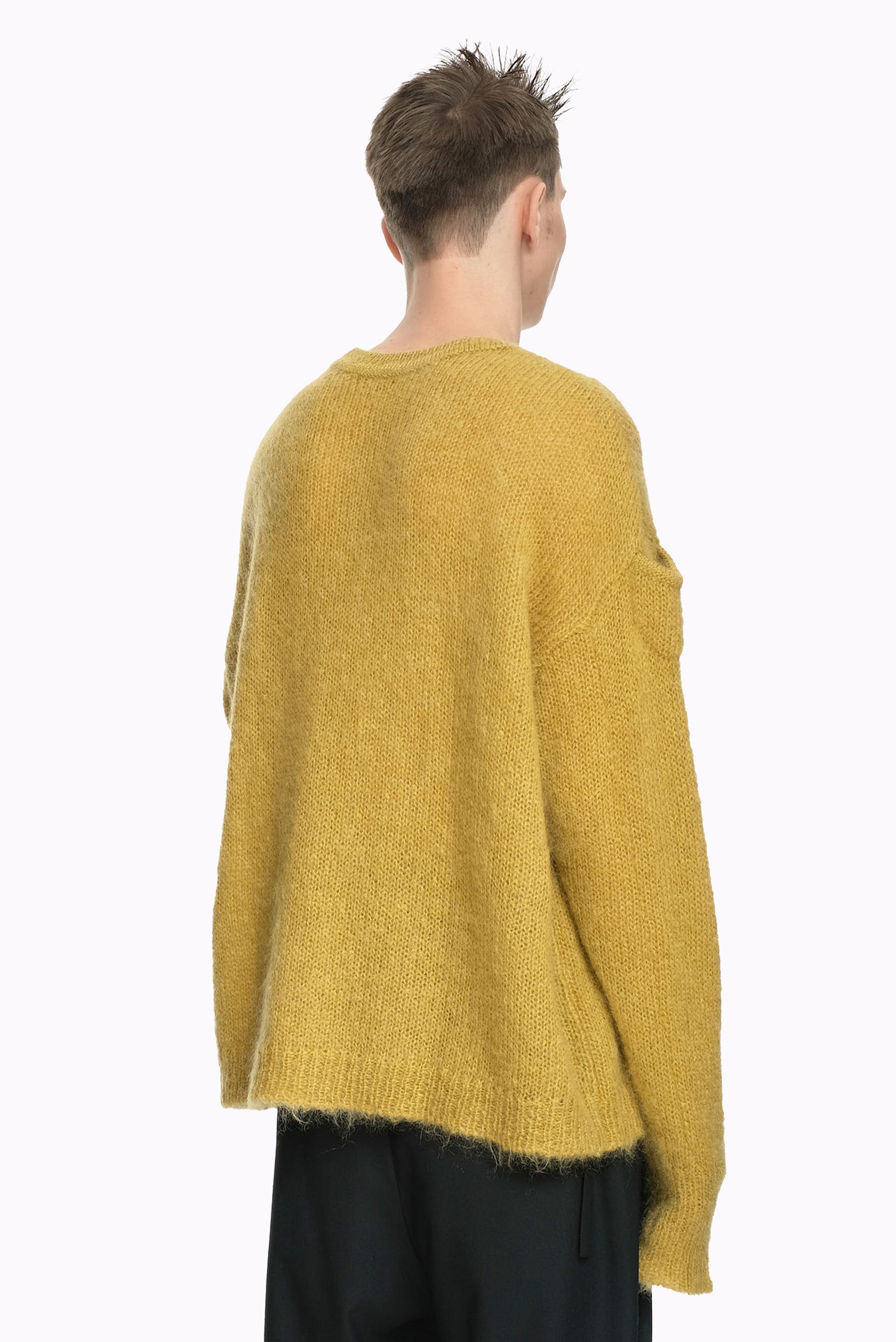 Joe chia is built immensely around exceptional construction, fine fabrications and precise tailoring, entwining classicism with contemporary references that stand the test of time, challenging and reimagining duality with innovation and a sense of audacity as you can see in the Dip Knitted Sweater Amber.