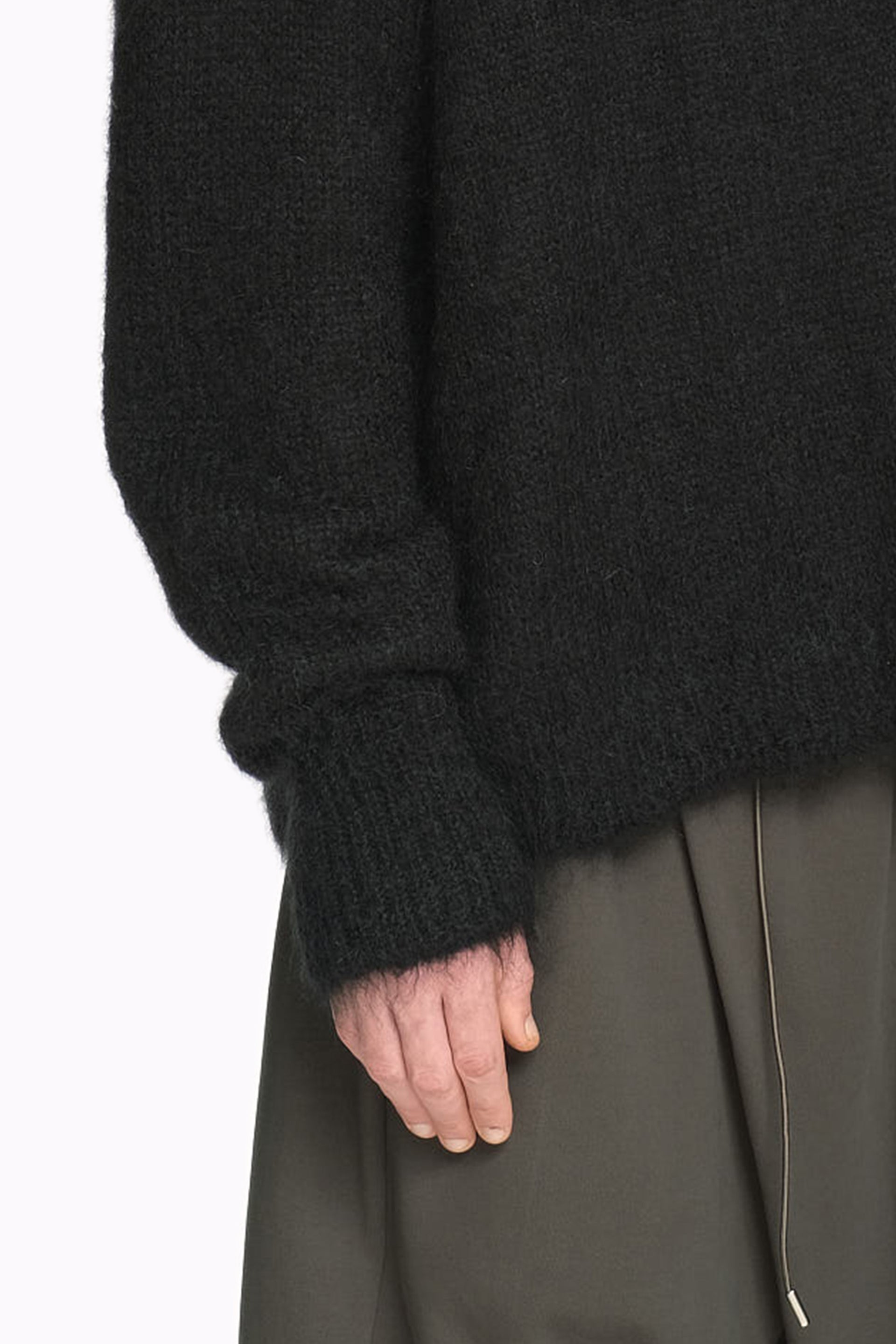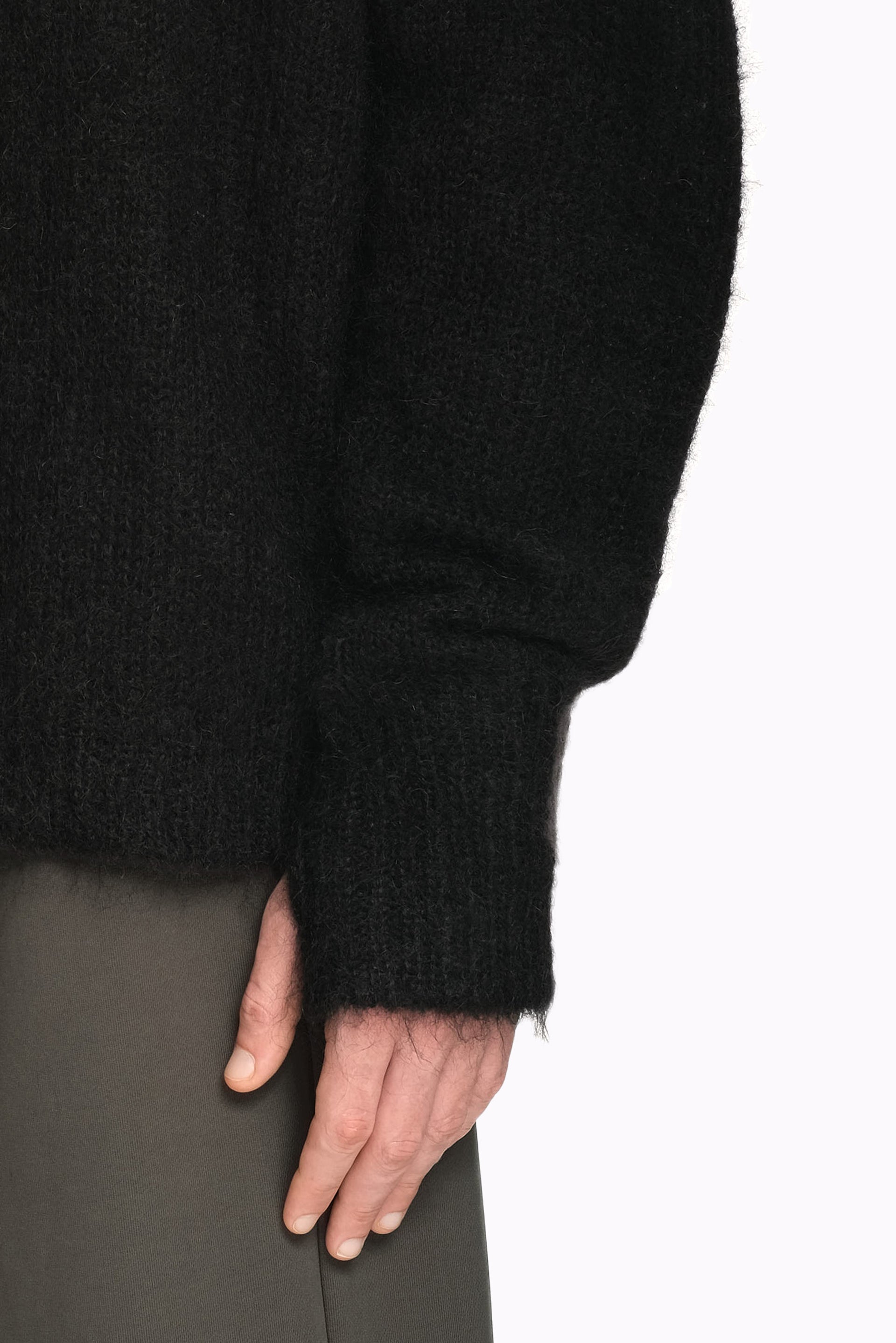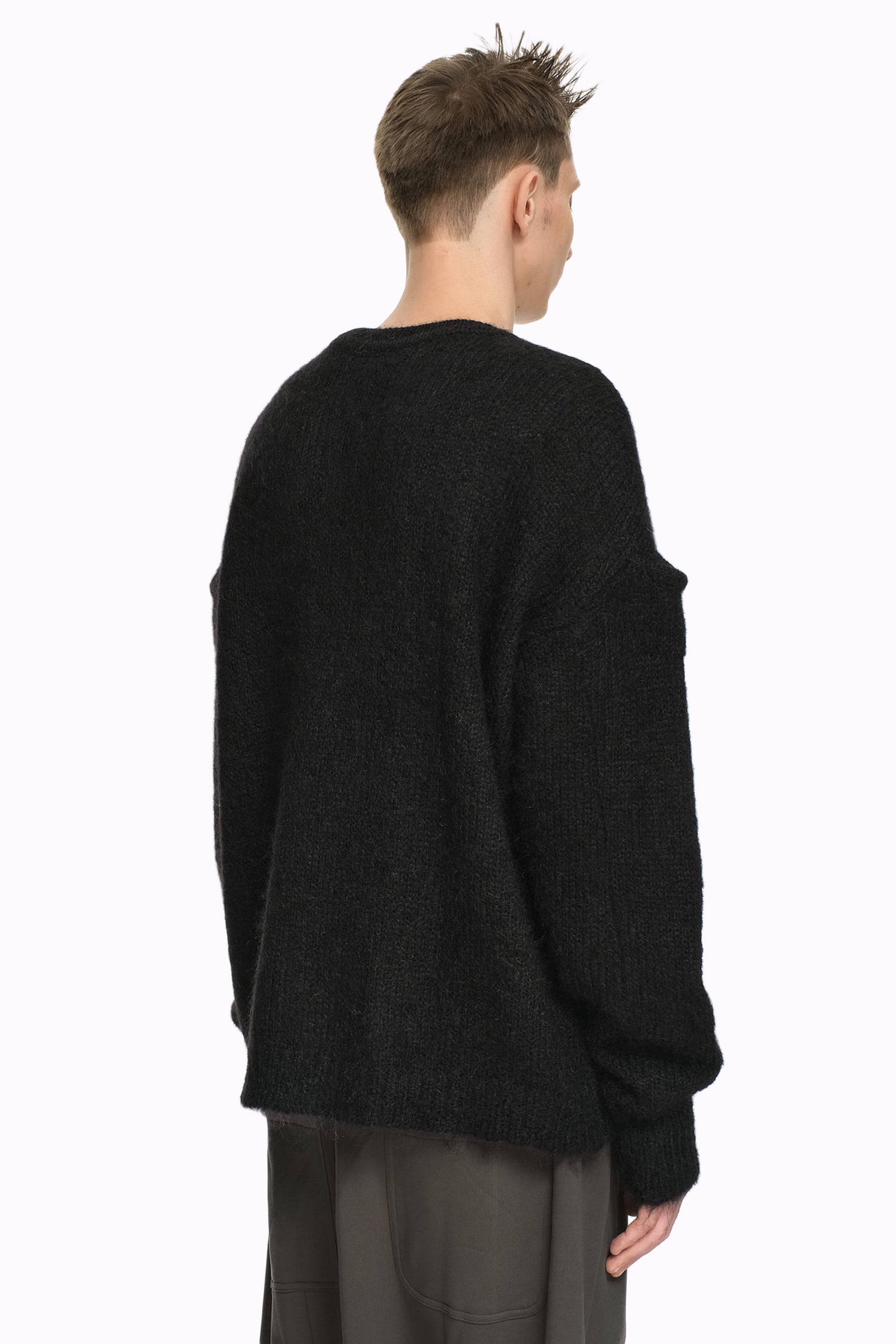 Joe chia is built immensely around exceptional construction, fine fabrications and precise tailoring, entwining classicism with contemporary references that stand the test of time, challenging and reimagining duality with innovation and a sense of audacity as you can see in the Dip Knitted Sweater Black.