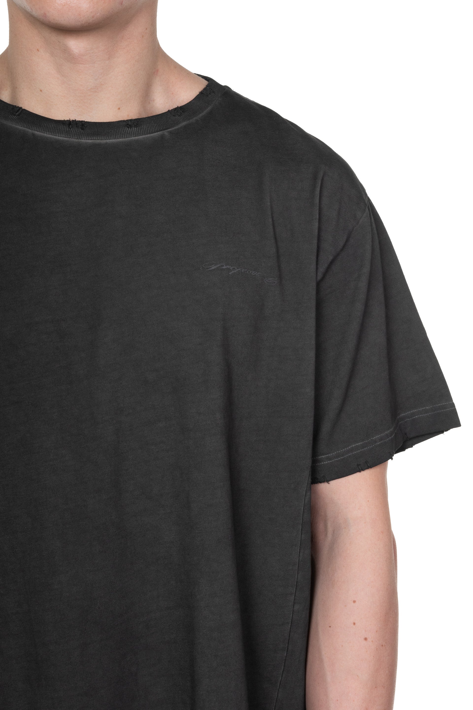 Professor. E "Dirt" T-shirt 2.0 Cold Dyed Grey. Short sleeves. Round neck. Grey dye colour. Regular fit. Distressed details throughout. Logo embroidery at chest.