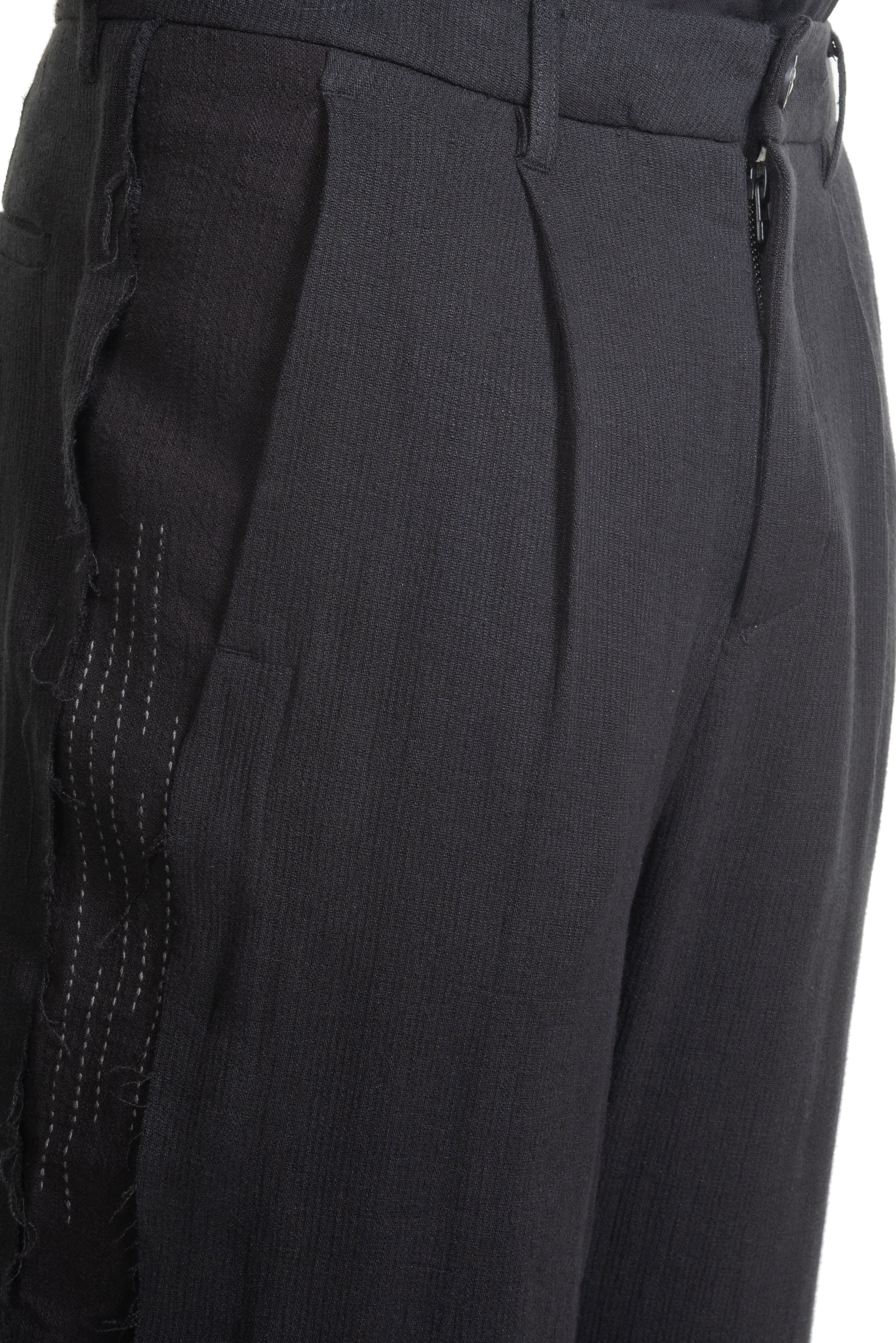 Professor. E understands the time of aesthetics from the use of cotton, hemp and wool. Fabric stitching, patching, designs without edge trimming, deconstruction, and reproduction are all Professor. E's signature elements creating classic immortal designs that can be viewed with the Distressed E Pants Black.