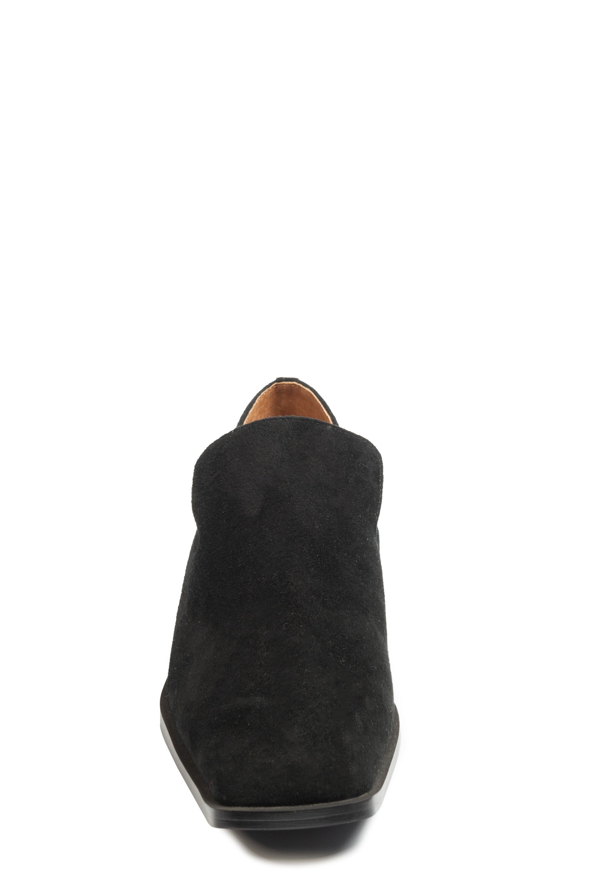 Slip on. Very soft doeskin leather. Rubber sole. Small heel at back.