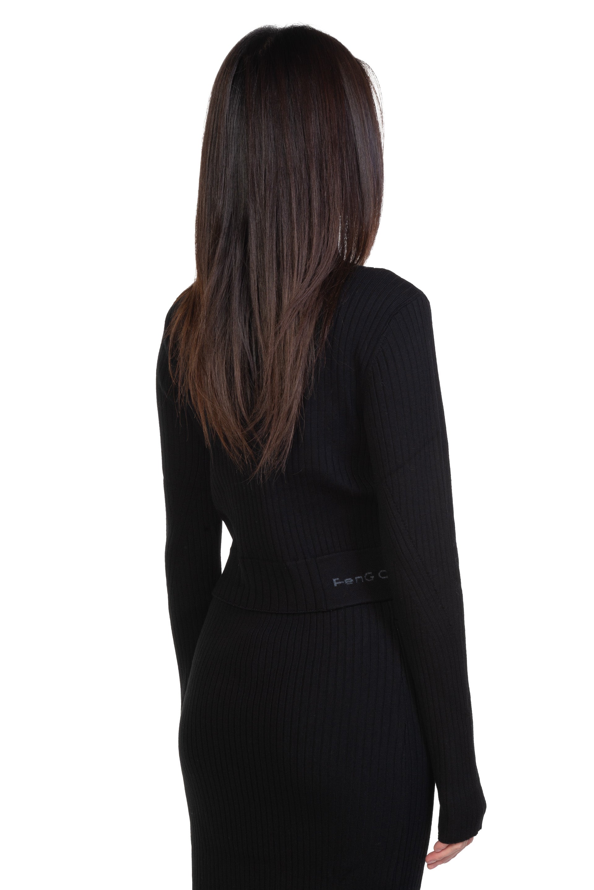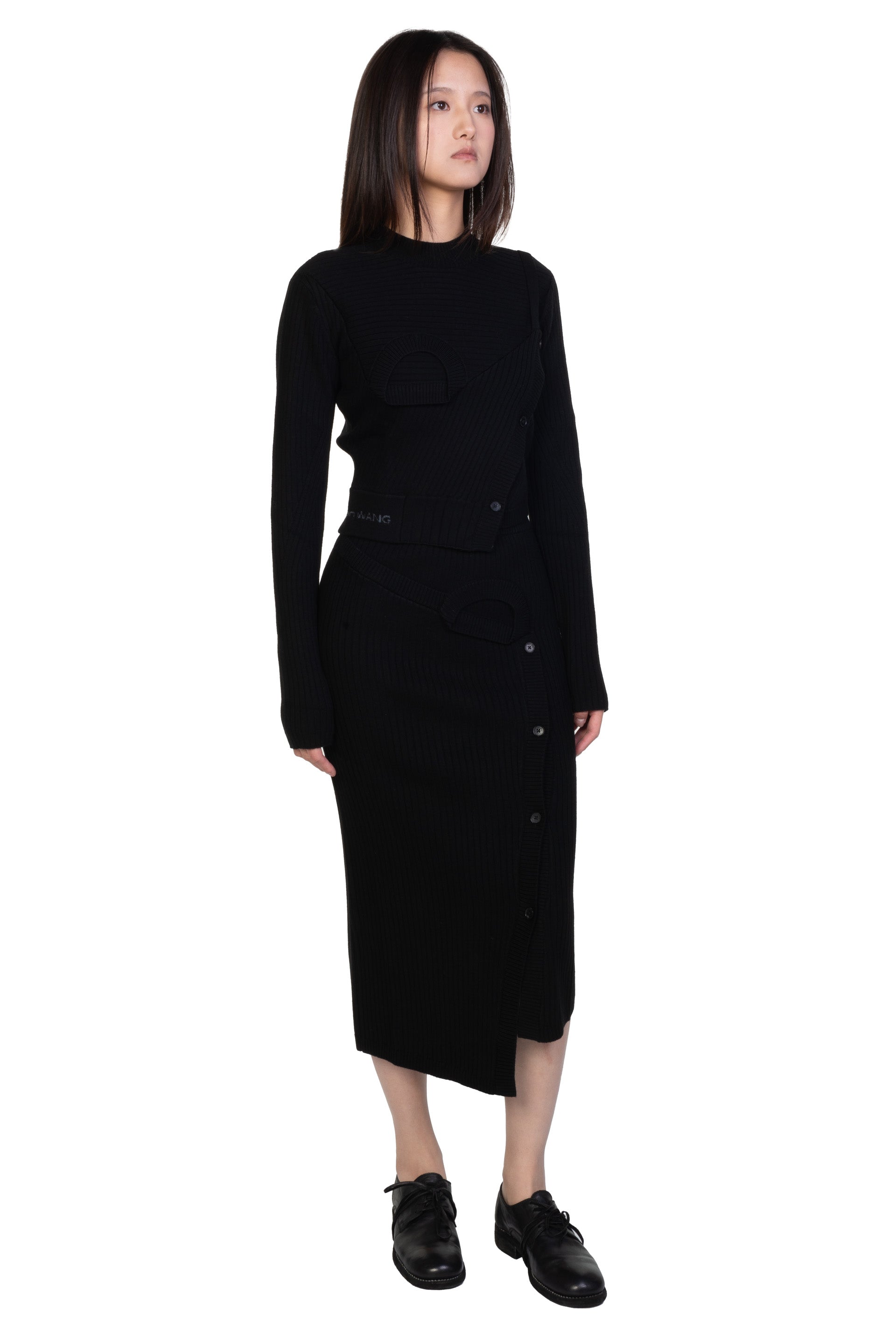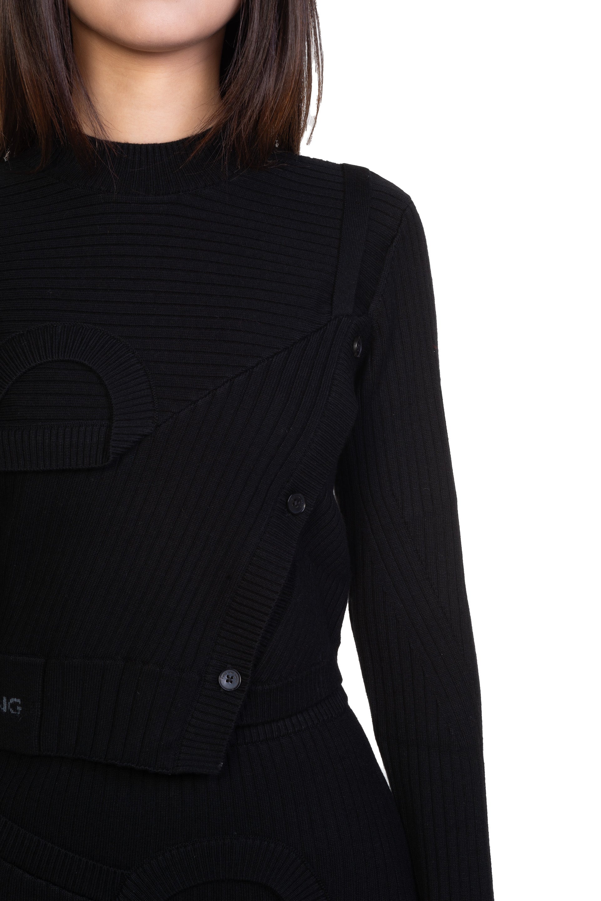 Feng Chen Wang 2 in 1 sweater. Long sleeves. Round neck. Deconstructed collar details.
