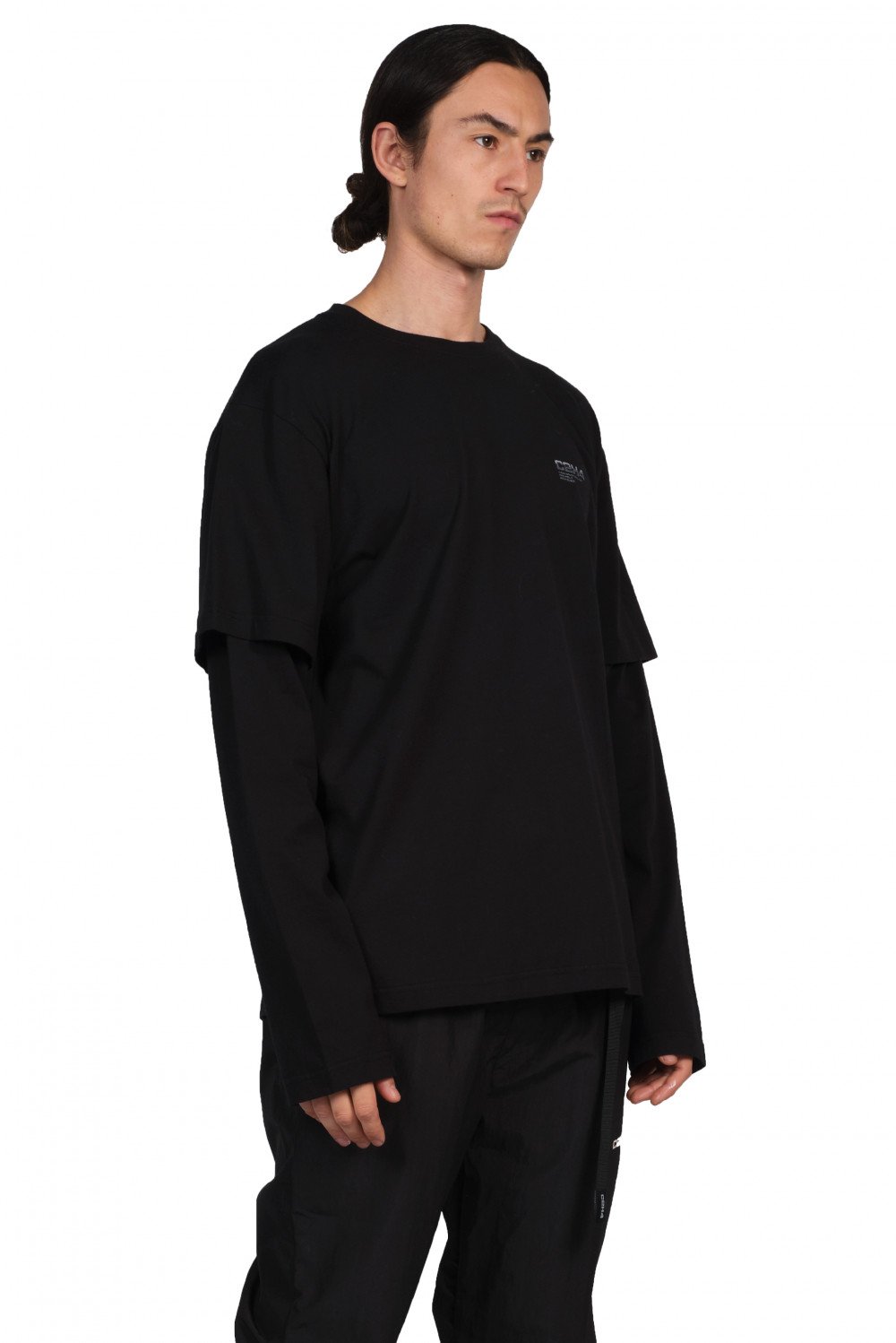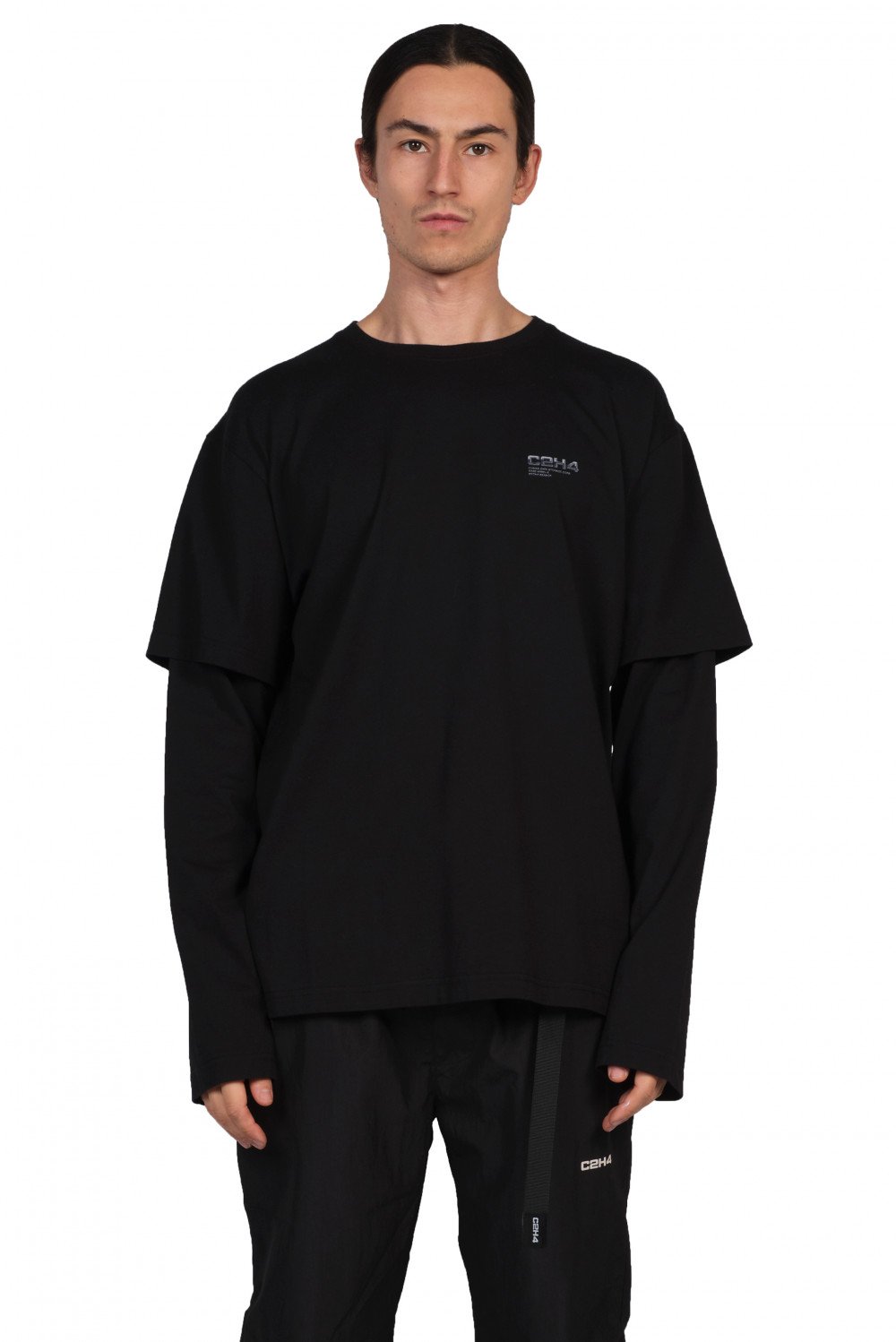 C2H4 concept ranges from hypothetical space scientists producing sport and streetwear-inspired designs creating an intergalactic underground culture. Using her studio as a laboratory, Chen’s meticulously elevates wardrobe cornerstones as seen with the Double Layered Long-sleeve T-shirt