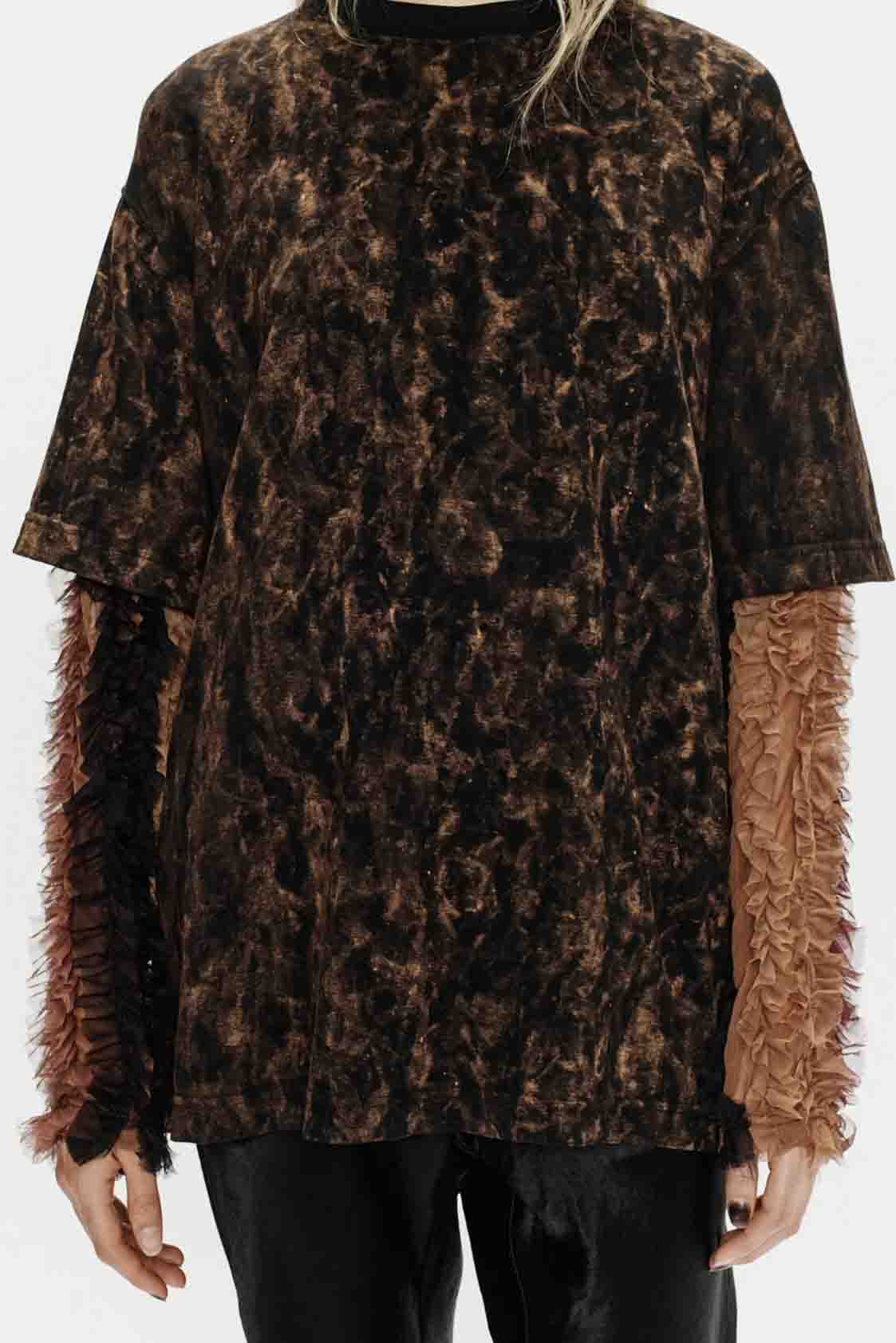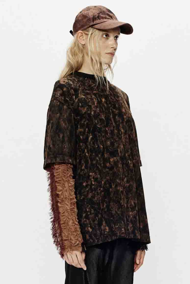 Song for the Mute standard fit tee in a tie-dyed cotton jersey. Long sleeves. Featuring double-layer effect nylon chiffon sleeves.