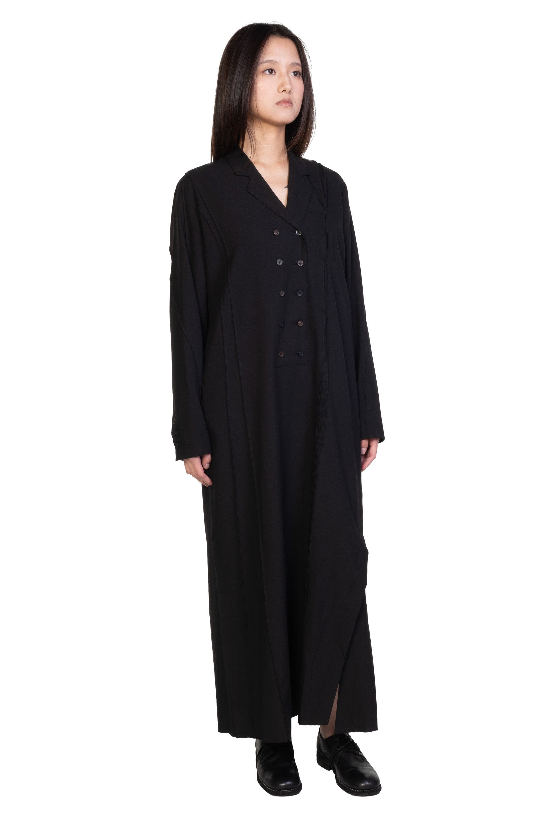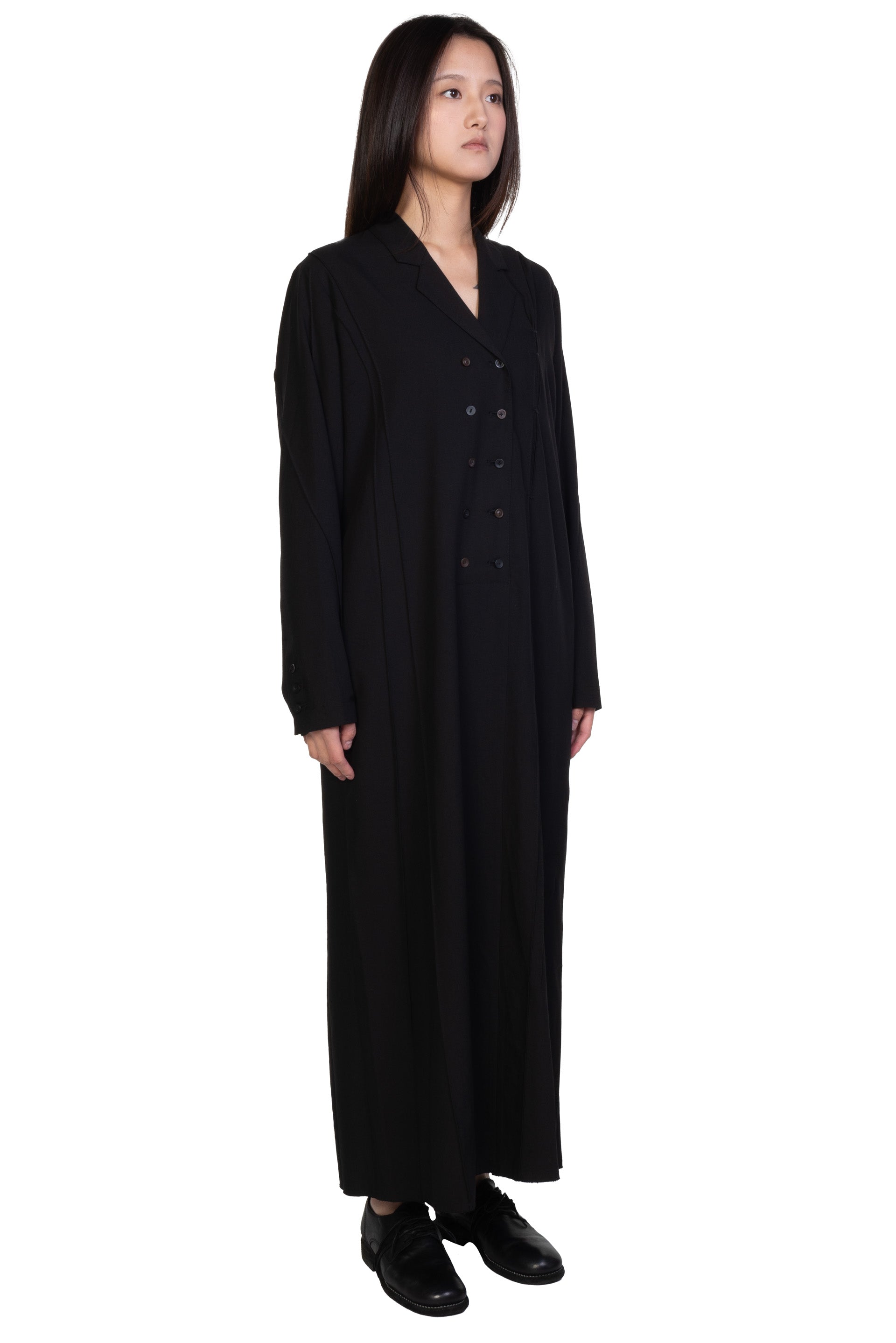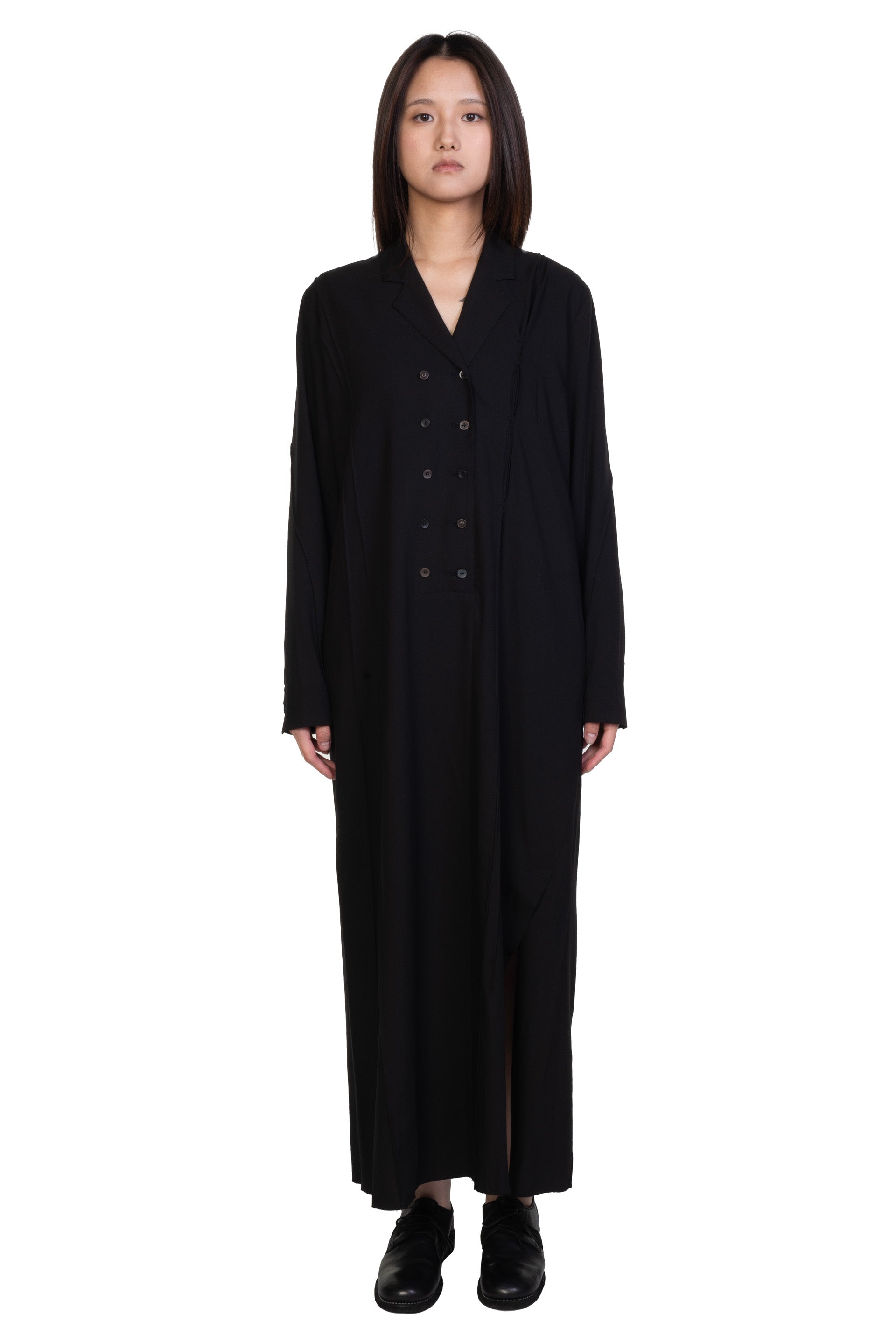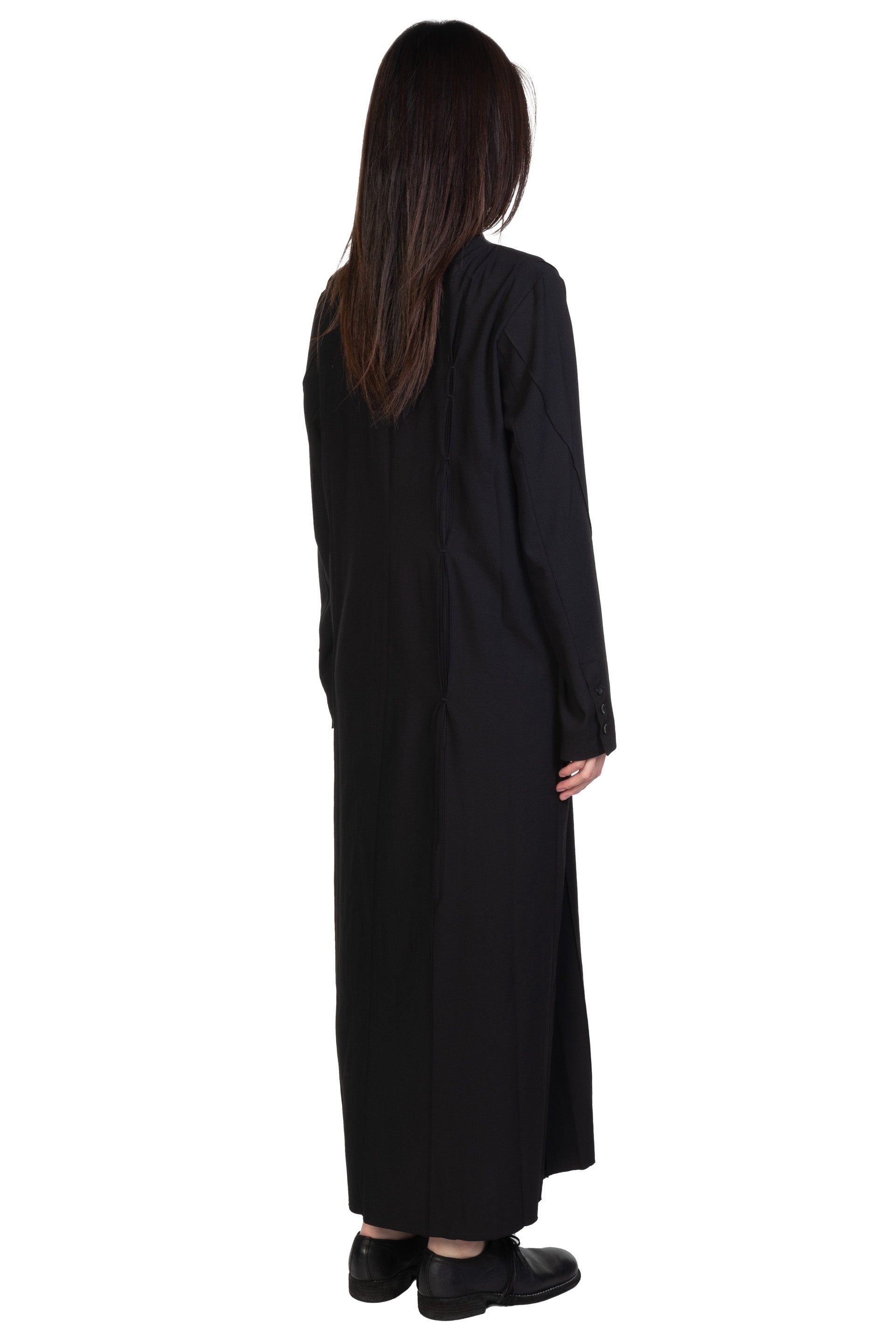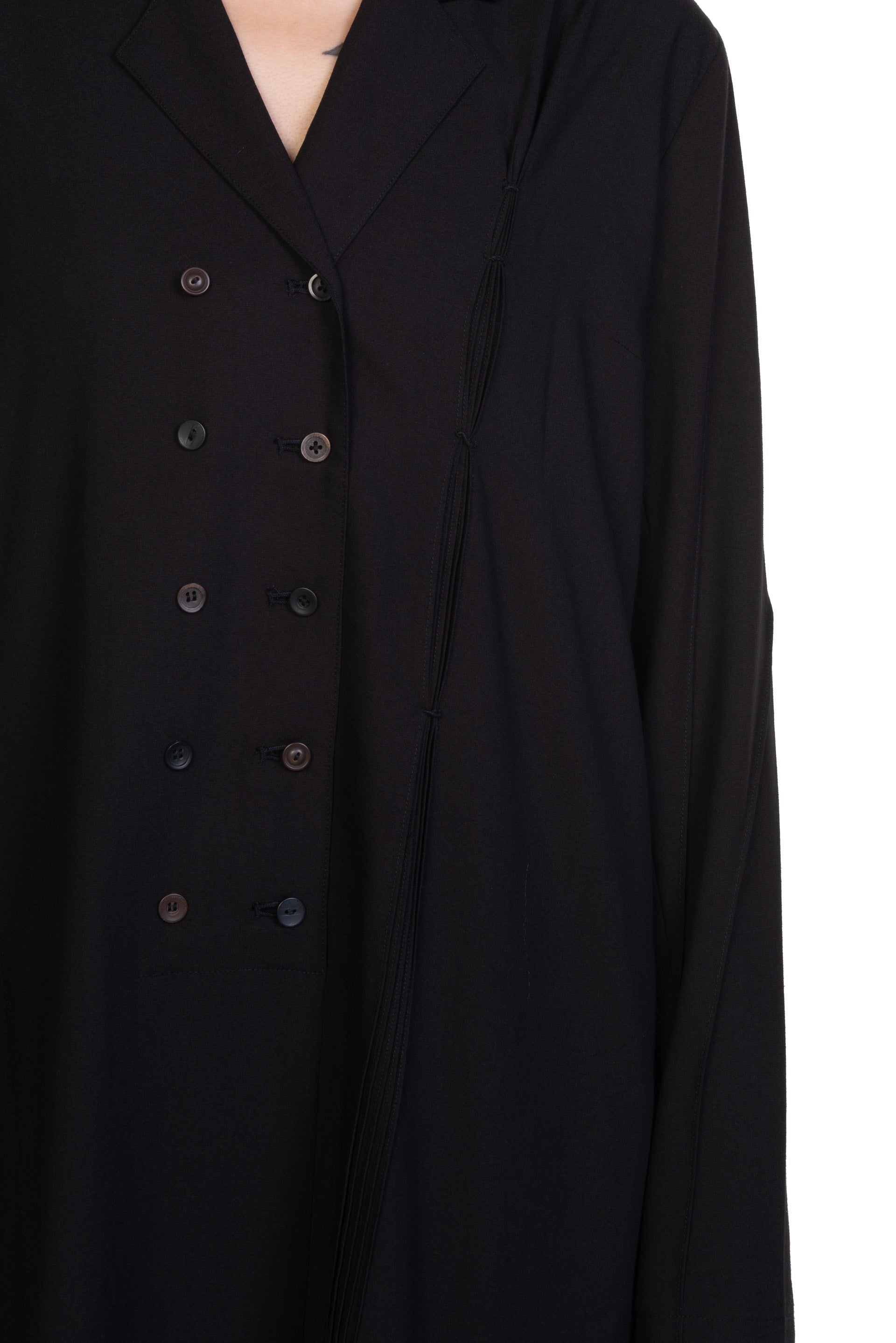 Professor. E understands the time of aesthetics from the use of cotton, hemp and wool. Fabric stitching, patching, designs without edge trimming, deconstruction, and reproduction are all Professor. E's signature elements creating classic immortal designs that can be viewed with the Double Shirt Dress Black.