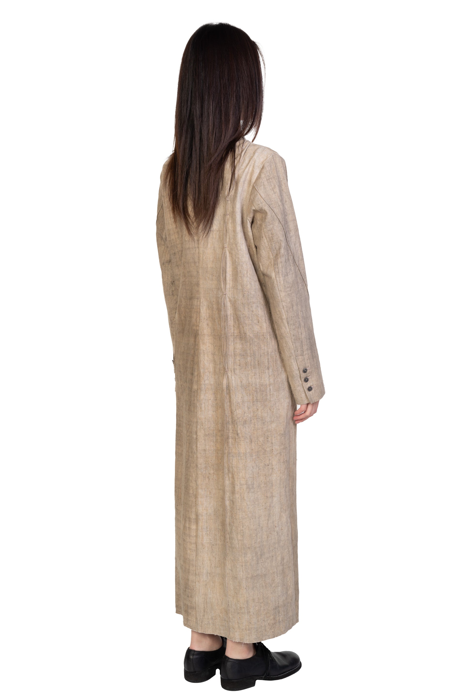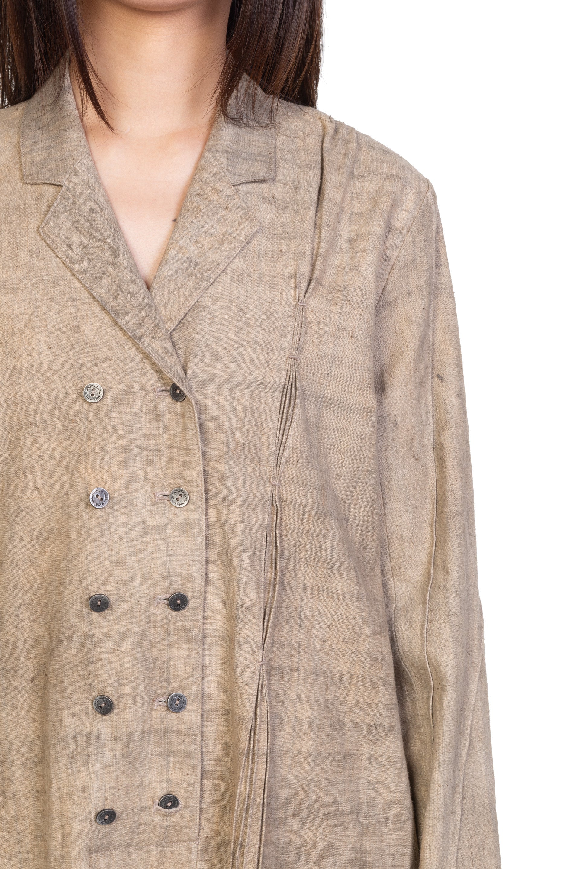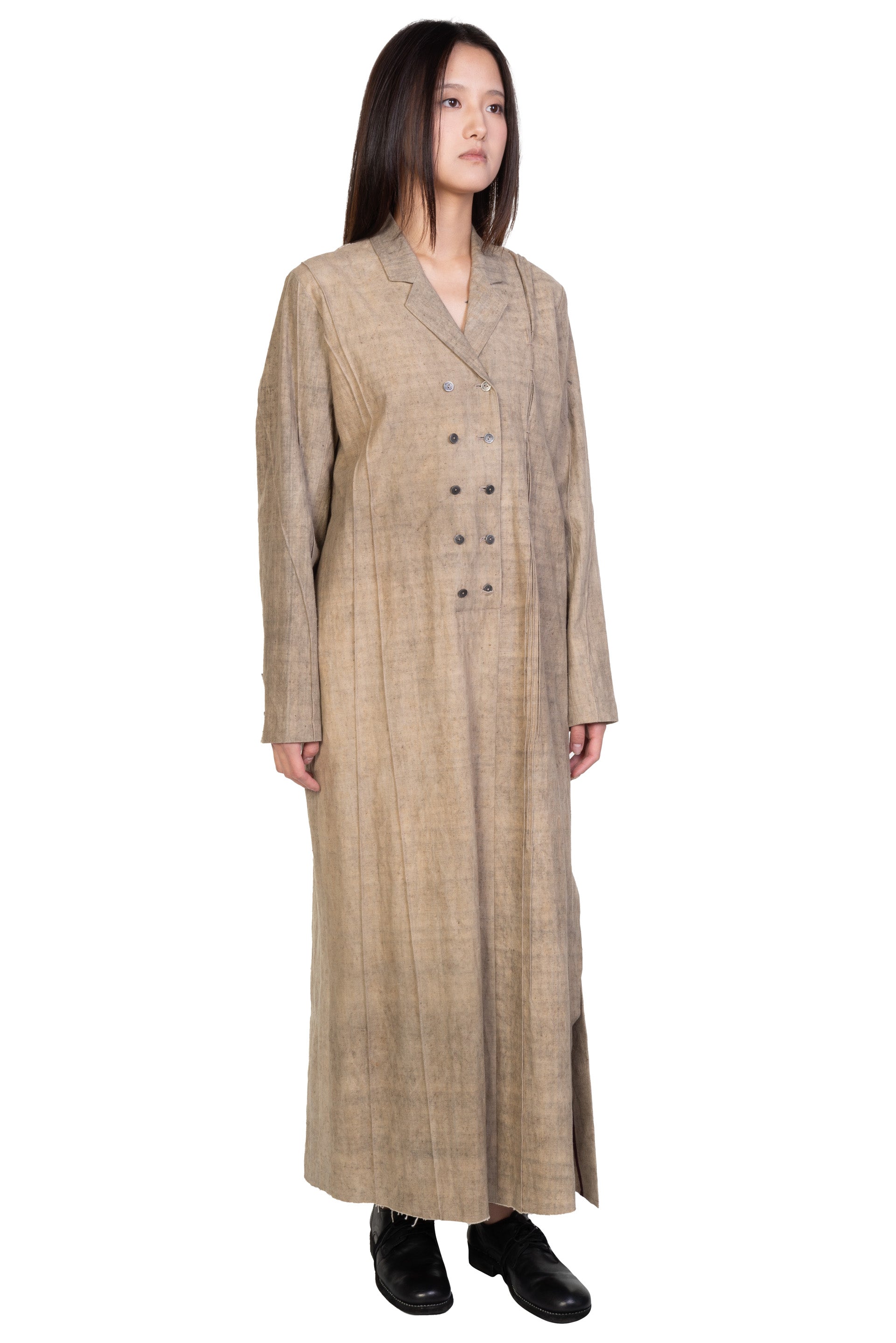 Professor. E understands the time of aesthetics from the use of cotton, hemp and wool. Fabric stitching, patching, designs without edge trimming, deconstruction, and reproduction are all Professor. E's signature elements creating classic immortal designs that can be viewed with the Double Shirt Dress Natural Beige.