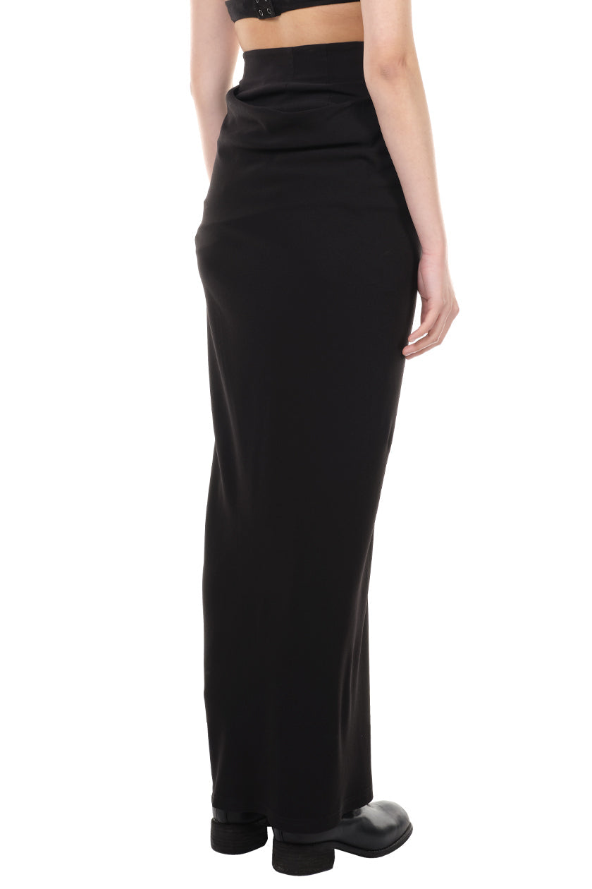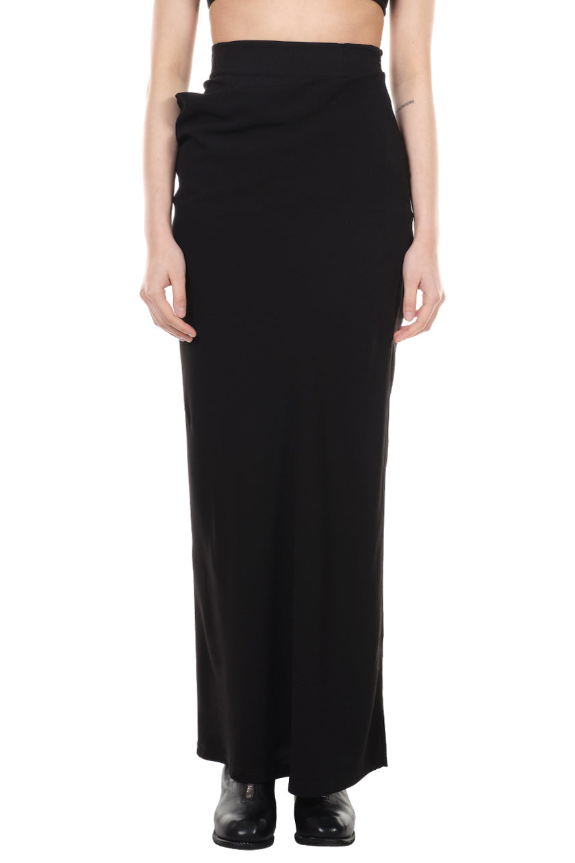 OUDE WAAG strikes a balance between Asian aesthetics and Western cutting. It is at the heart of designer’s philosophy: celebrating the power of women, yet simultaneously critiquing the ongoing objectification and idealisation of the body as you can see in the Draped Double Layer Slim Skirt from Oude Waag. Short skirt with longer draped layer. Zip closure on side. Soft stretchy fabric. Slit on side. Pocket a back. Slim fit.