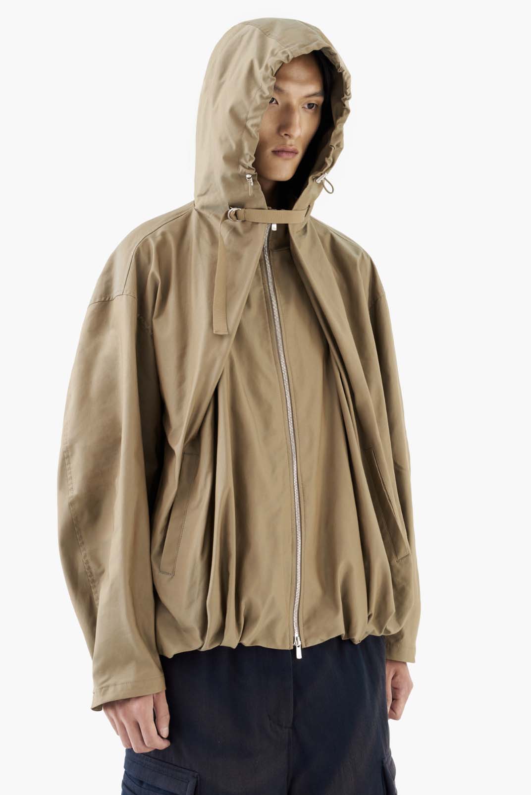 Draped Volume Hood Jacket