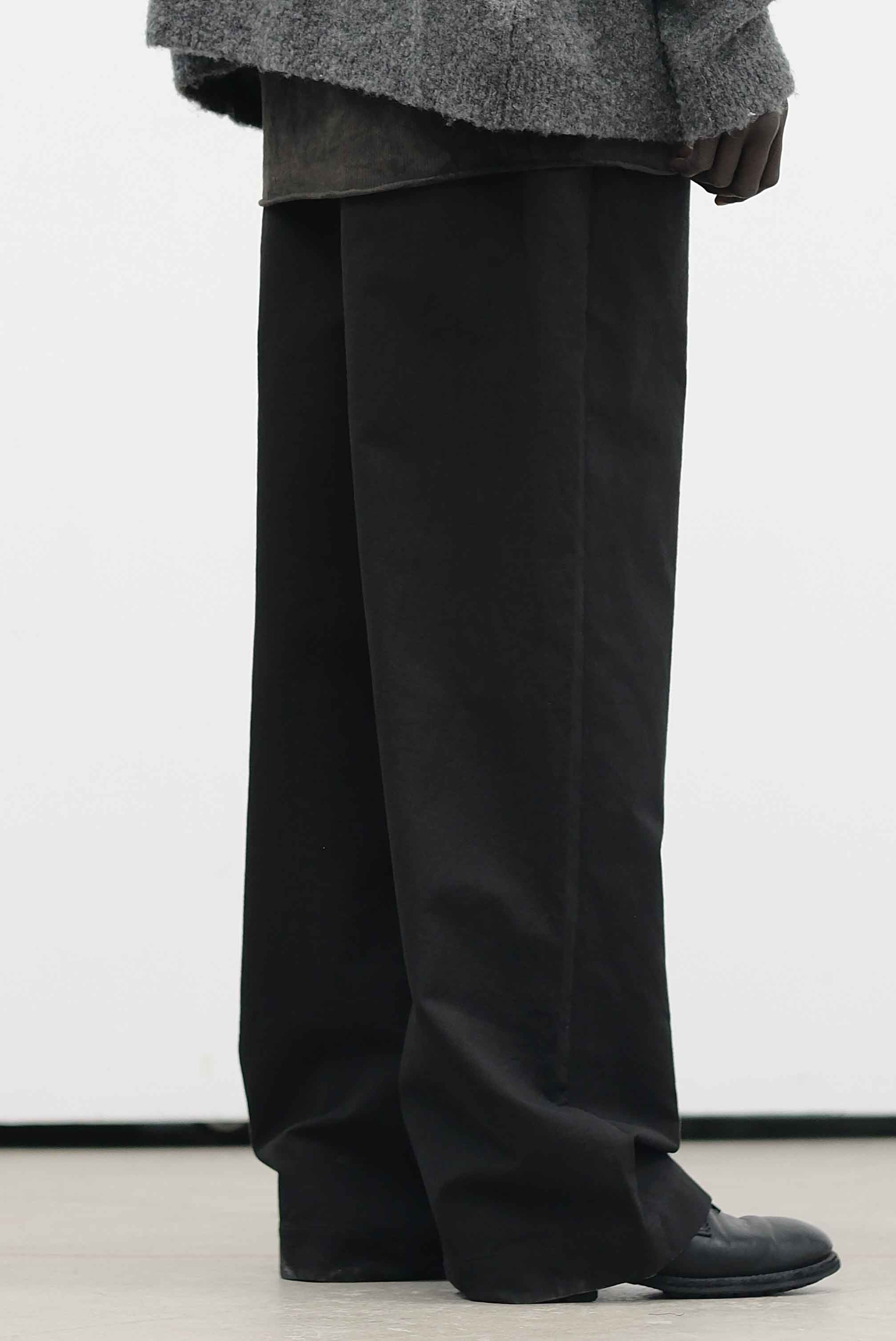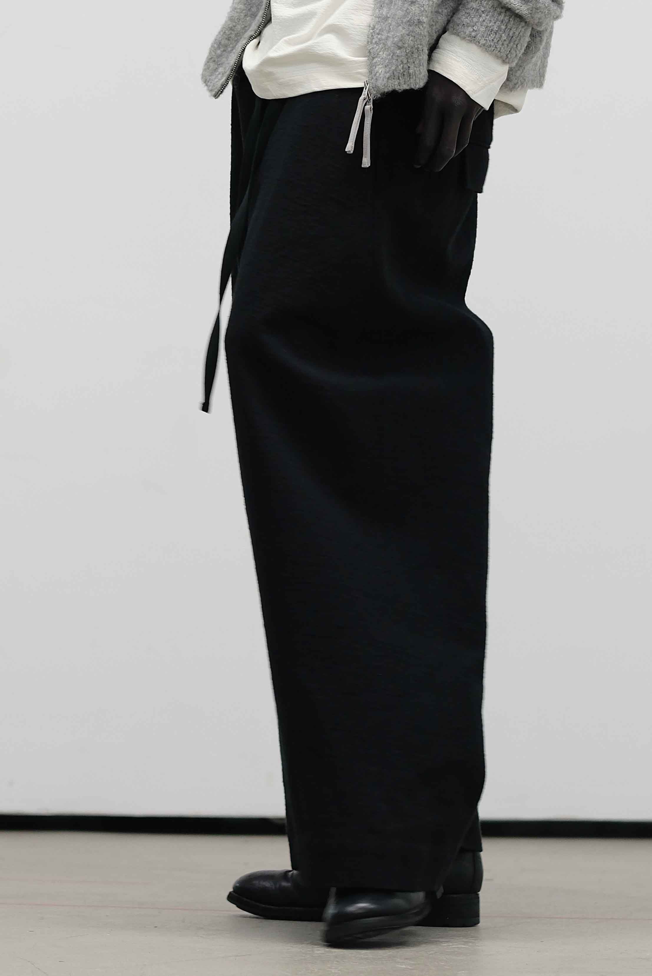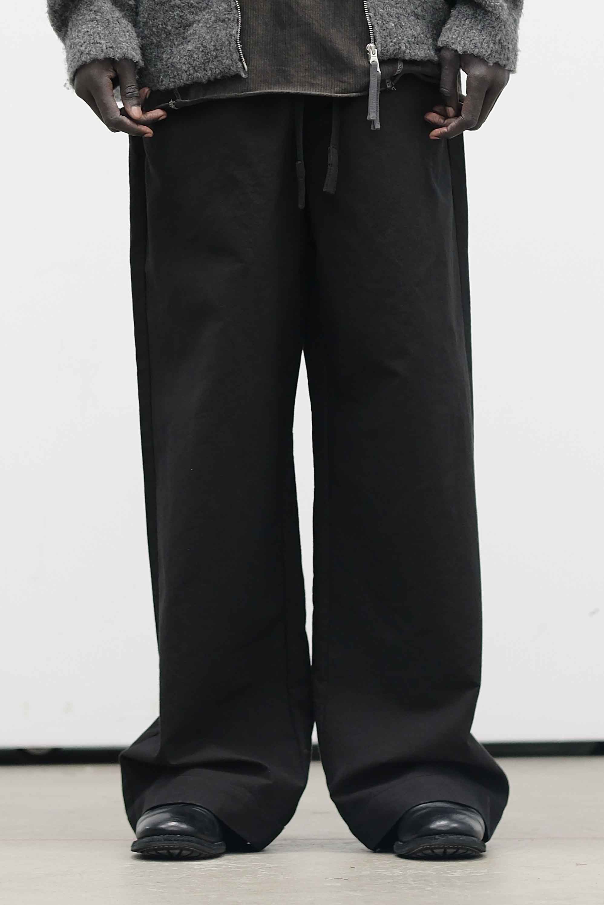 ATTEMPT reconstructs different styles and elements to create a new aesthetic system. By taking a more experimental approach to creation and production, which involves an understanding of the past and the current form of society, Attempt is creating an aesthetic form that is anchored in the present but different from it. It must ultimately be a product that cannot be defined as seen with the Drawstring Straight Trousers Black.
