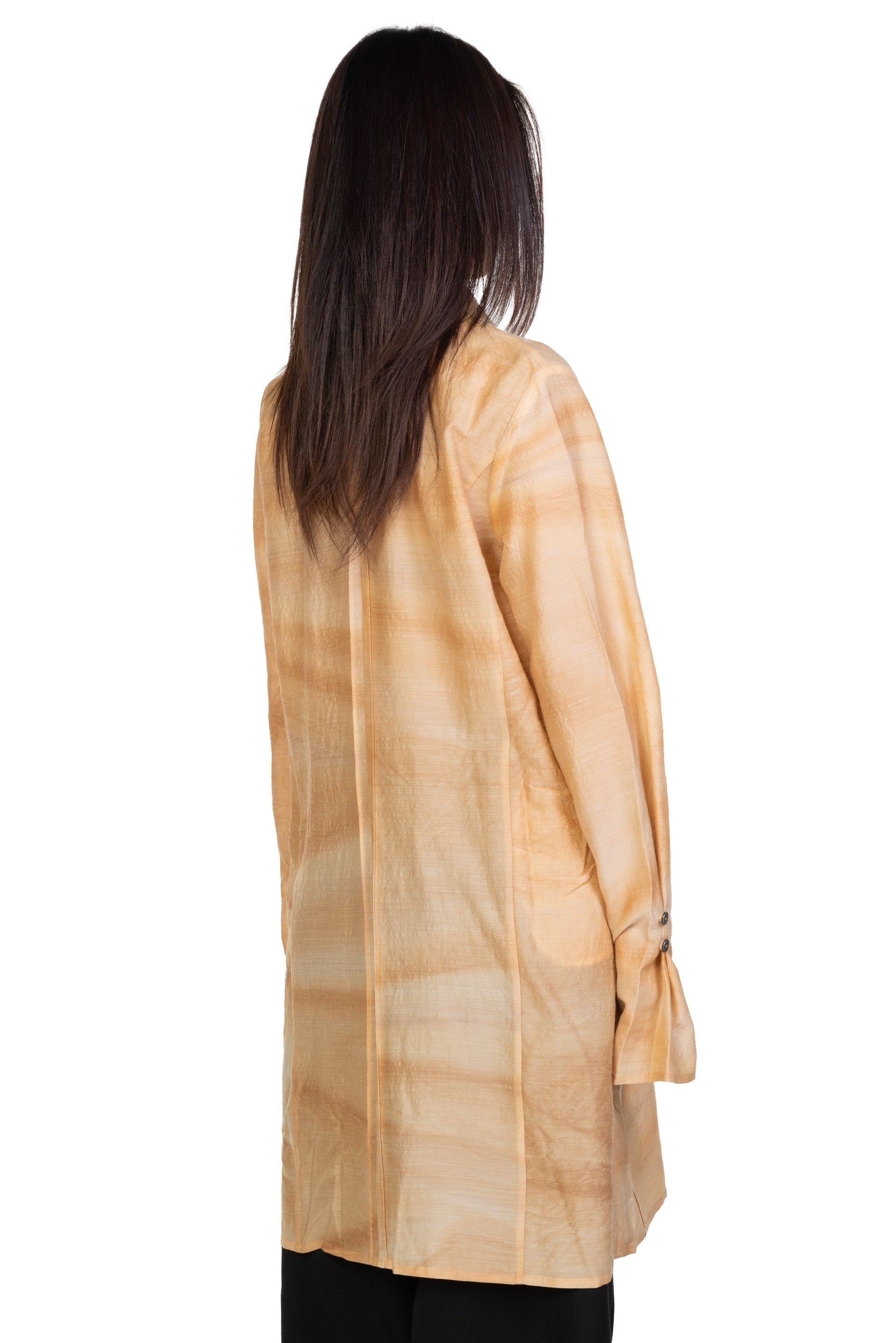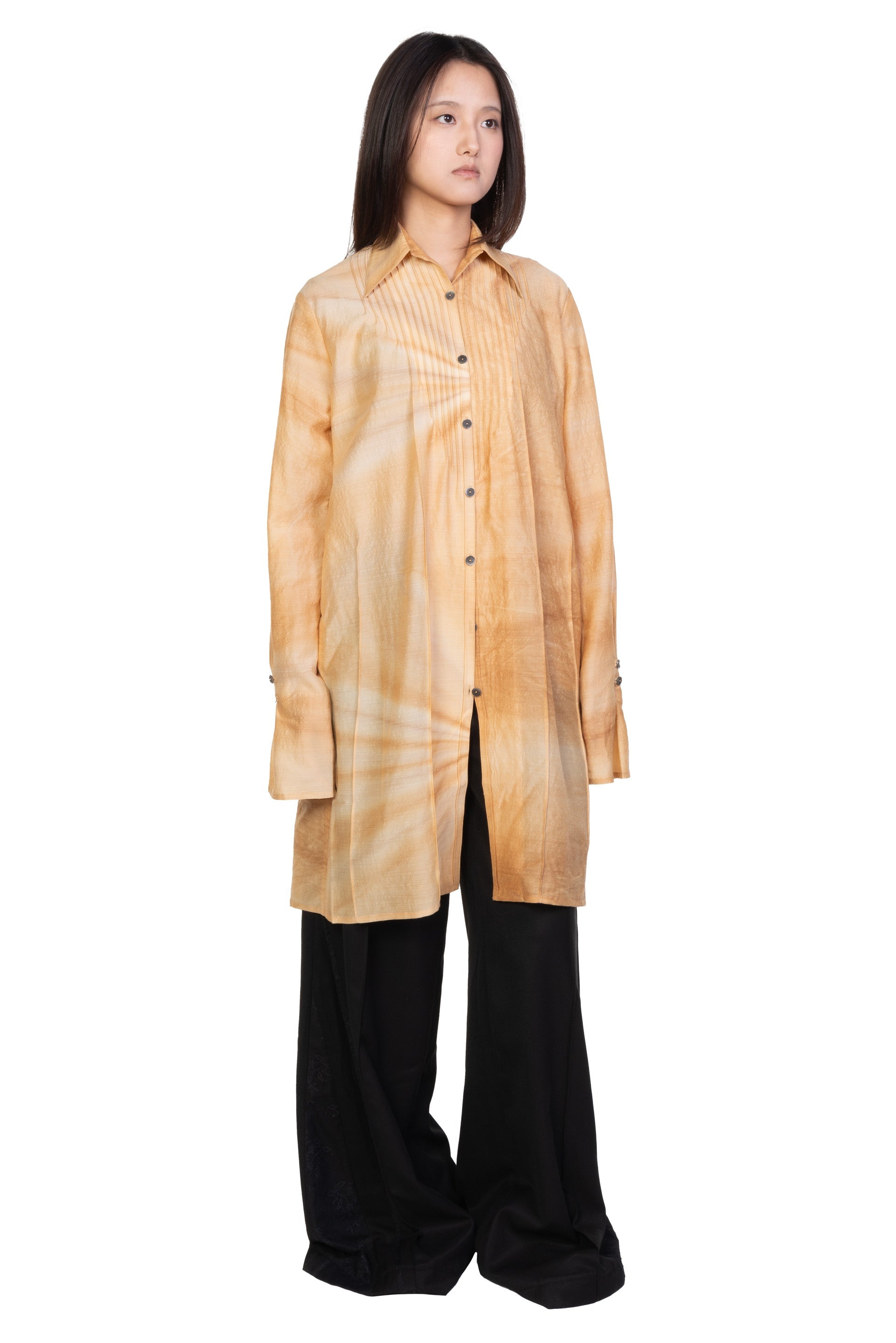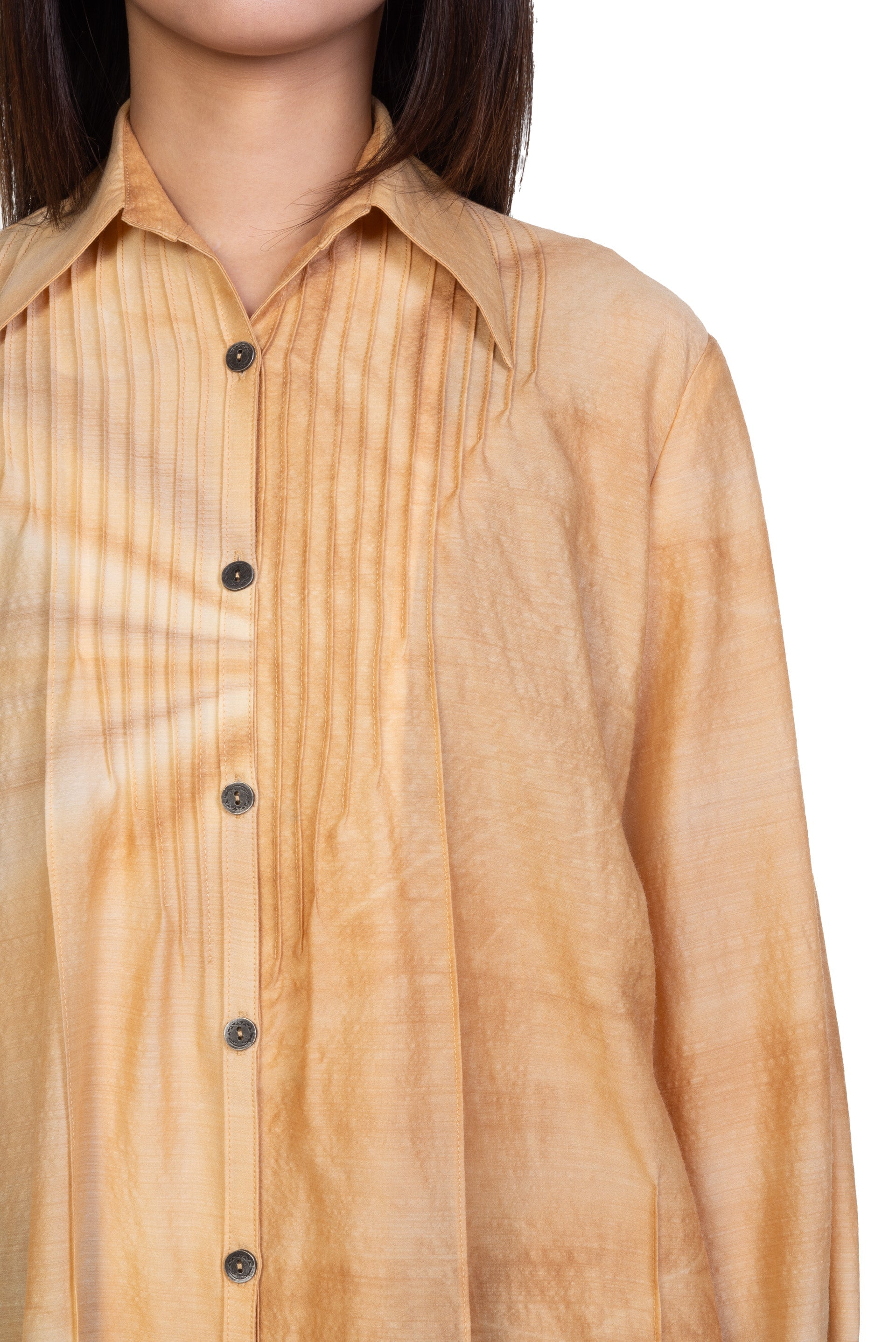 Professor. E Dress Tunic Rust Dye. Long sleeves. Button closure at front. Button at cuffs. Pleated details at back and front.