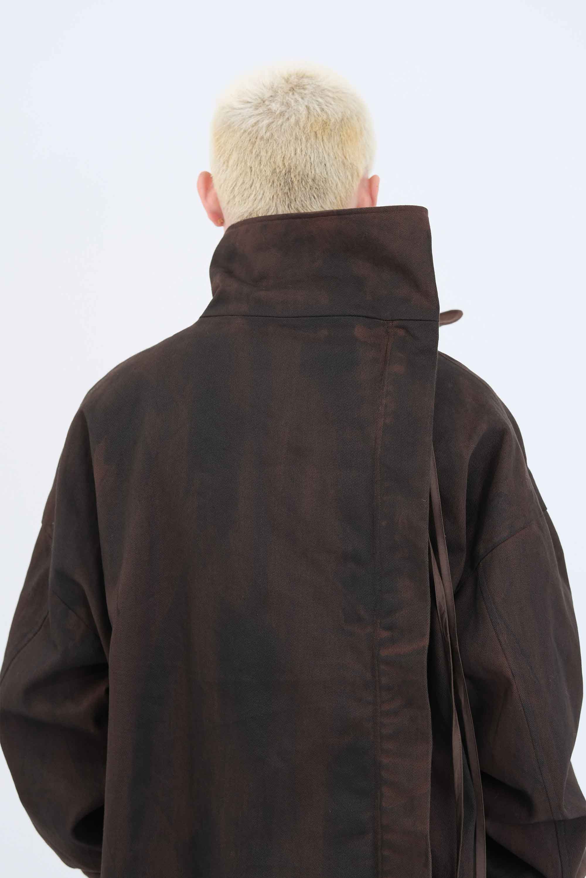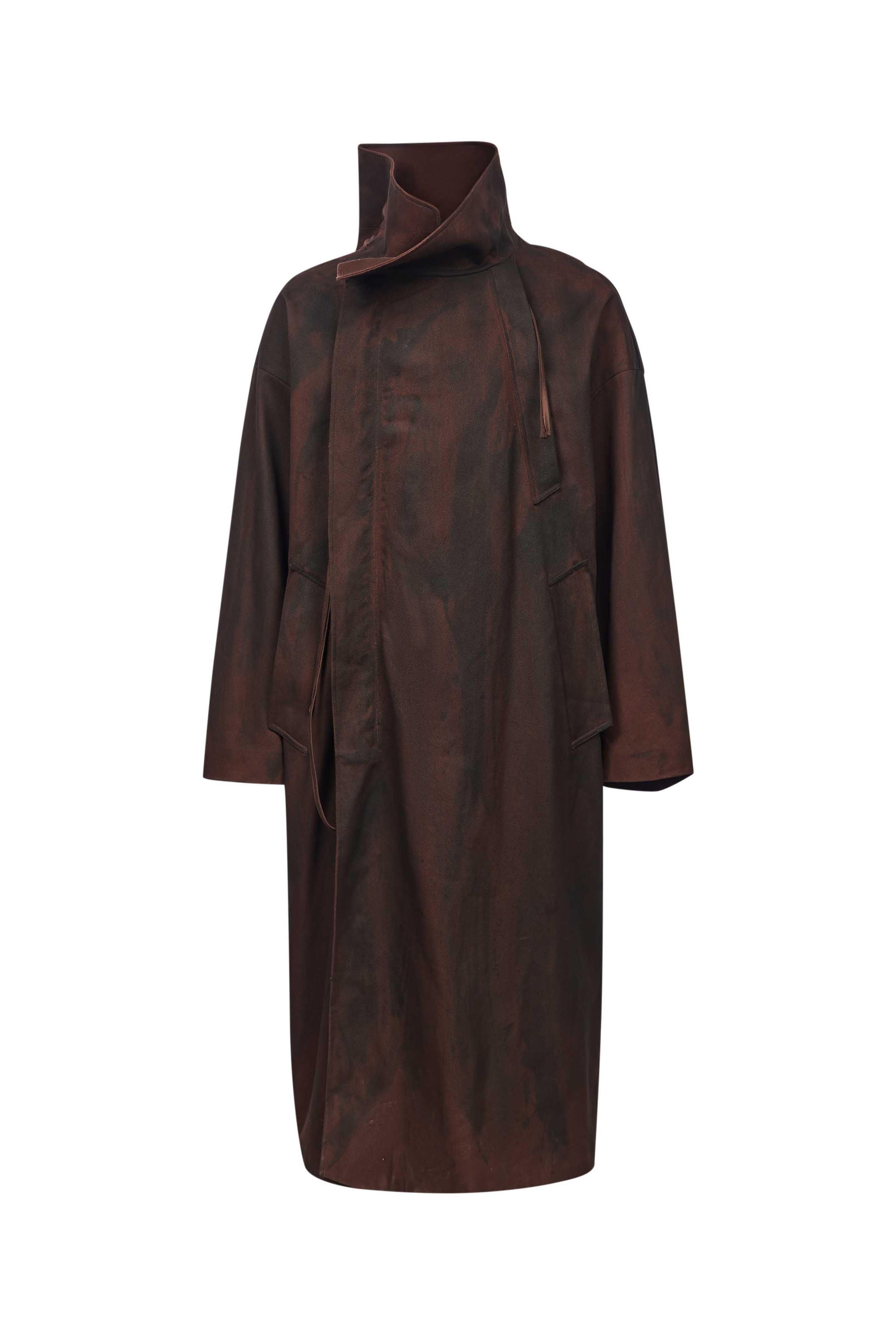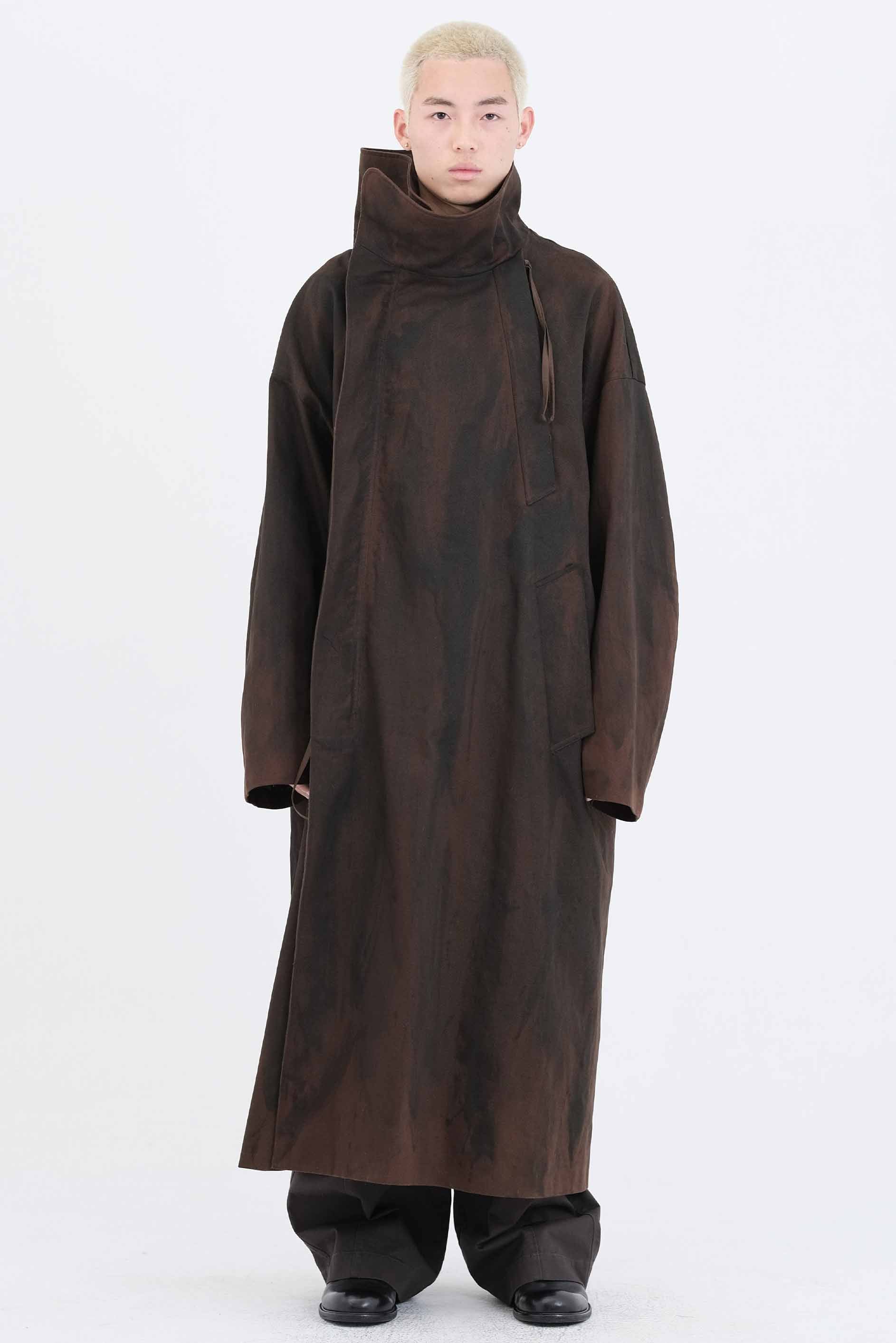 ATTEMPT reconstructs different styles and elements to create a new aesthetic system. By taking a more experimental approach to creation and production, which involves an understanding of the past and the current form of society, Attempt is creating an aesthetic form that is anchored in the present but different from it. It must ultimately be a product that cannot be defined as seen with the Dyed Long Coat Red Brown.