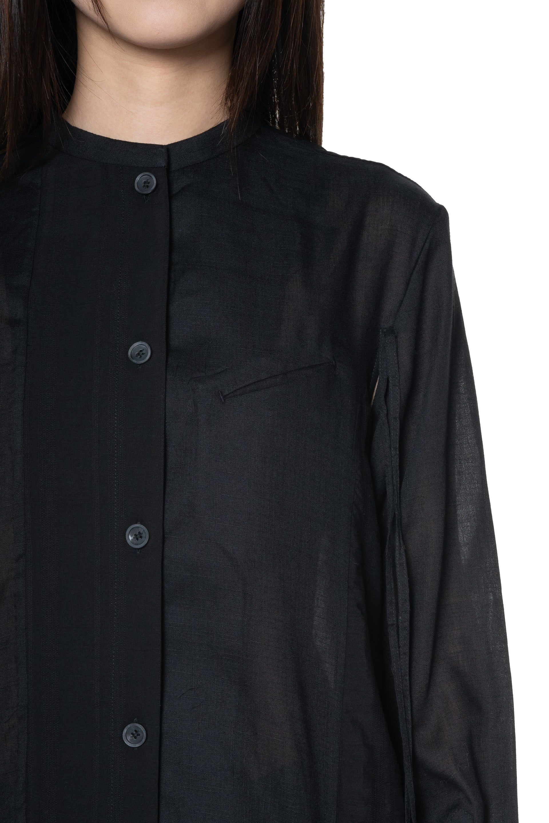 Professor. E E Long Shirt. Long sleeves. Button closure at front. Button closure at cuffs. Plastron details at front. Strings details throughout. Round collar.
