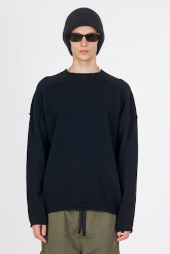 Isabel Benenato is committed to sustainability and makes every effort to minimise its environmental footprint. All of the collection are manufactured in Italy with the intention to save and support her local community. Her design is based on an imperfect perfection that encompasses the human being itself as seen with Eco Cashmere Sweater External Stitches Black.