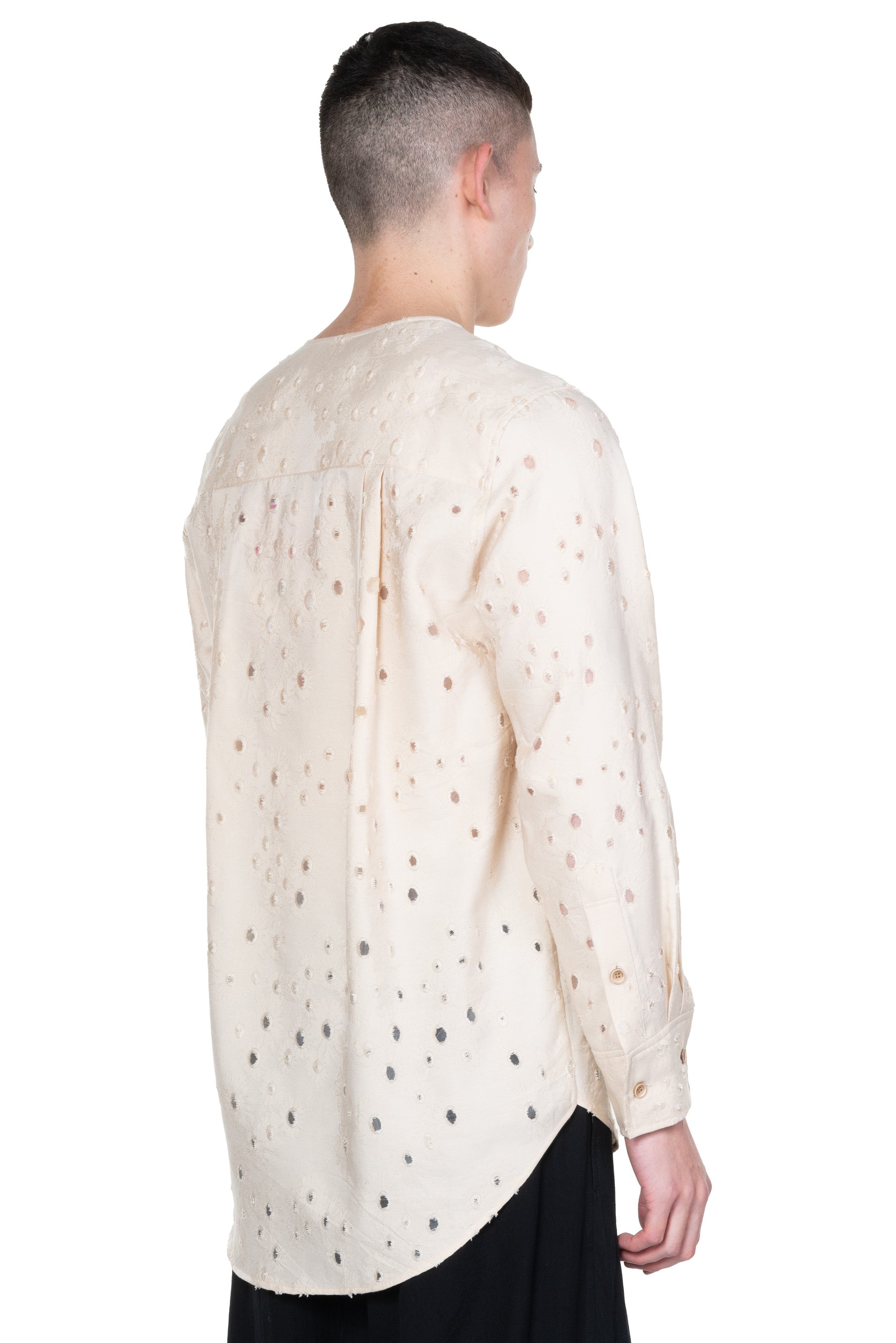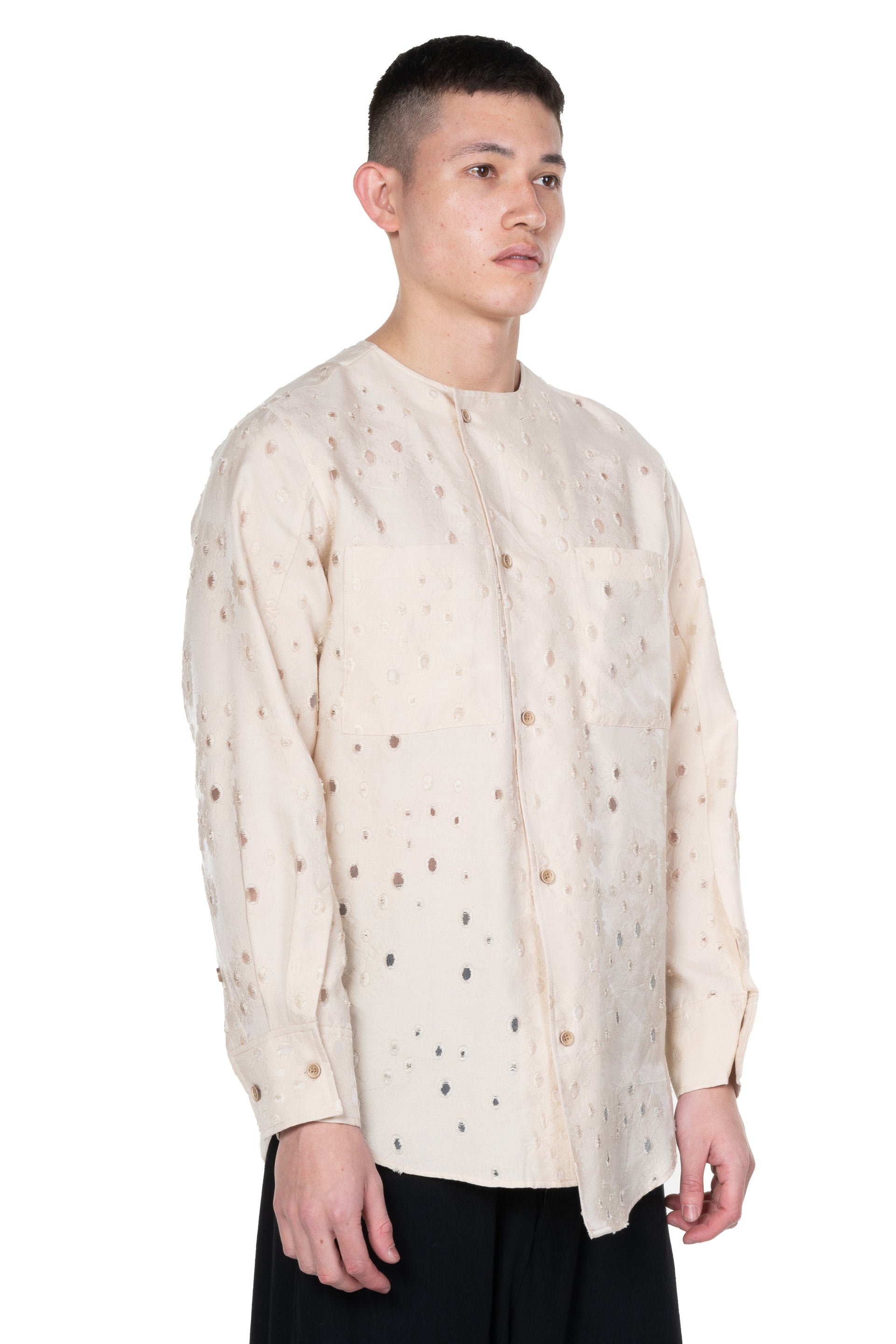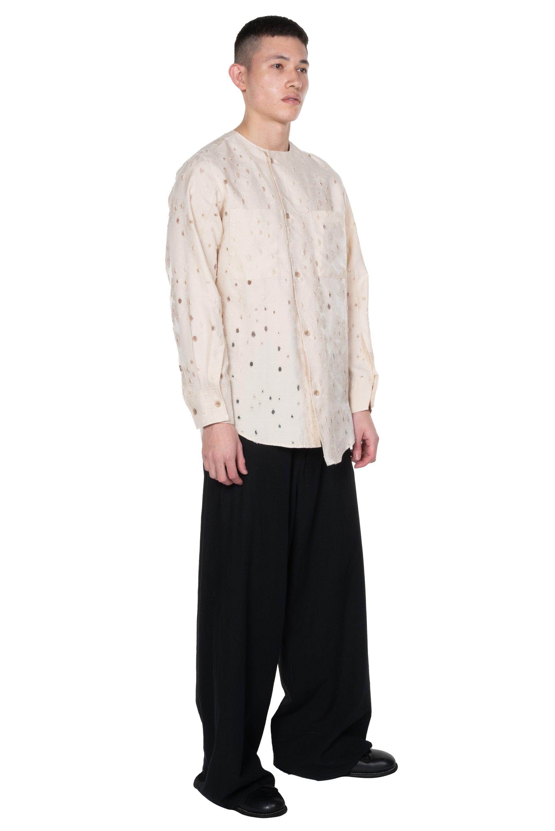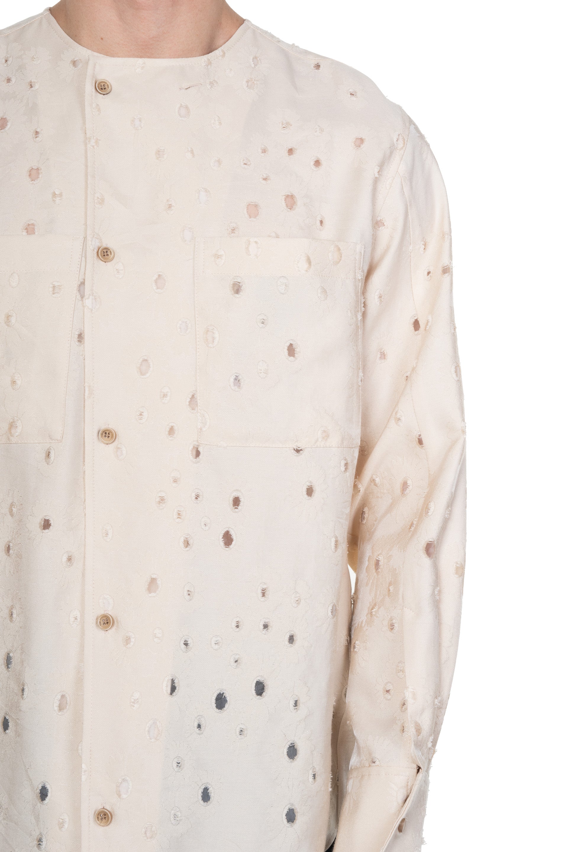 Inspired by Korean and Scandinavian culture, the brand reinterprets and combines two contrasting traits to create an individual and unique aesthetic and perspective. Constructed from top-tier materials sourced from around the globe, Andersson Bell’s designs are ultimately intended to last a lifetime as seen with the Ecru Flower Collarless Shirt.