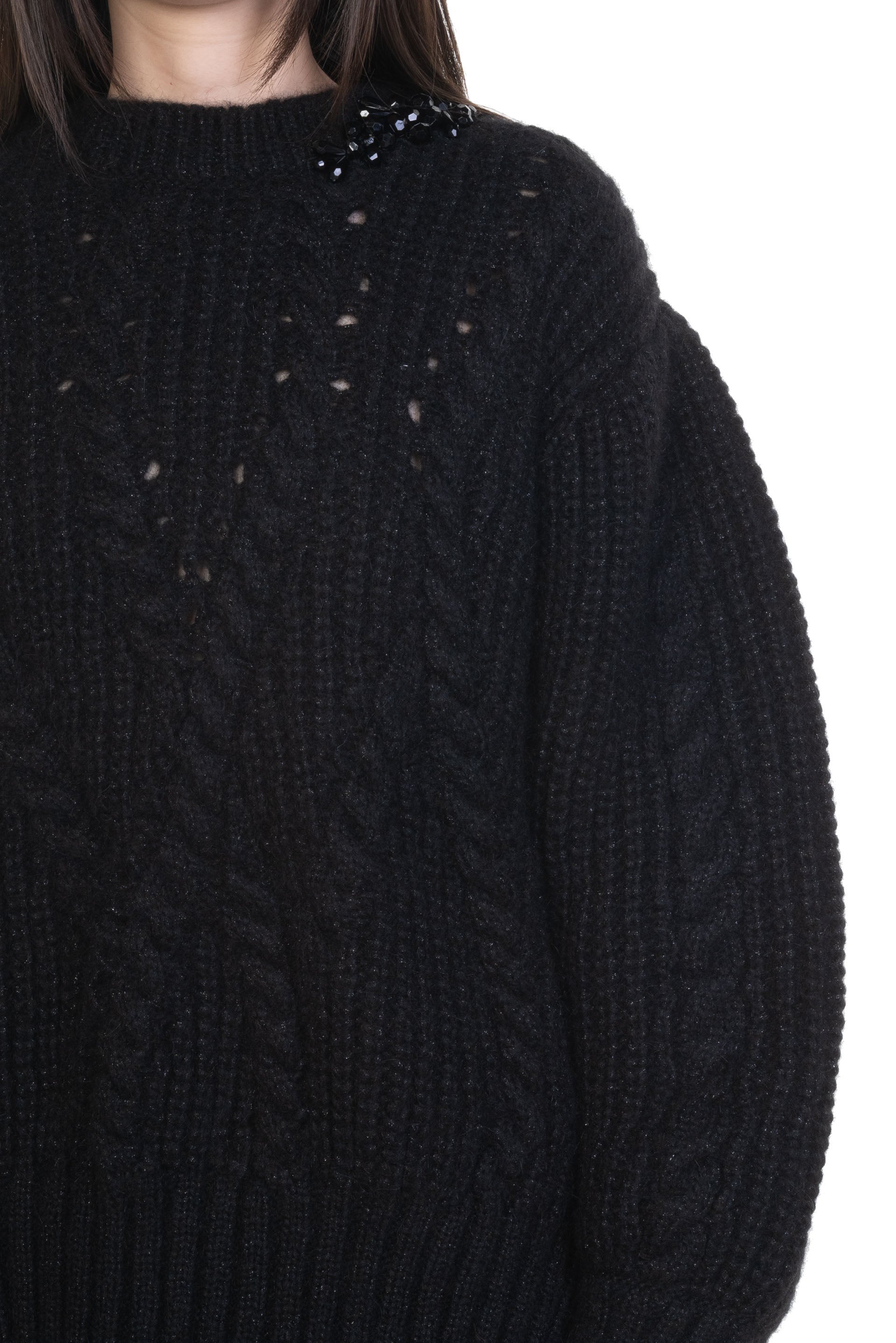 Colour: Black. Composition: 48% Alpaca 8% Merino Wool 21% Polyamide 23% Metallic Fibre (Excluding Embellishment). Code: MZMK4B 0665 BLACK/JET. Made in Portugal.
